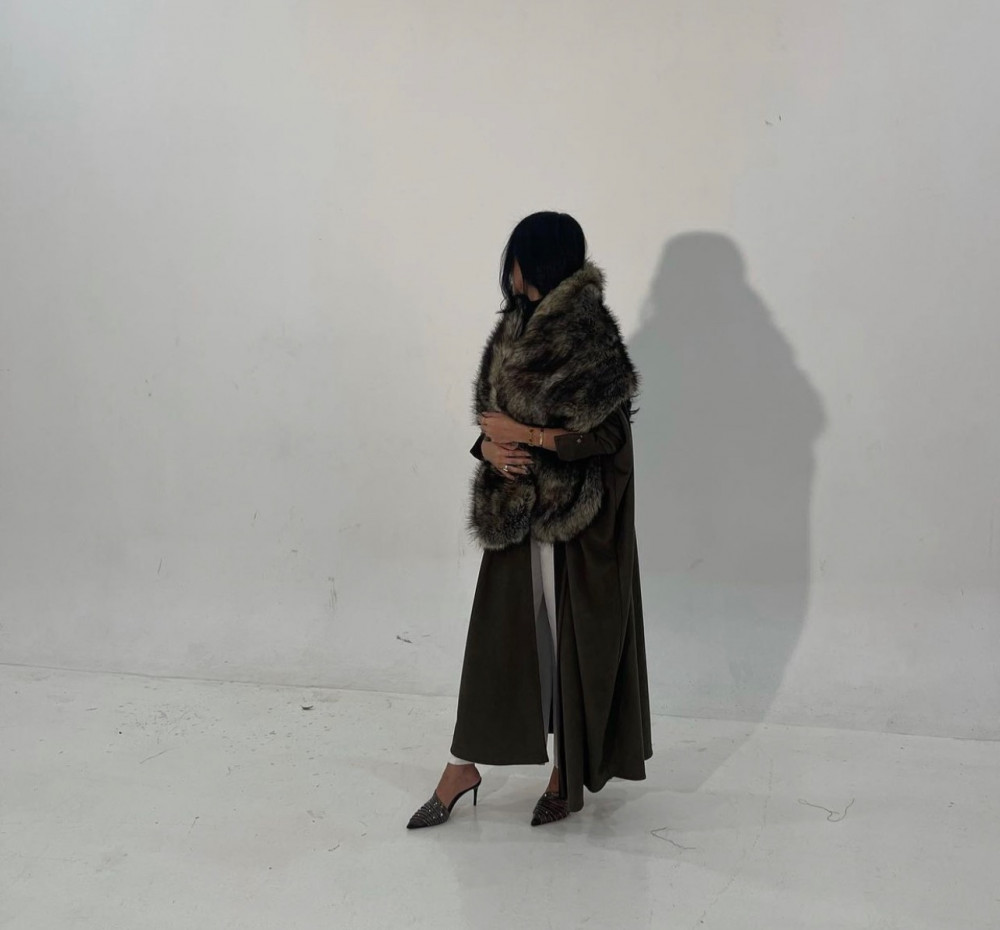 مع فرو خارجي ( يمكن لبسه باكثر من طريقه ويمكن فصله )