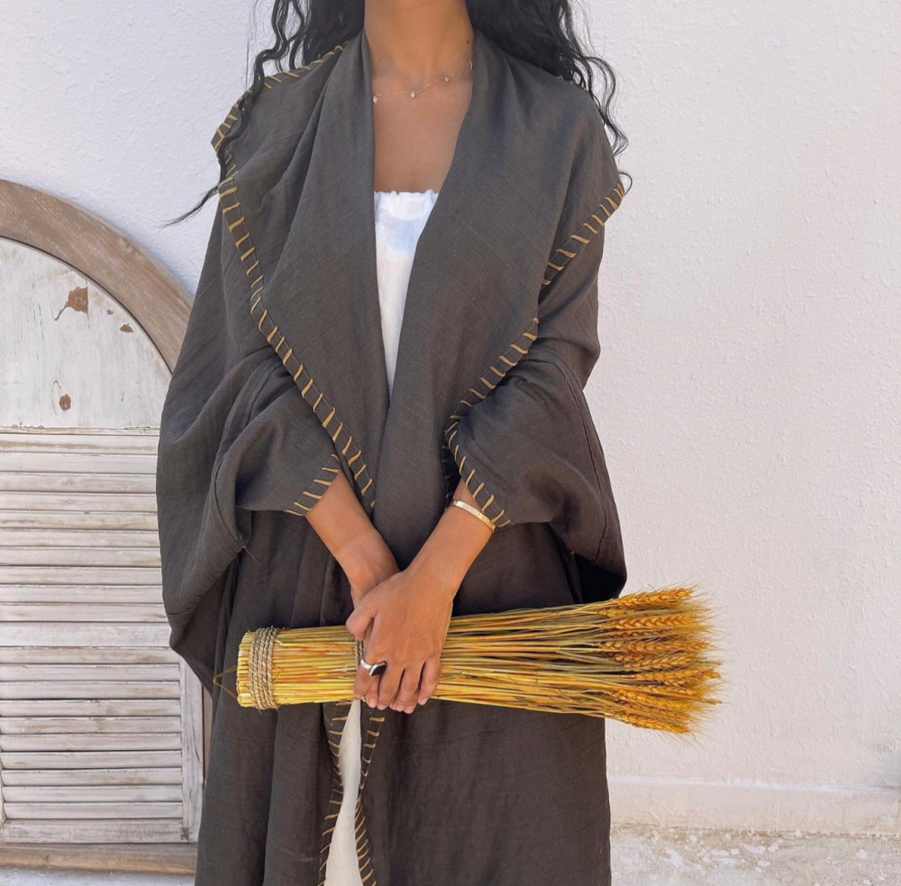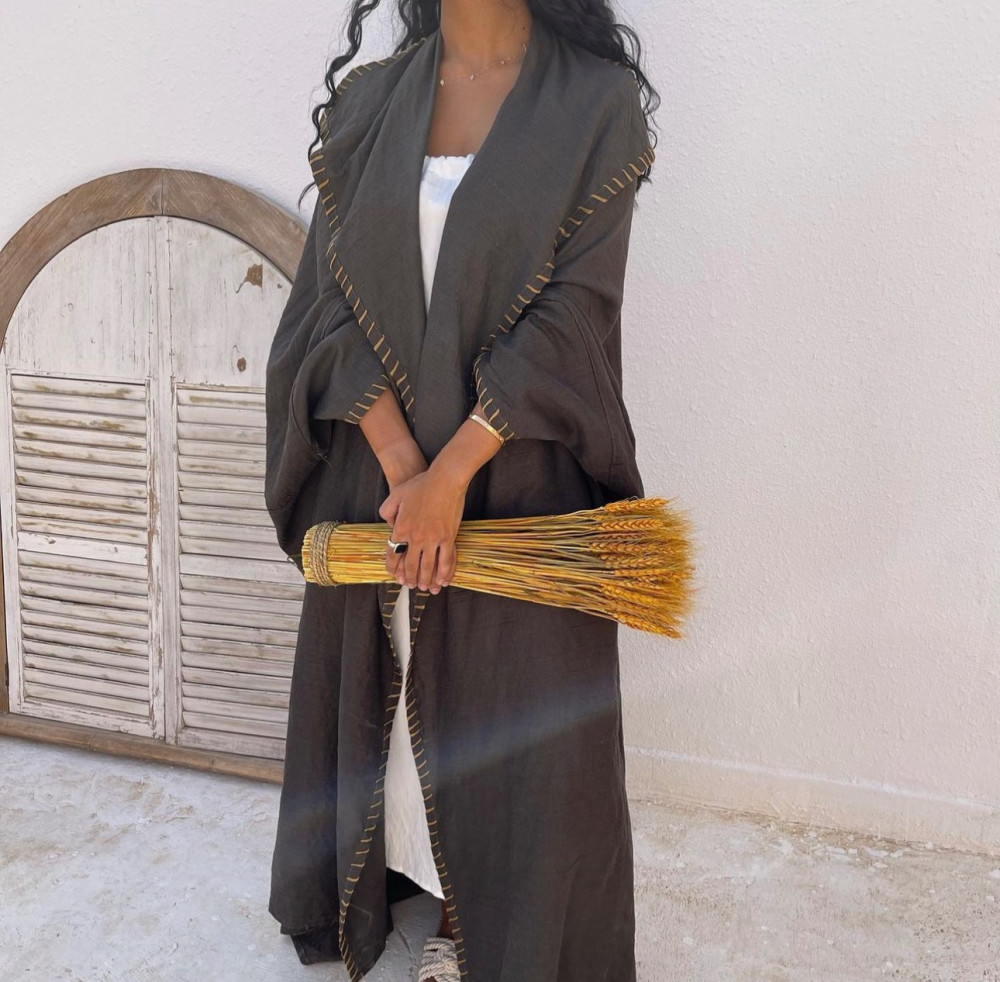 تكون بنيه نفس لون العبايه وفيها شك بالكموني