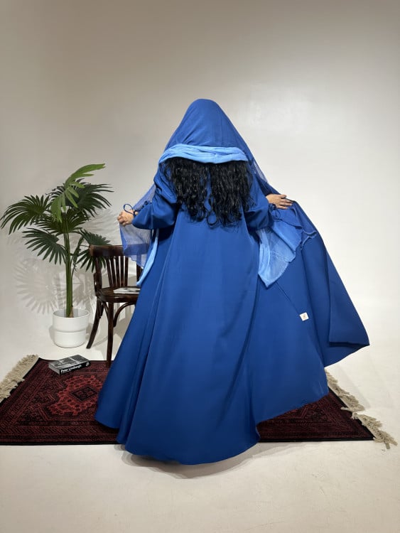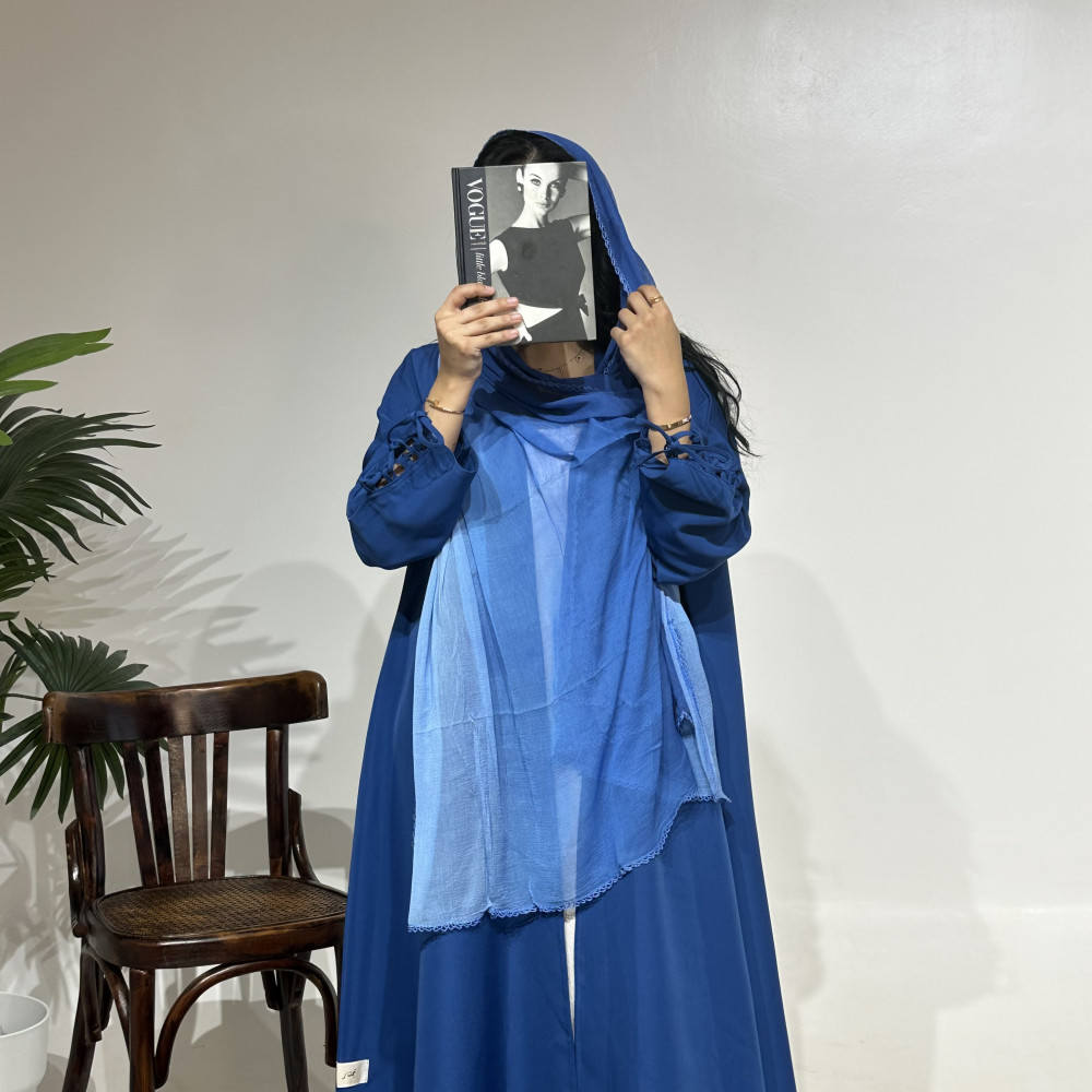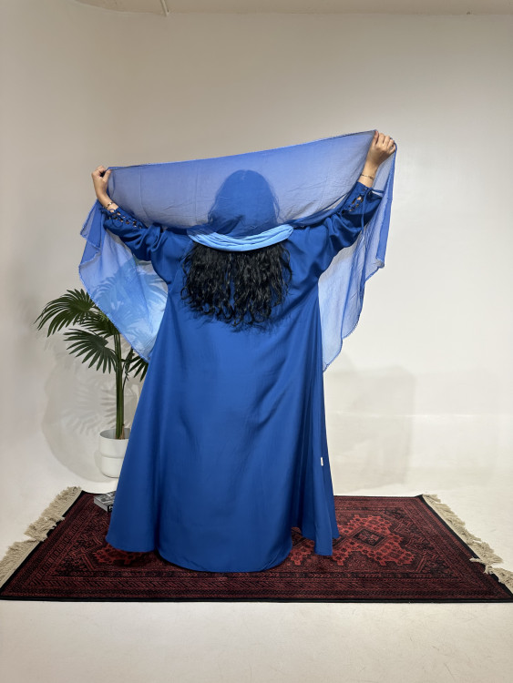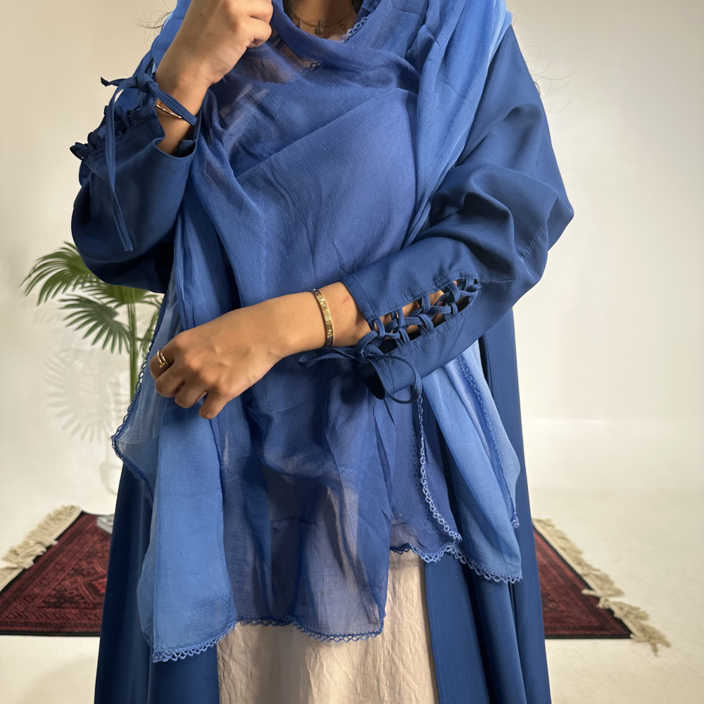 كريب ازرق / الطرحه شيفون خفيف ازرق اومبريه مموج