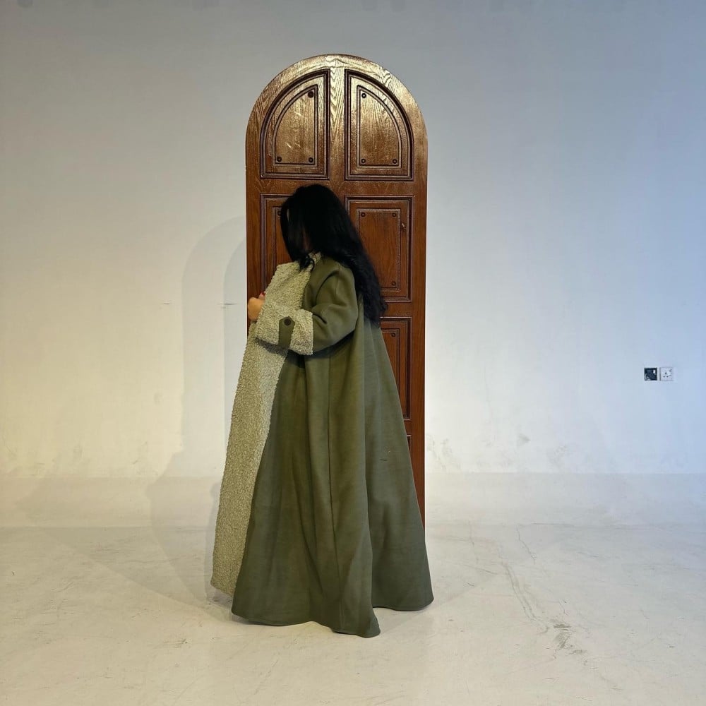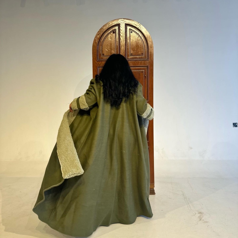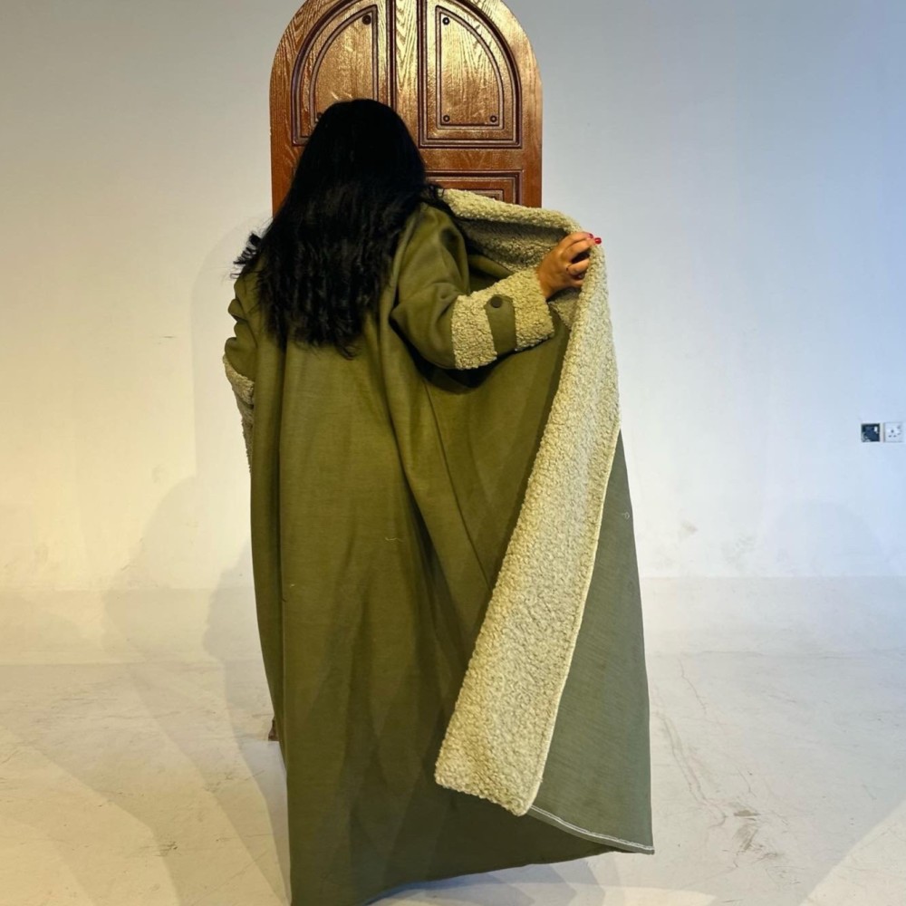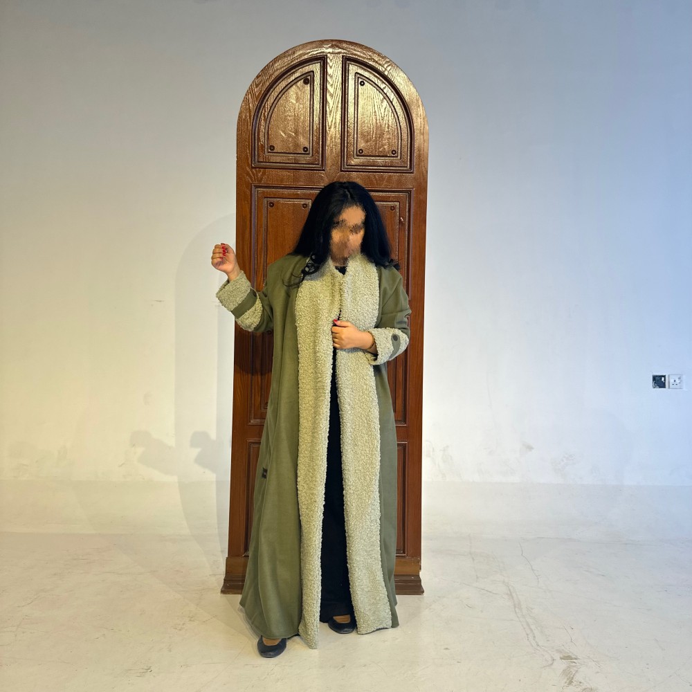 القماش : فرو بشعر قصير، قماش جوخ | طرحه شيفون ساده