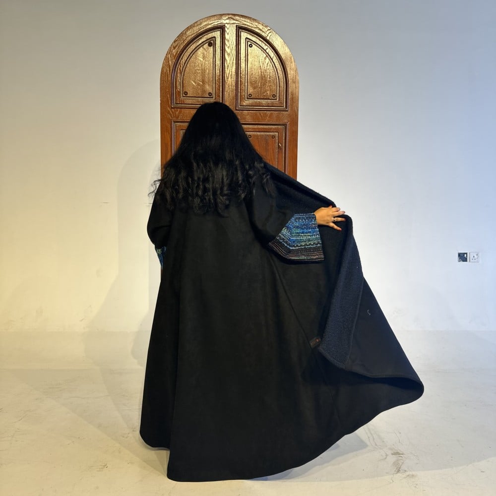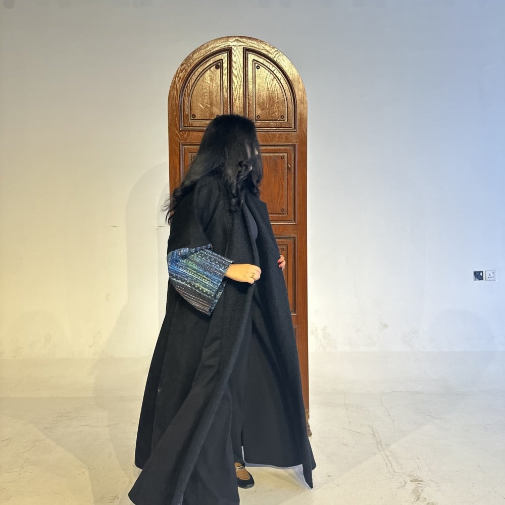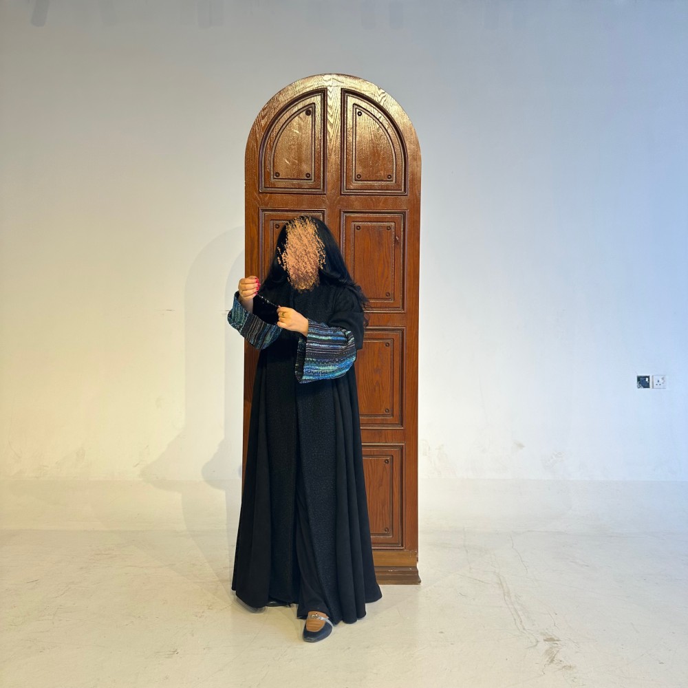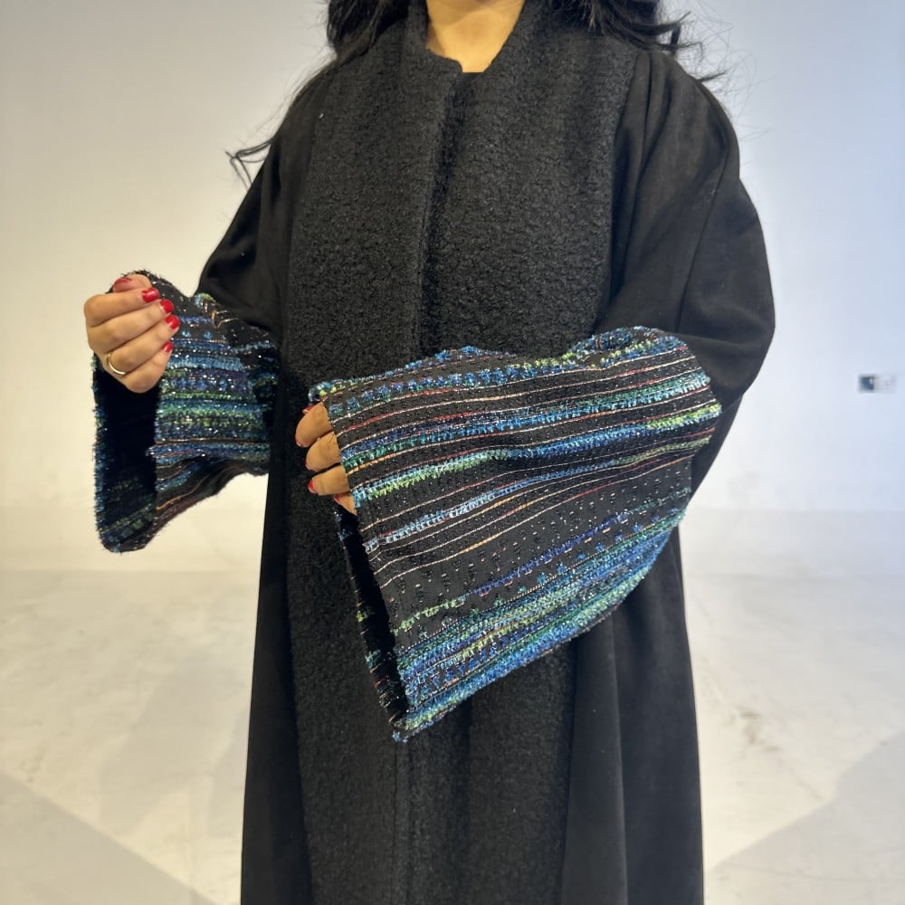 القماش : شامواه | الكم شانيل ملون | الياقه من الامام فرو قصير | طرحه شيفون ساده