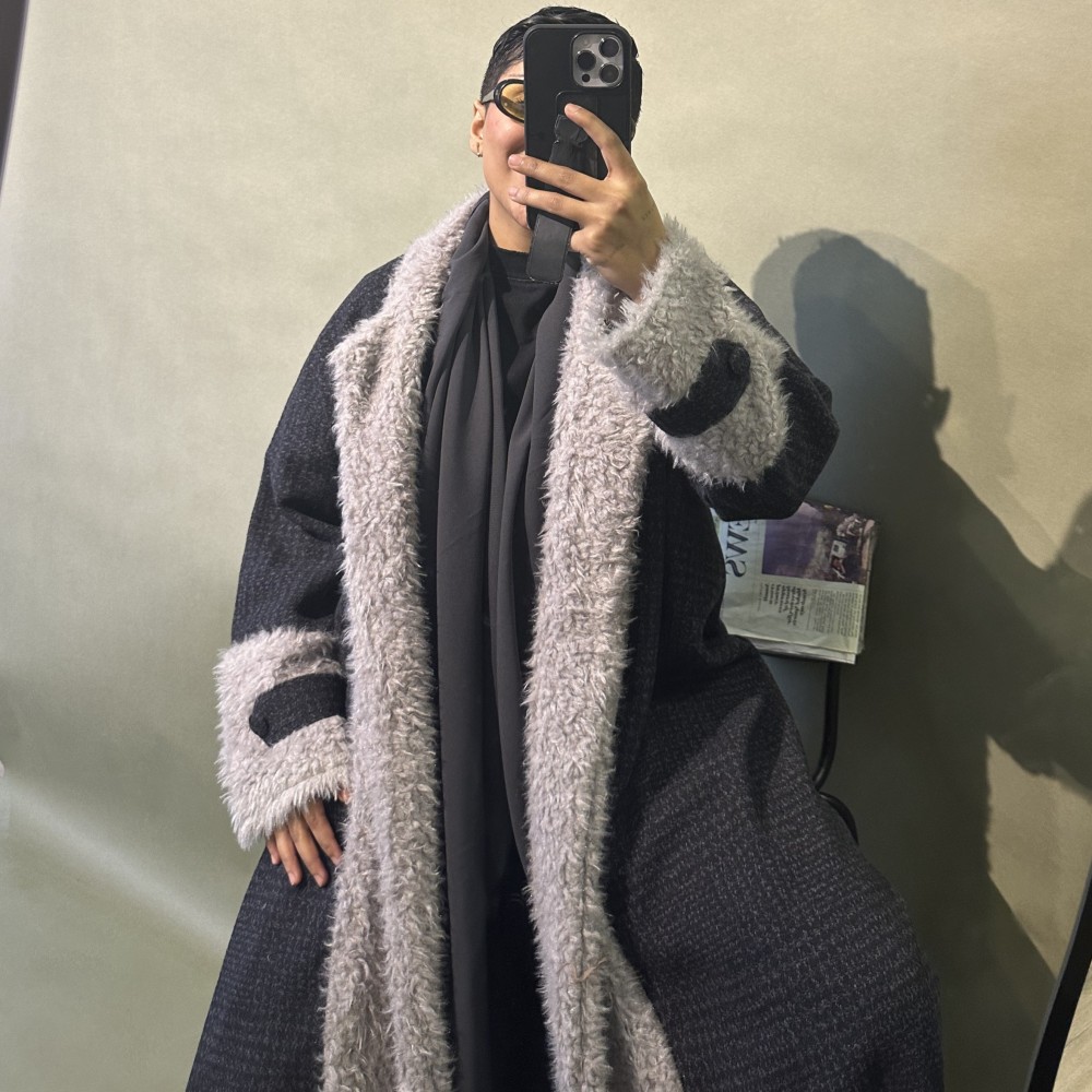 القماش : جوخ | فرو قصير | طرحه شيفون ساده