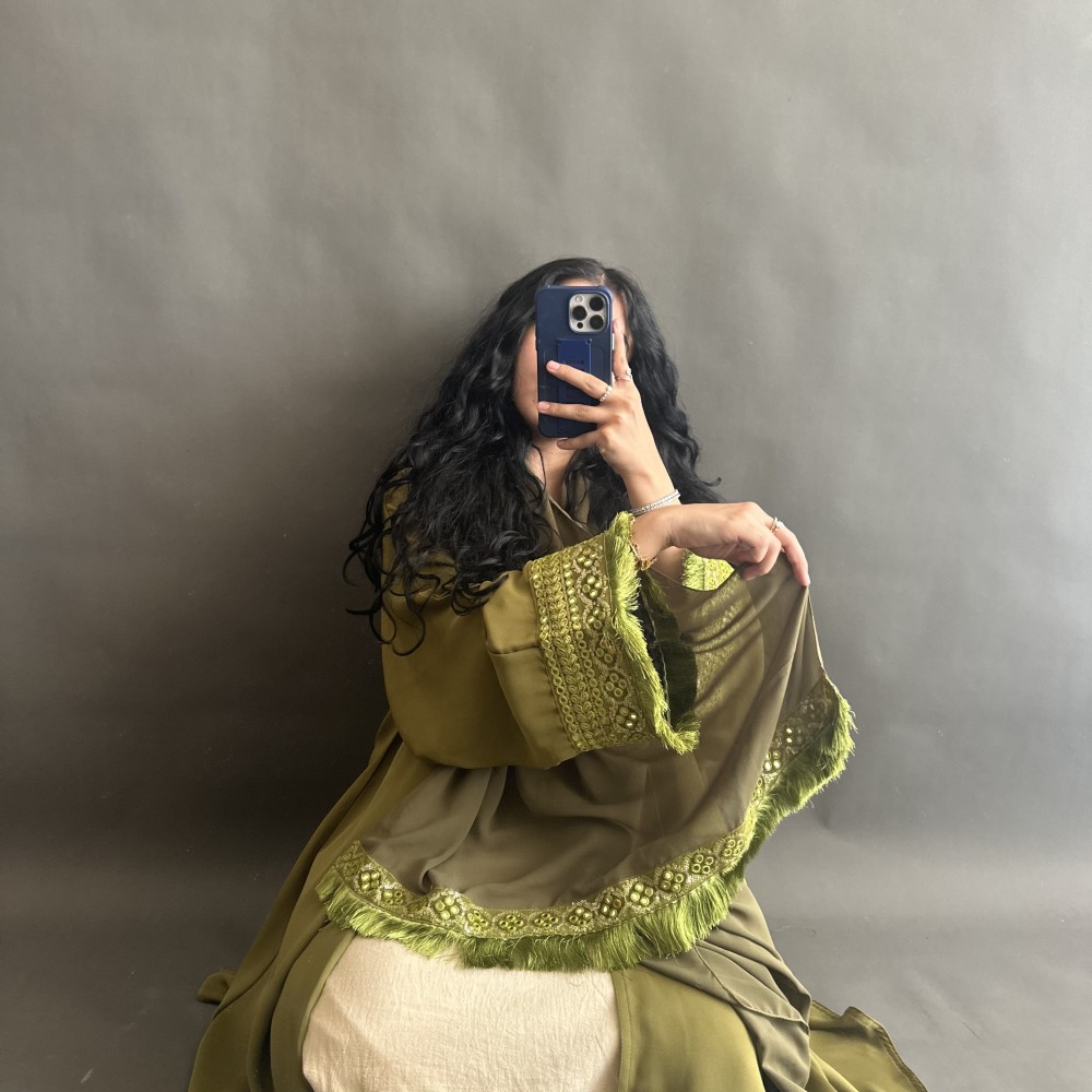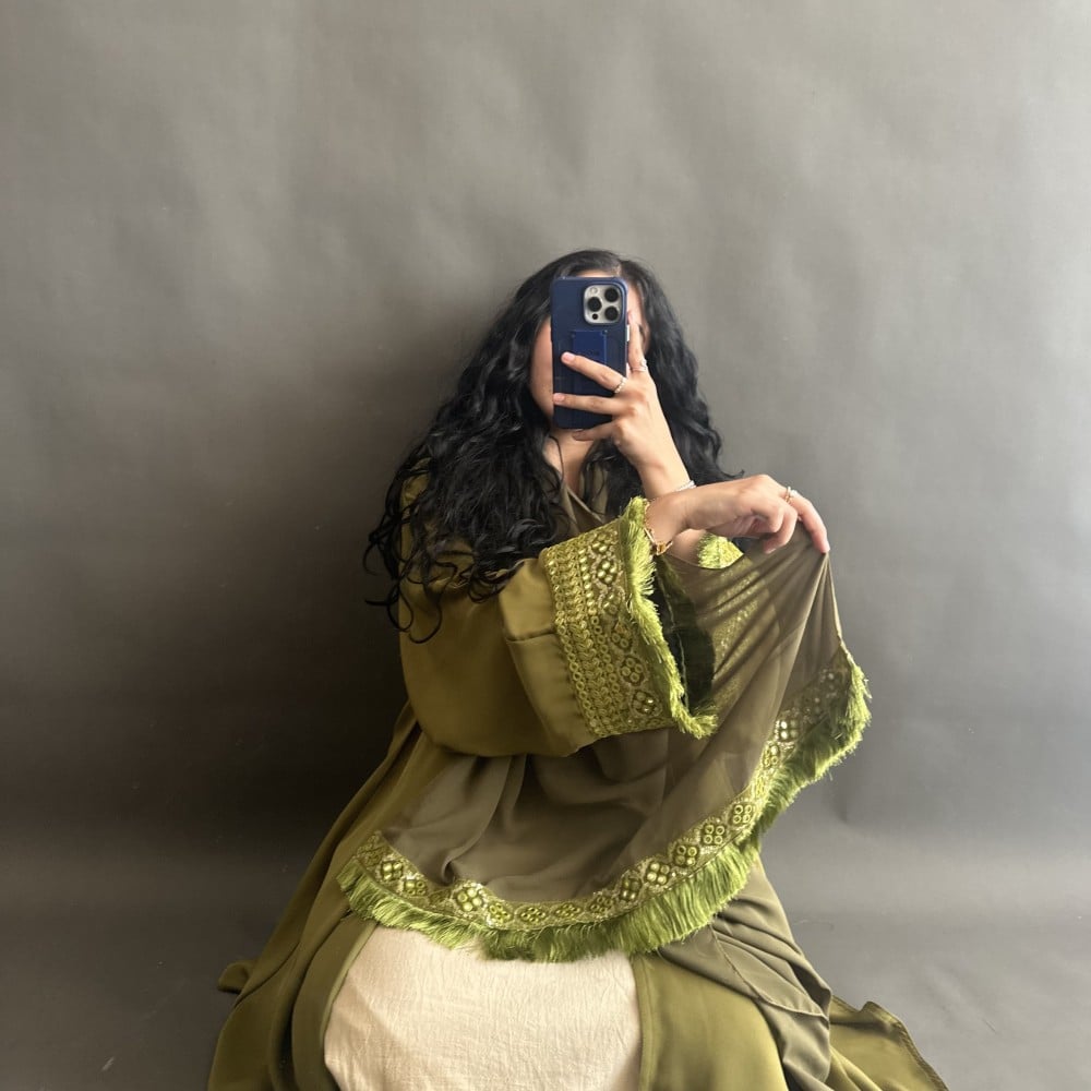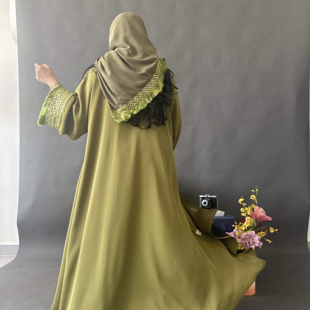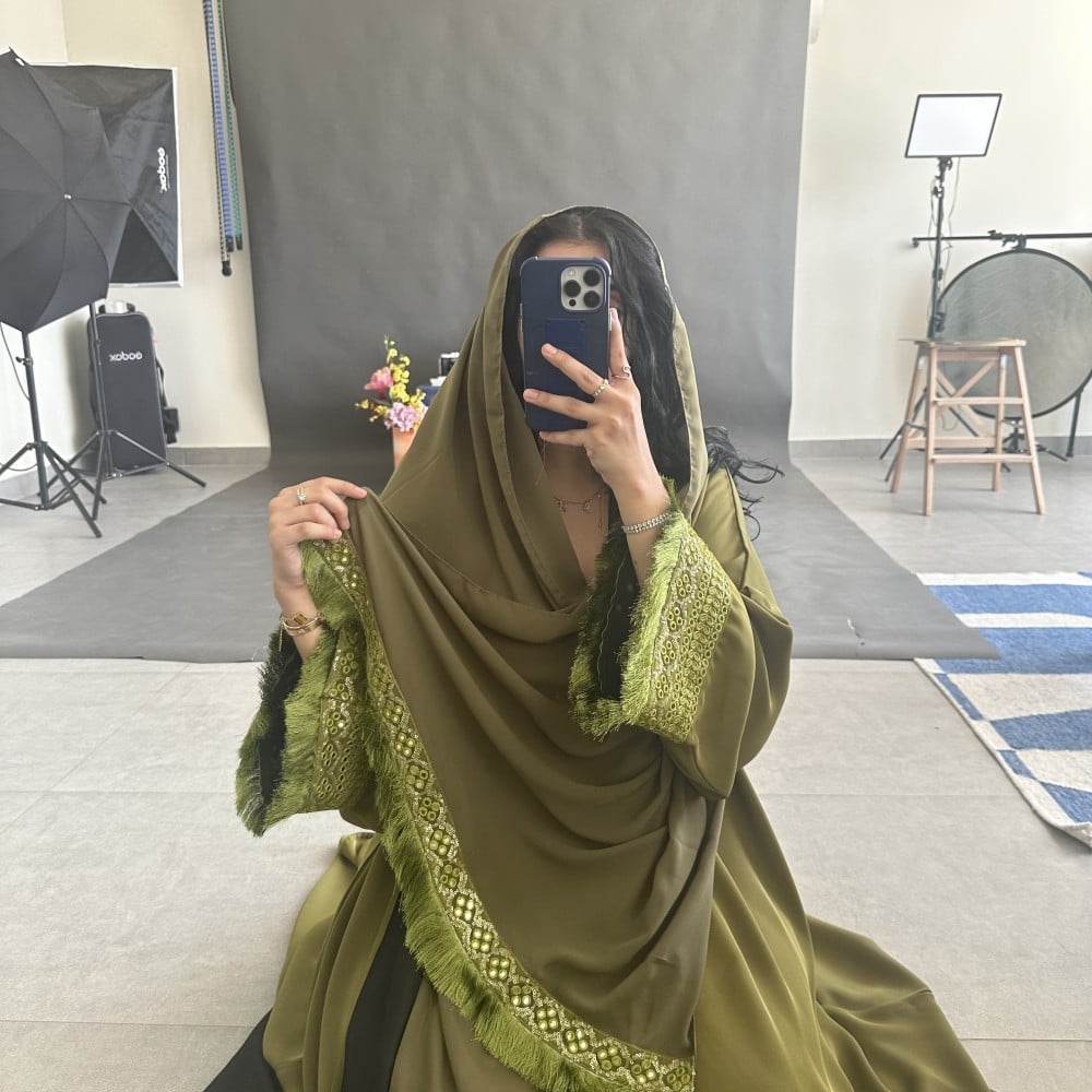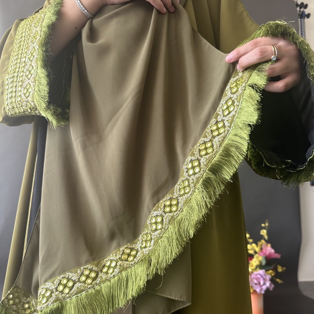 - كريب حرير بوجهين / الكم كلفه تطريز مع هدب / الطرحه شيفون شاده بهدب