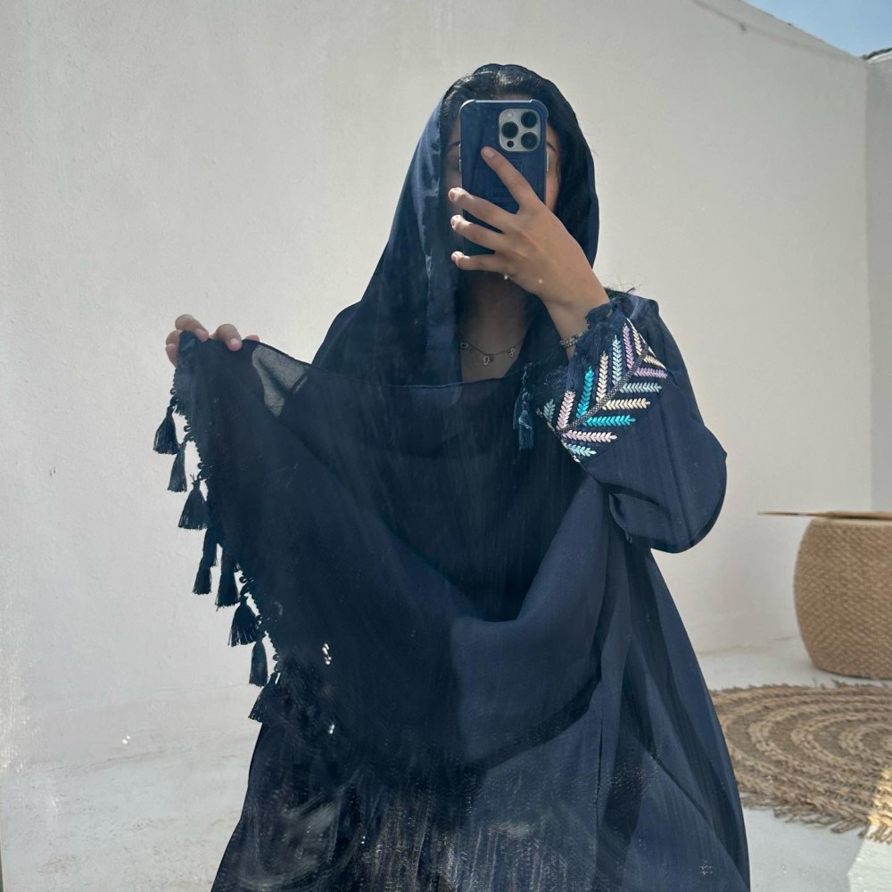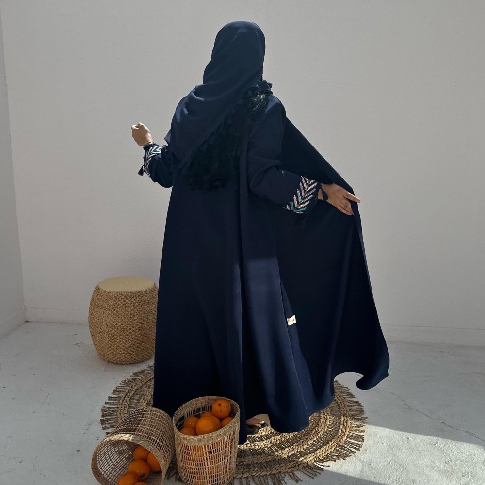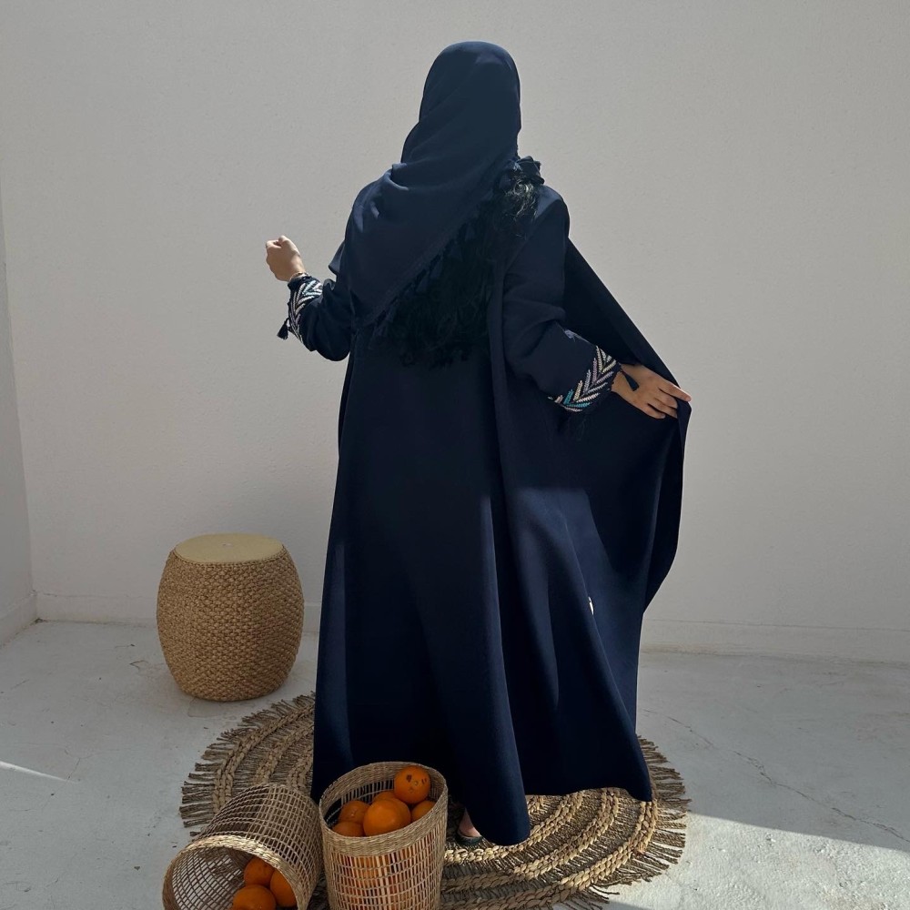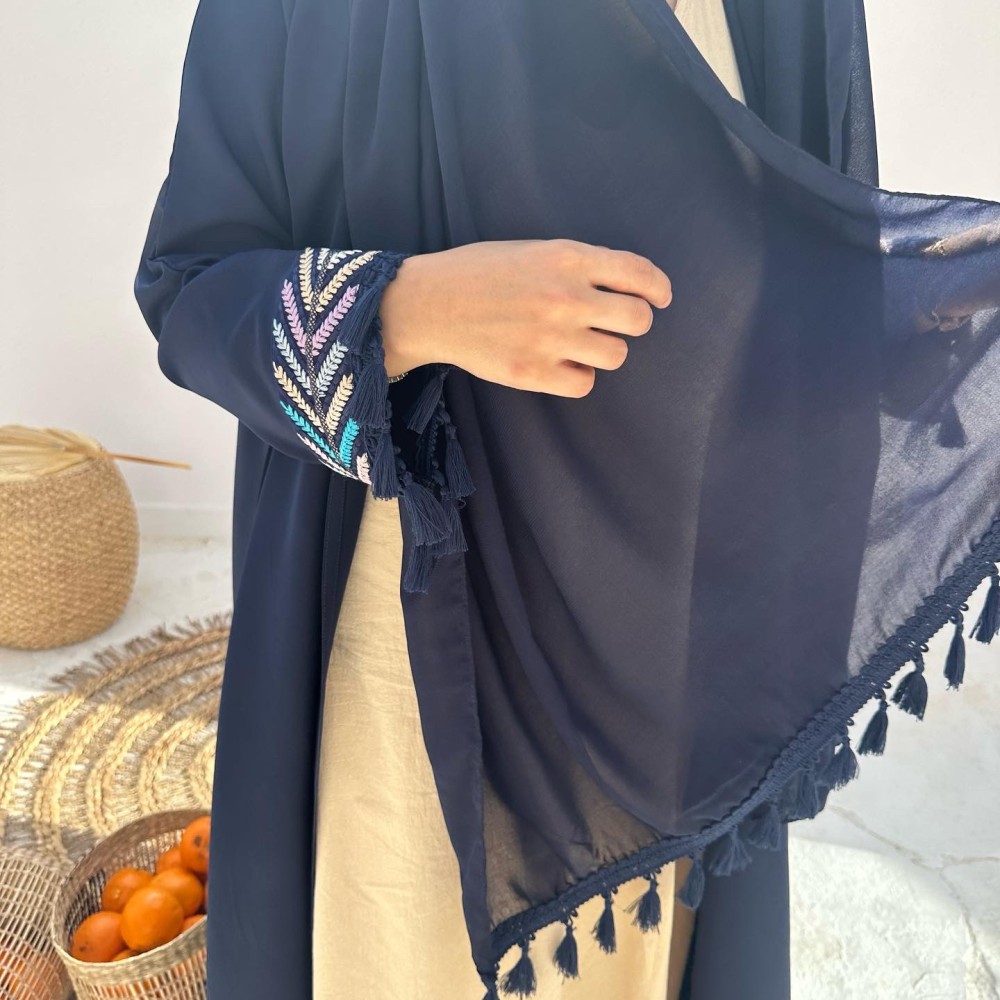 - كريب باربي كحلي / الكم كلفه مطرزه بهدب / الطرحه شيفون ساده بهدب