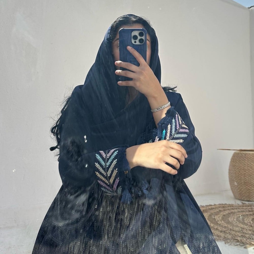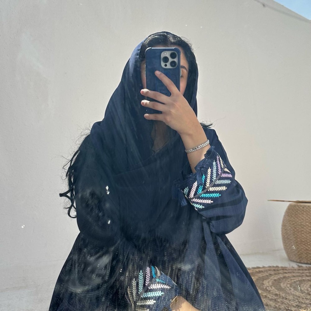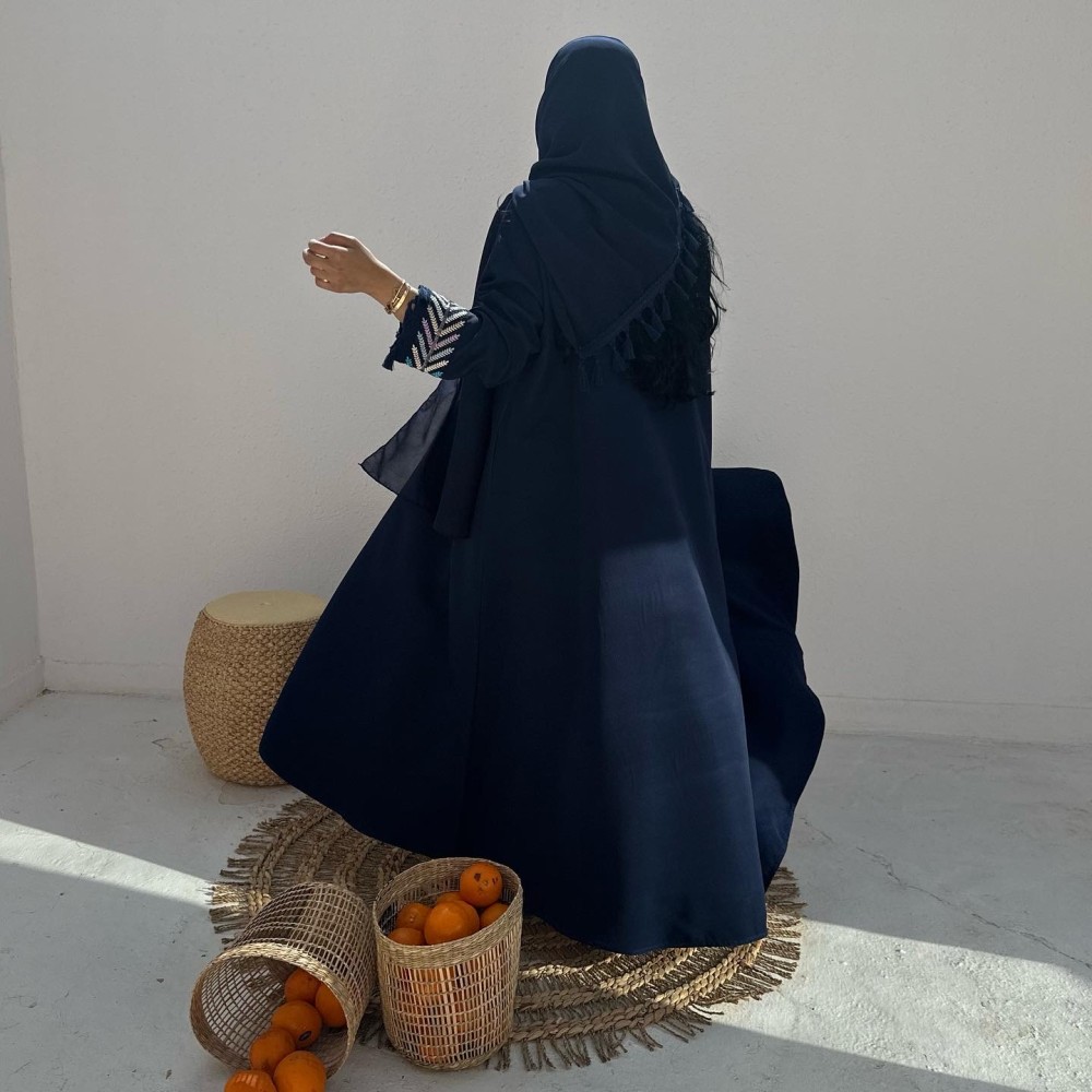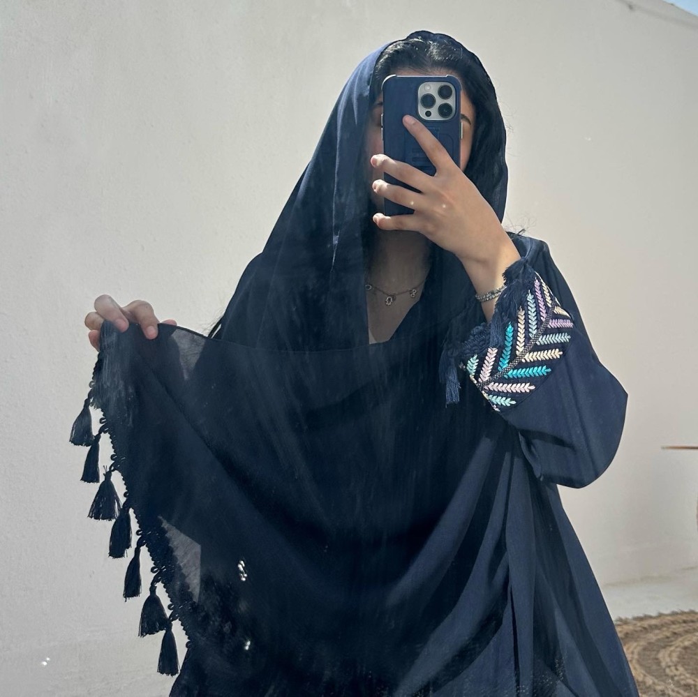 - كريب باربي كحلي / الكم كلفه مطرزه بهدب / الطرحه شيفون ساده بهدب