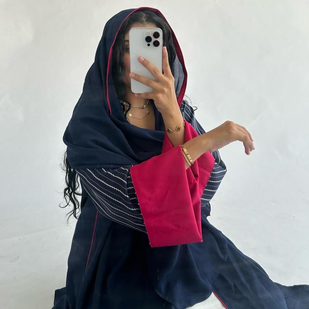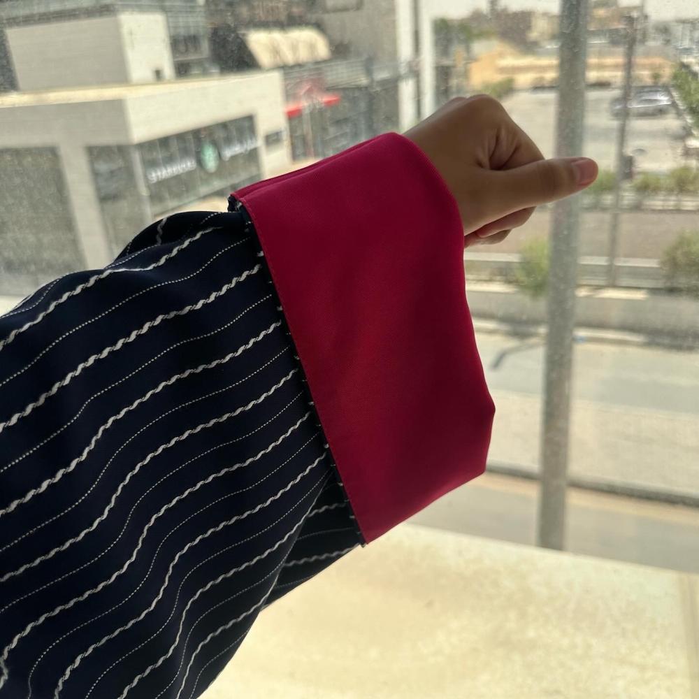 كتان تايواني كحلي | الكم كتان تايواني كحلي مخطط | الكم من الداخل كتان فوشي | قيطان فوشي كامل العبايه| طرحه شيفون بقيطان فوشي