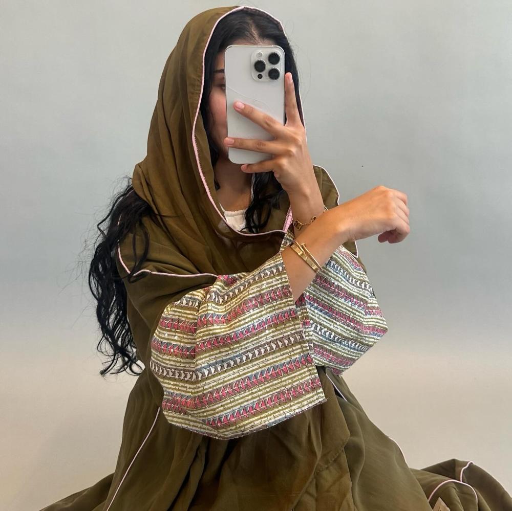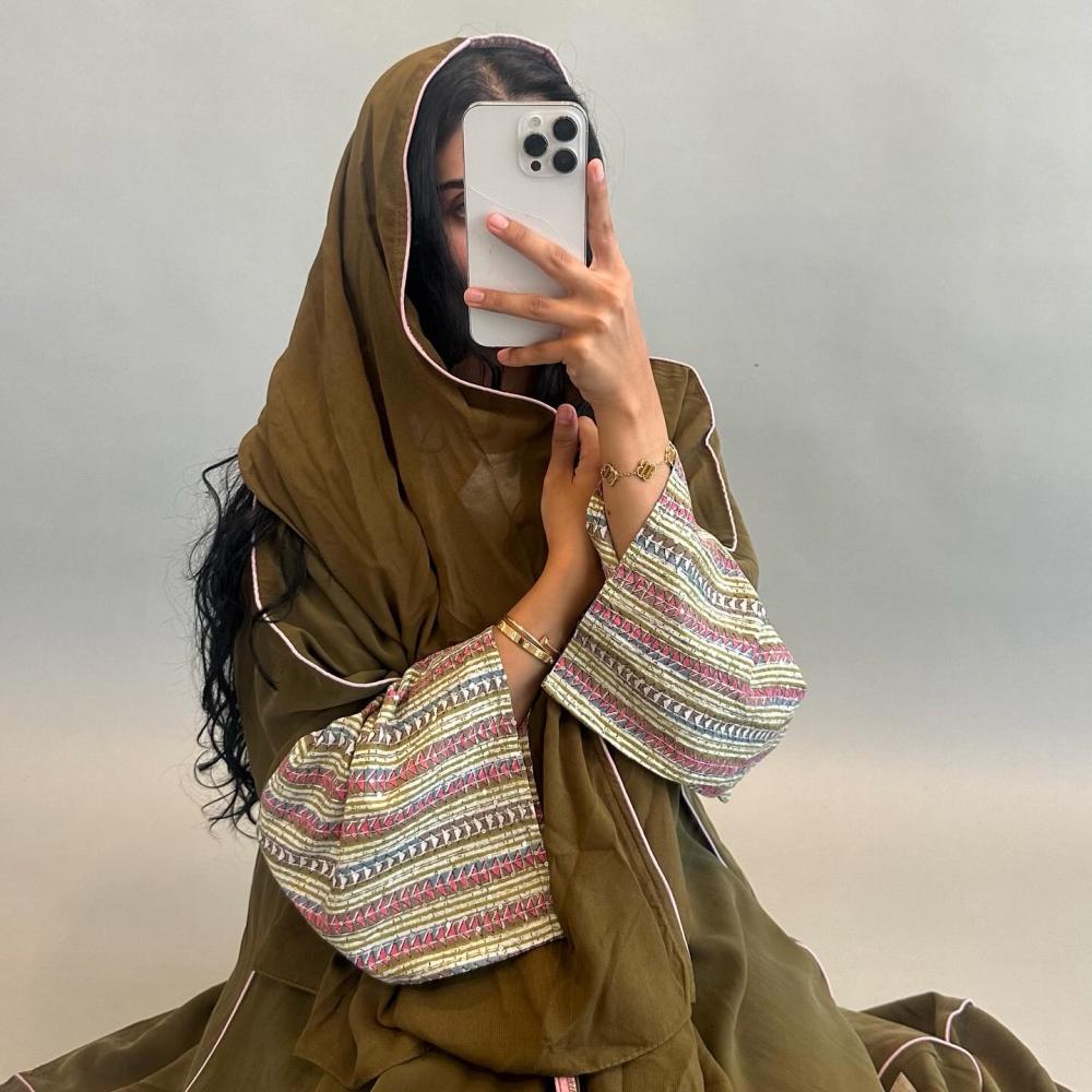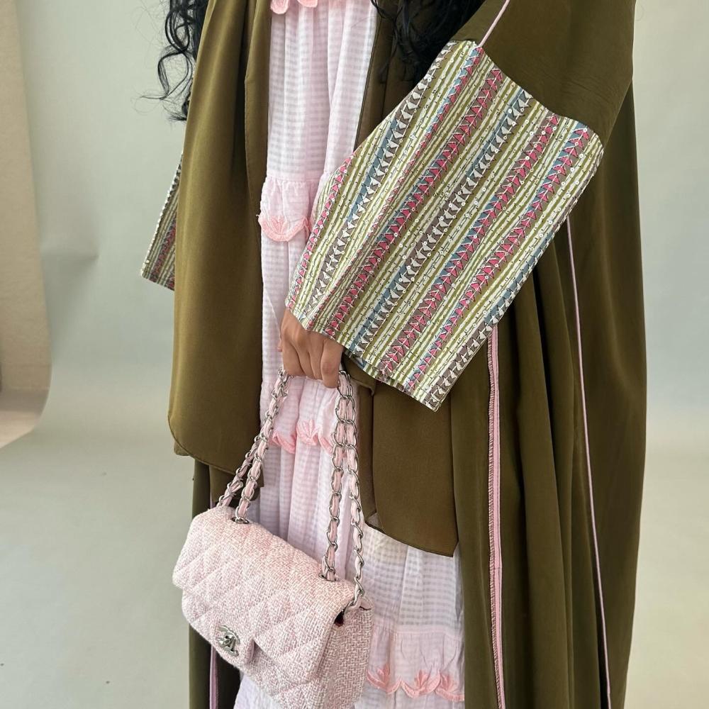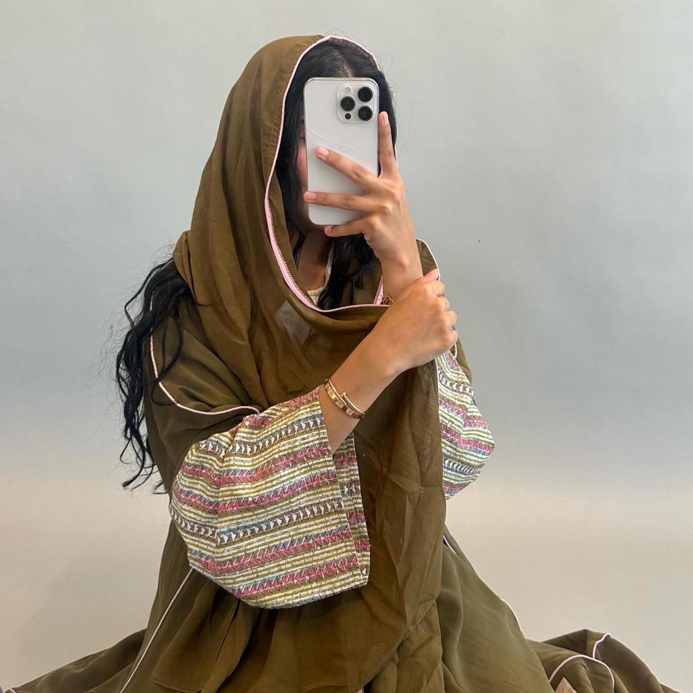 حرير مغسول كوري | الكم قطن مشجر بلمعه | قيطان كامل العبايه | طرحه شيفون بقيطان
