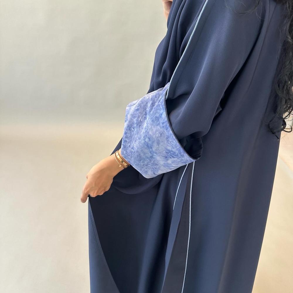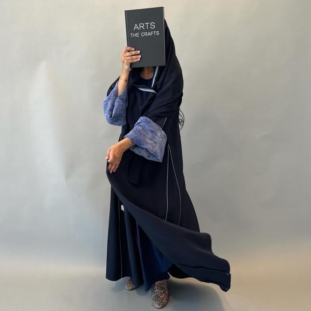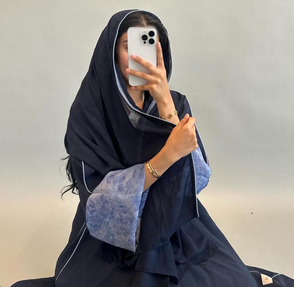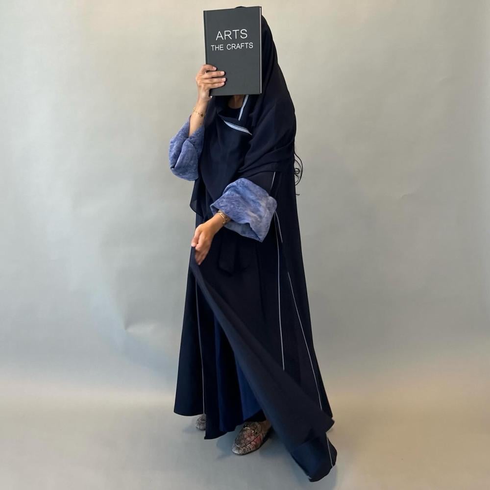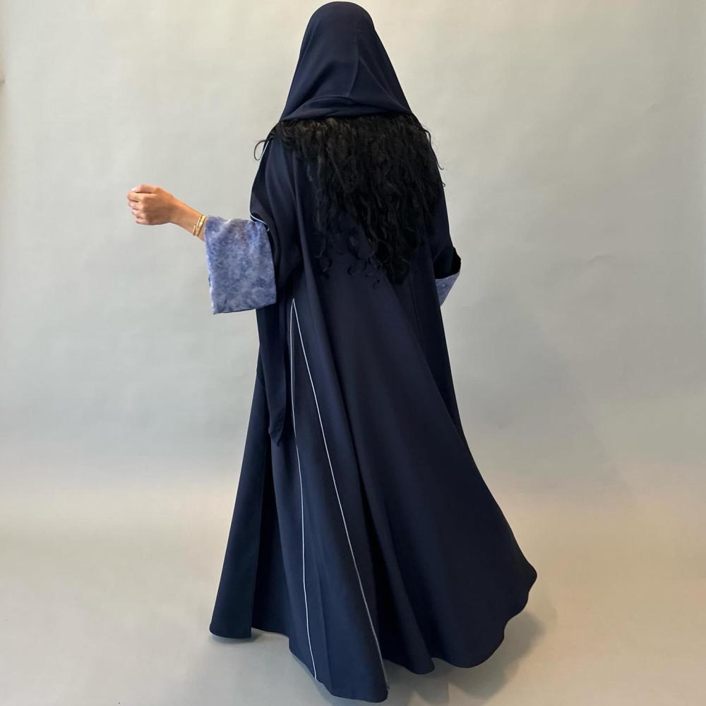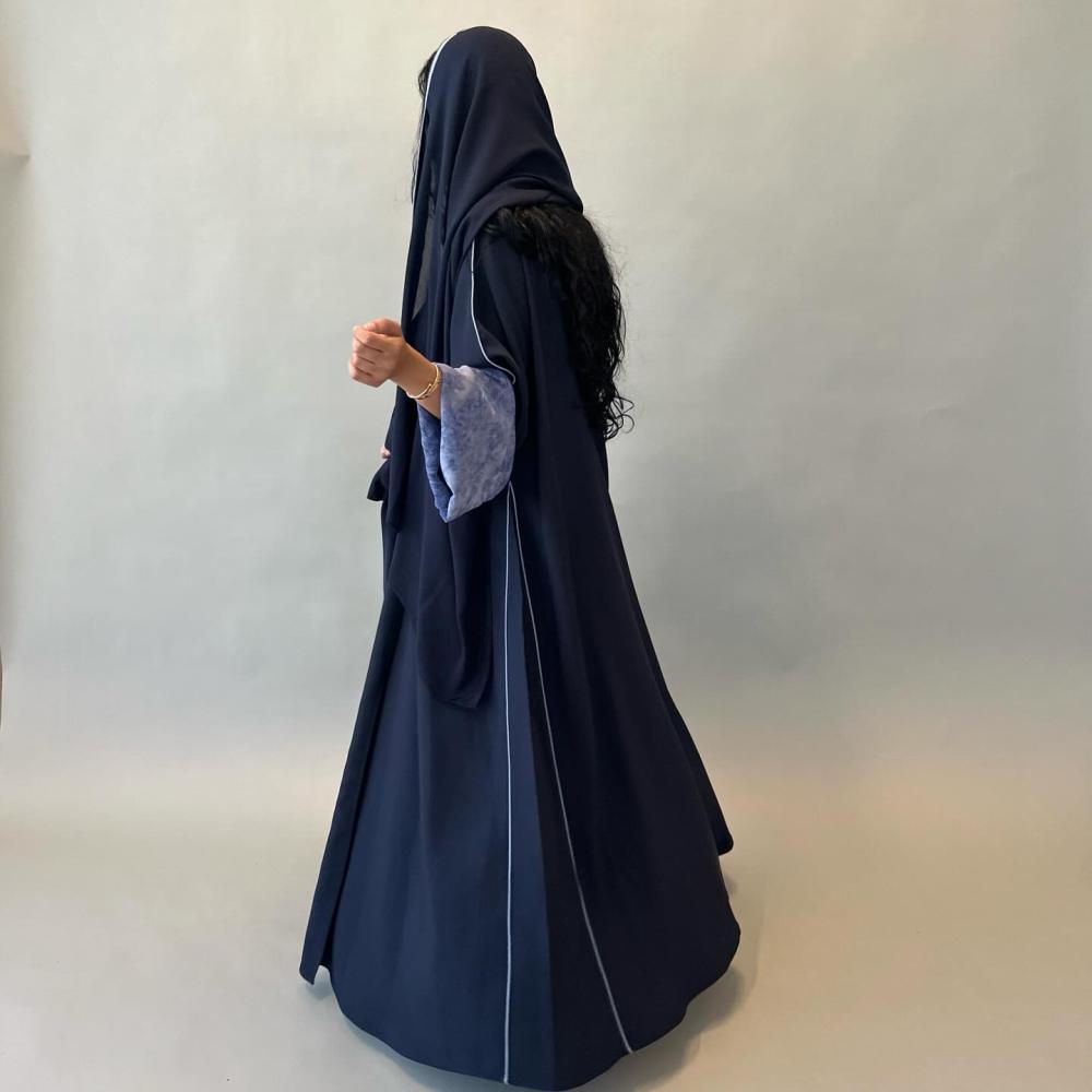 كريب باربي كحلي | الكم شيفون مموج | قيطان كامل العبايه وكسرات من الجوانب ( كسرات قيطان فقط ) | طرحه شيفون بقيطان