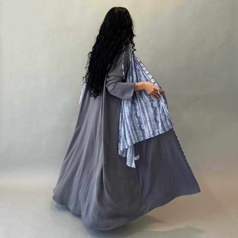 كريب سراميك رمادي | القيطان والازارير شيفون مموج | الطرحه شيفون مموج