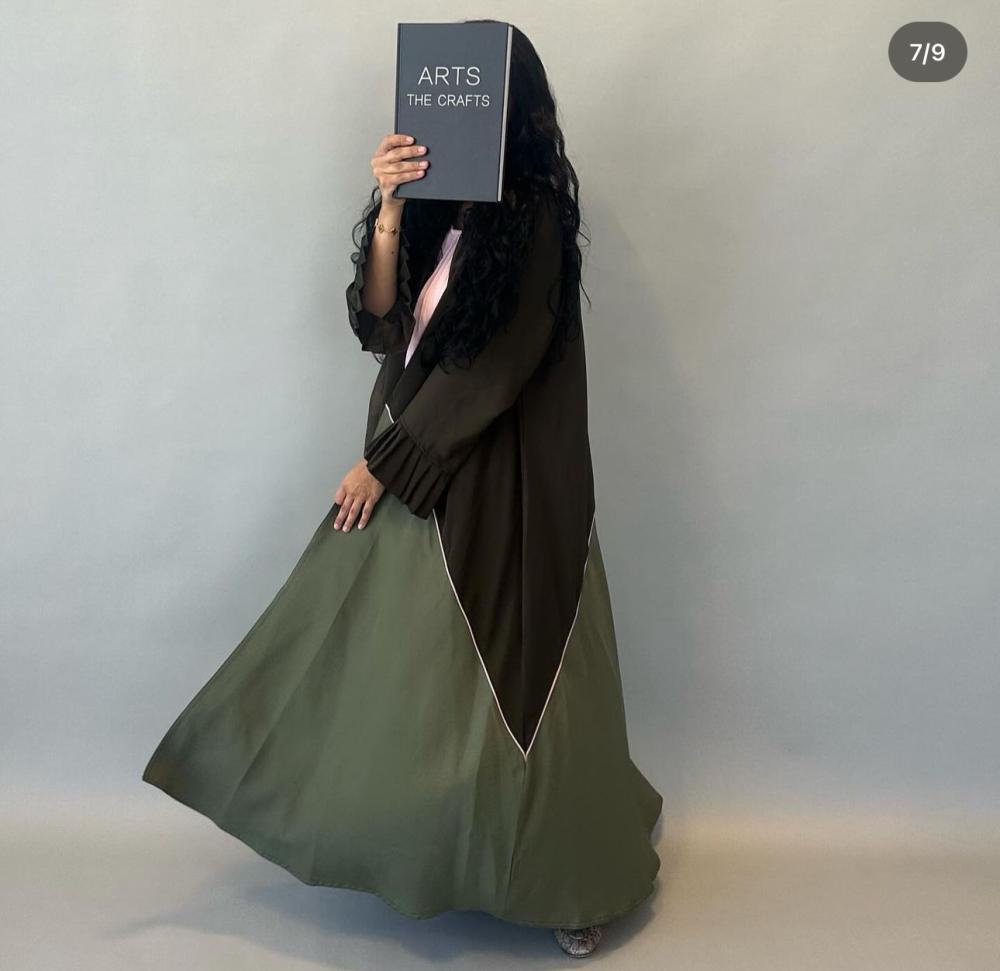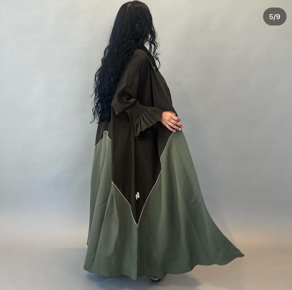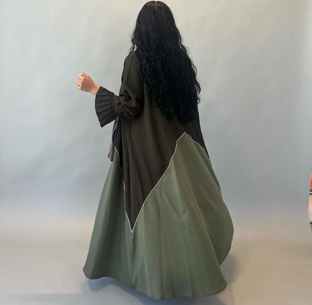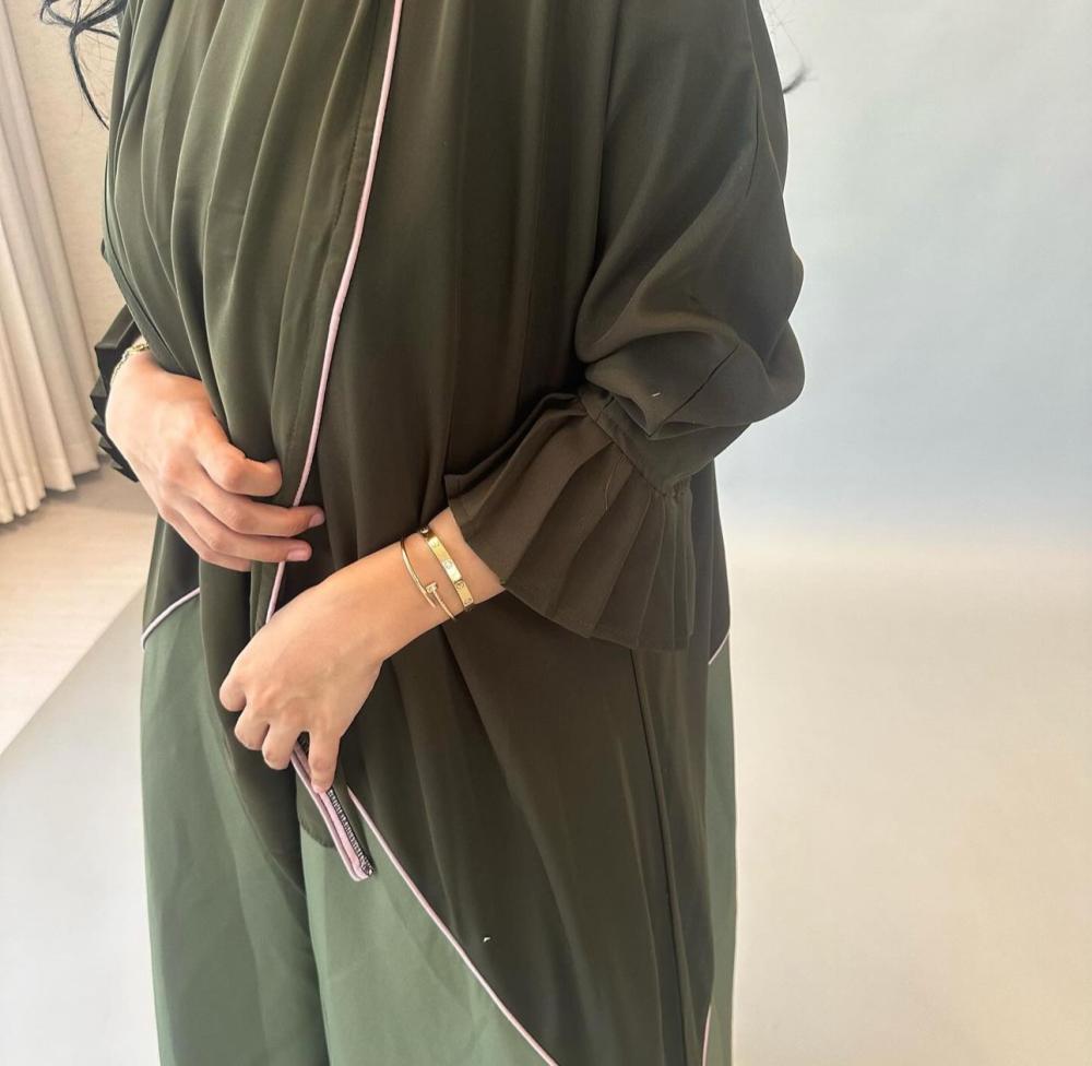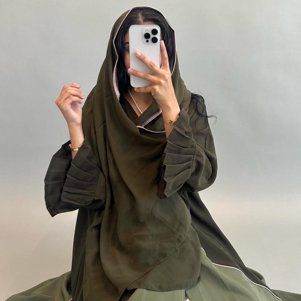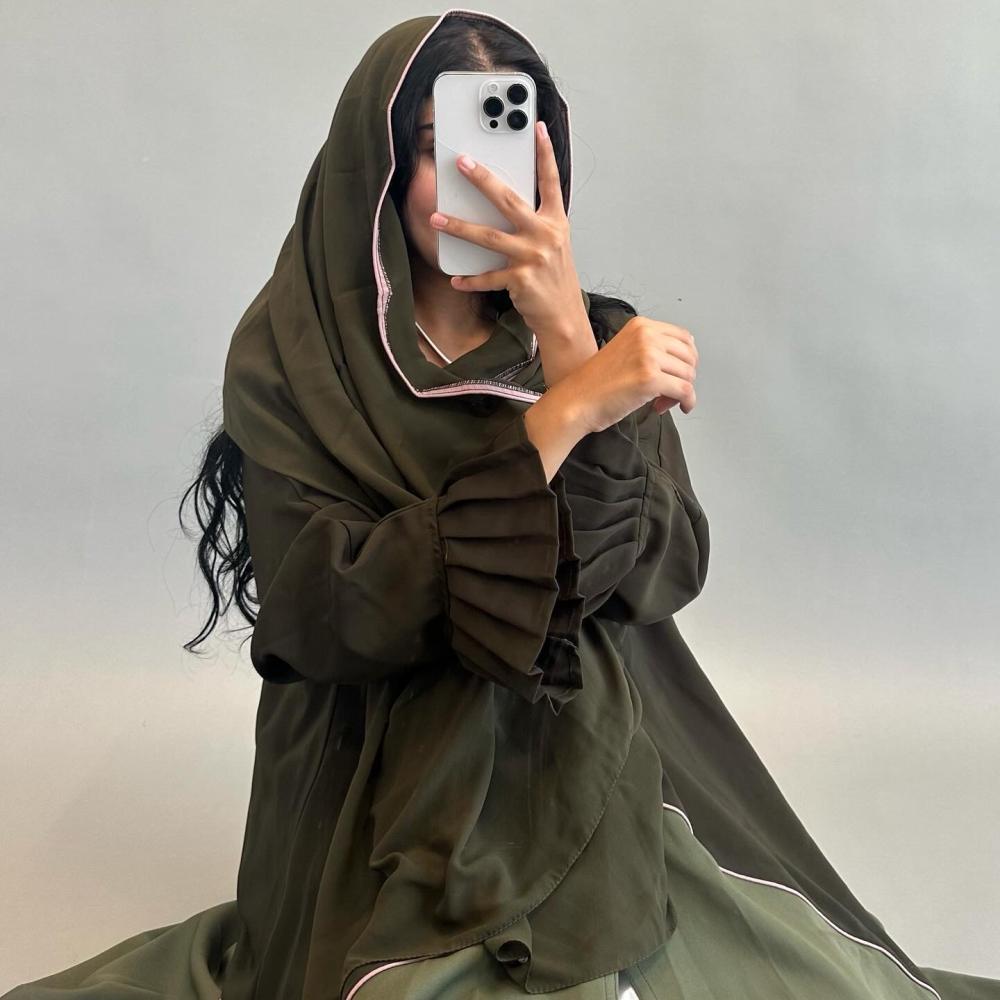 كريب زيتي اندويسي | كريب اخضر باربي | قيطان وردي | طرحه شيفون بقيطان وردي
