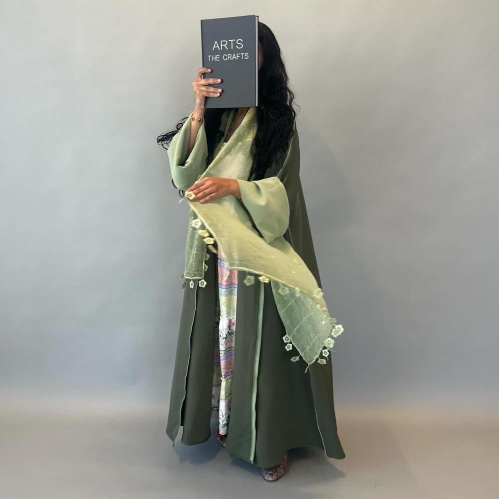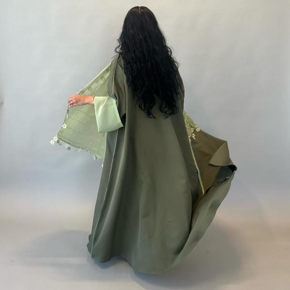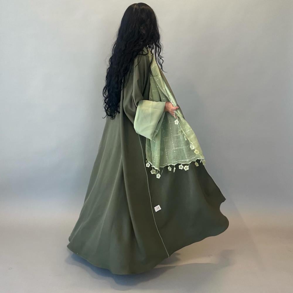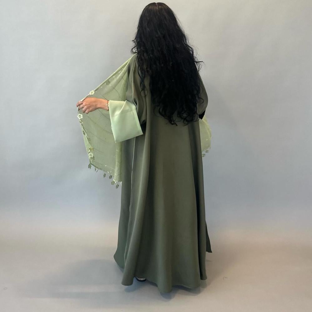 كريب باربي | الكم سفطه غير مثبته كريب باربي فاتح | قيطان كامل العبايه | طرحه لينن مطرز بلمعه وورود من كامل الجهات