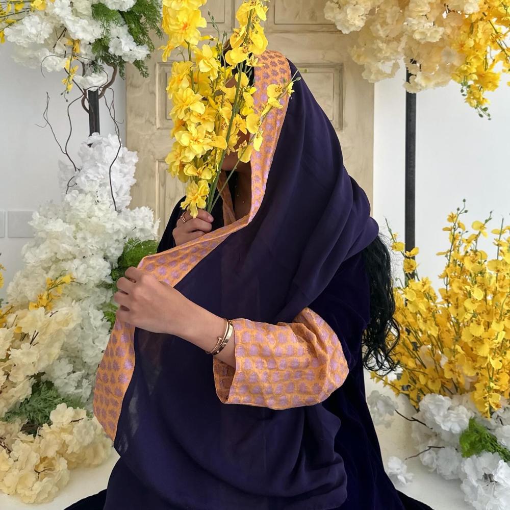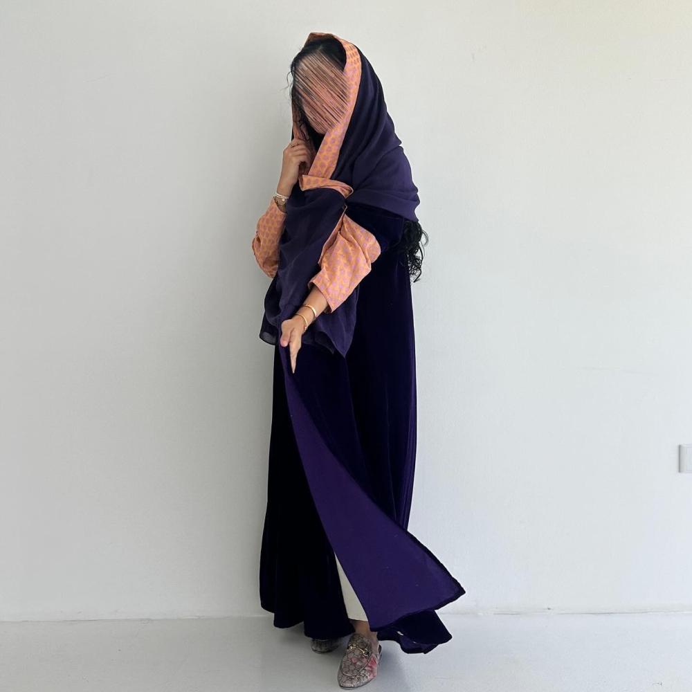 اللون ليلكي ( ليس موف ) مخمل كوري | الكم اورنج فاتح جدا بطبعه موف بلمعه