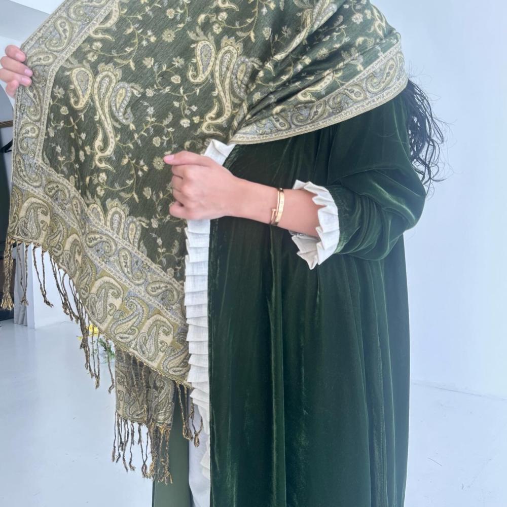 مخمل زيتي | لينن بيج مكسر فالكم ومن الامام جهه وحده | الطرحه كشمير مشجر بهدب