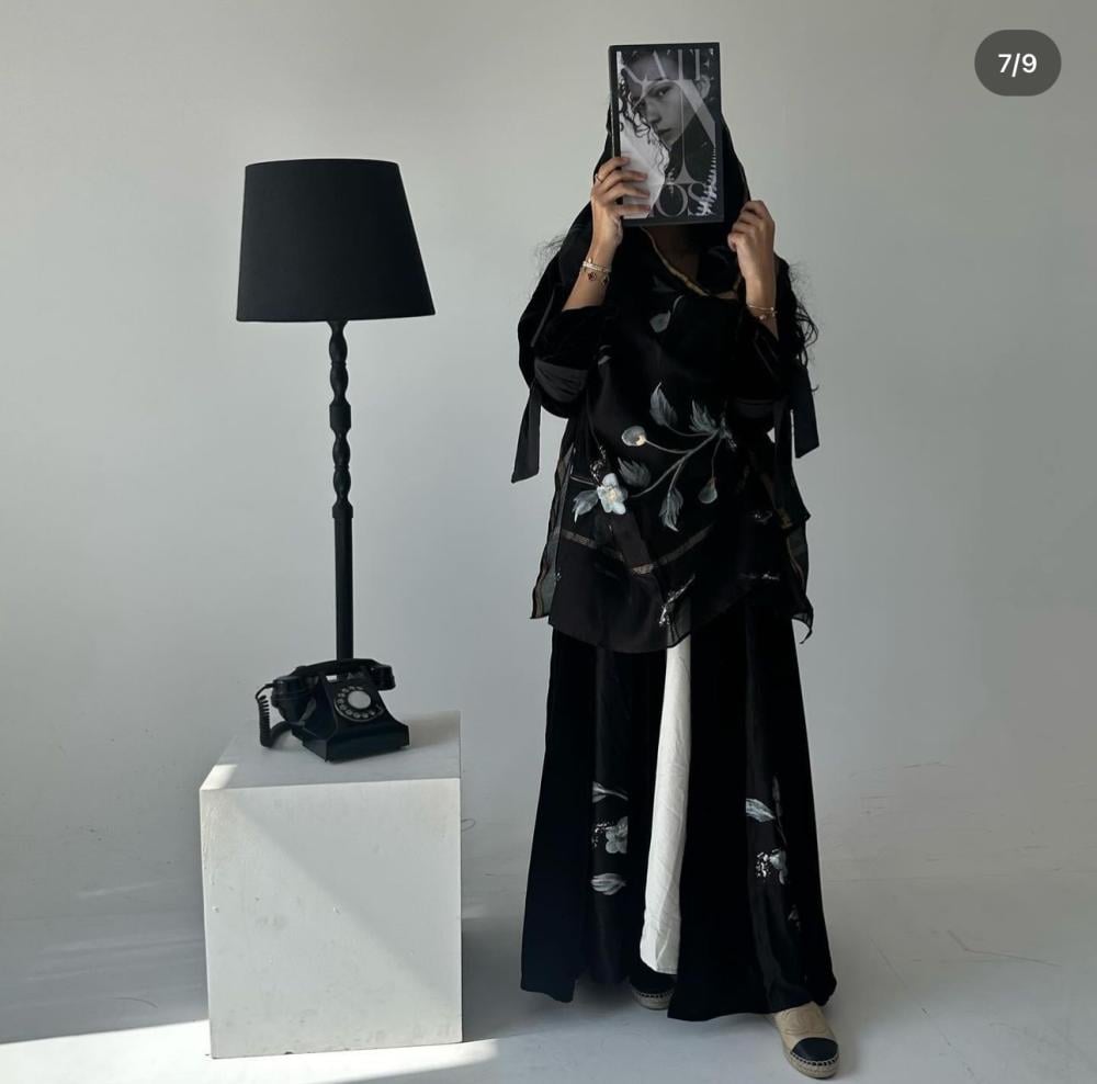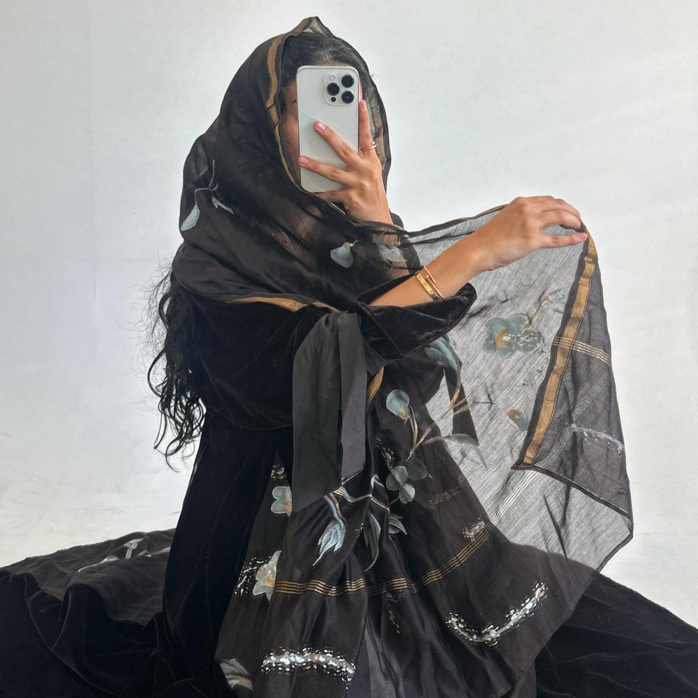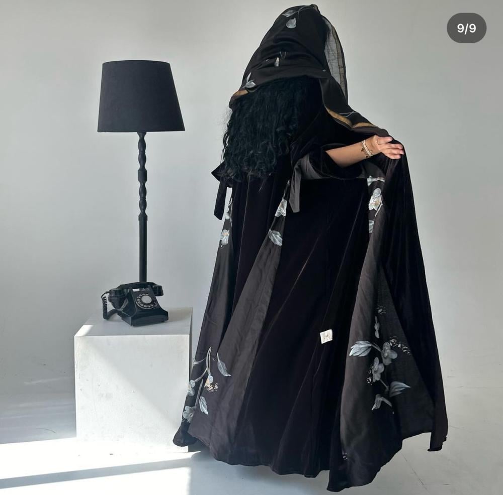 مخمل بني غامق | ٤ كسرات بني غامق قطن طباعه مشجر | الكم ربطات مثبته | الطرحه قطن طباعه مشجره ( طول وعرض الطرحه اكبر من الطرح العاديه)
