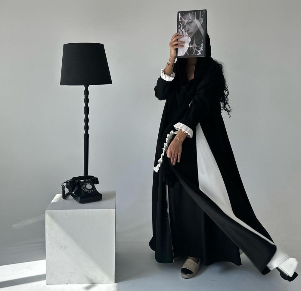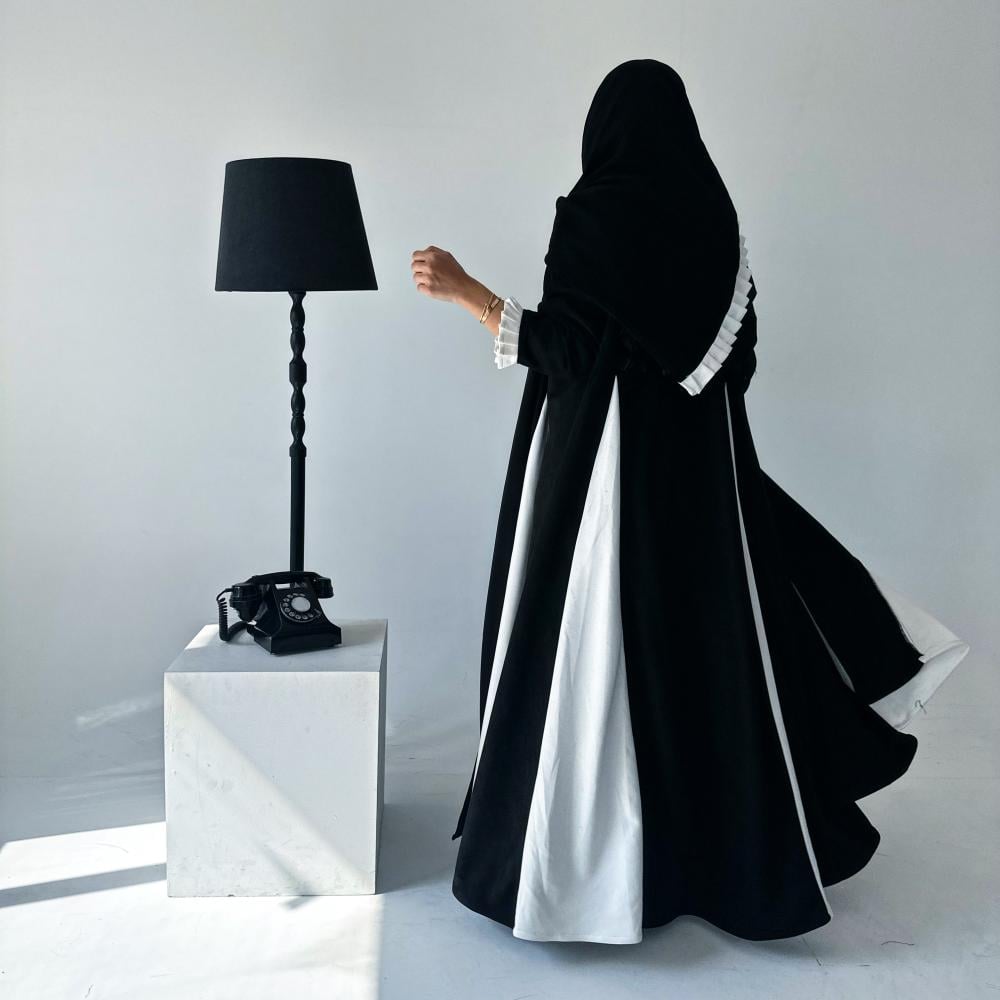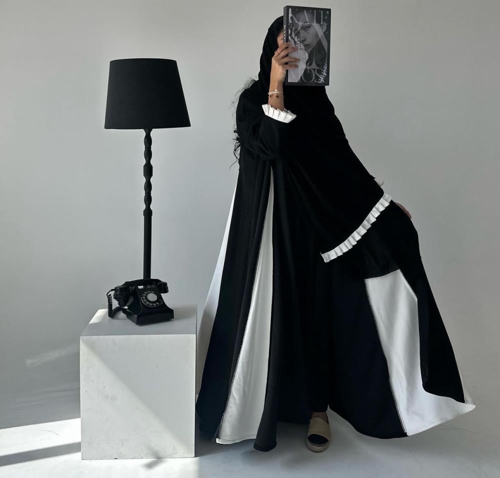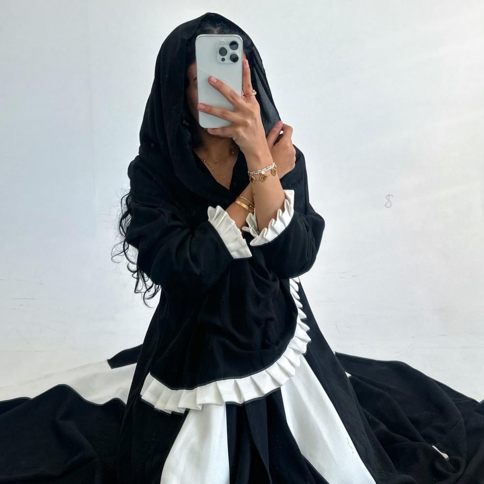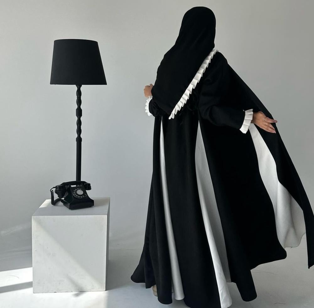 شامواه اسود | ٤ كسرات شامواه ابيض | الكم وطرف الطرحه مكسر ابيض | الطرحه شيفون اسود