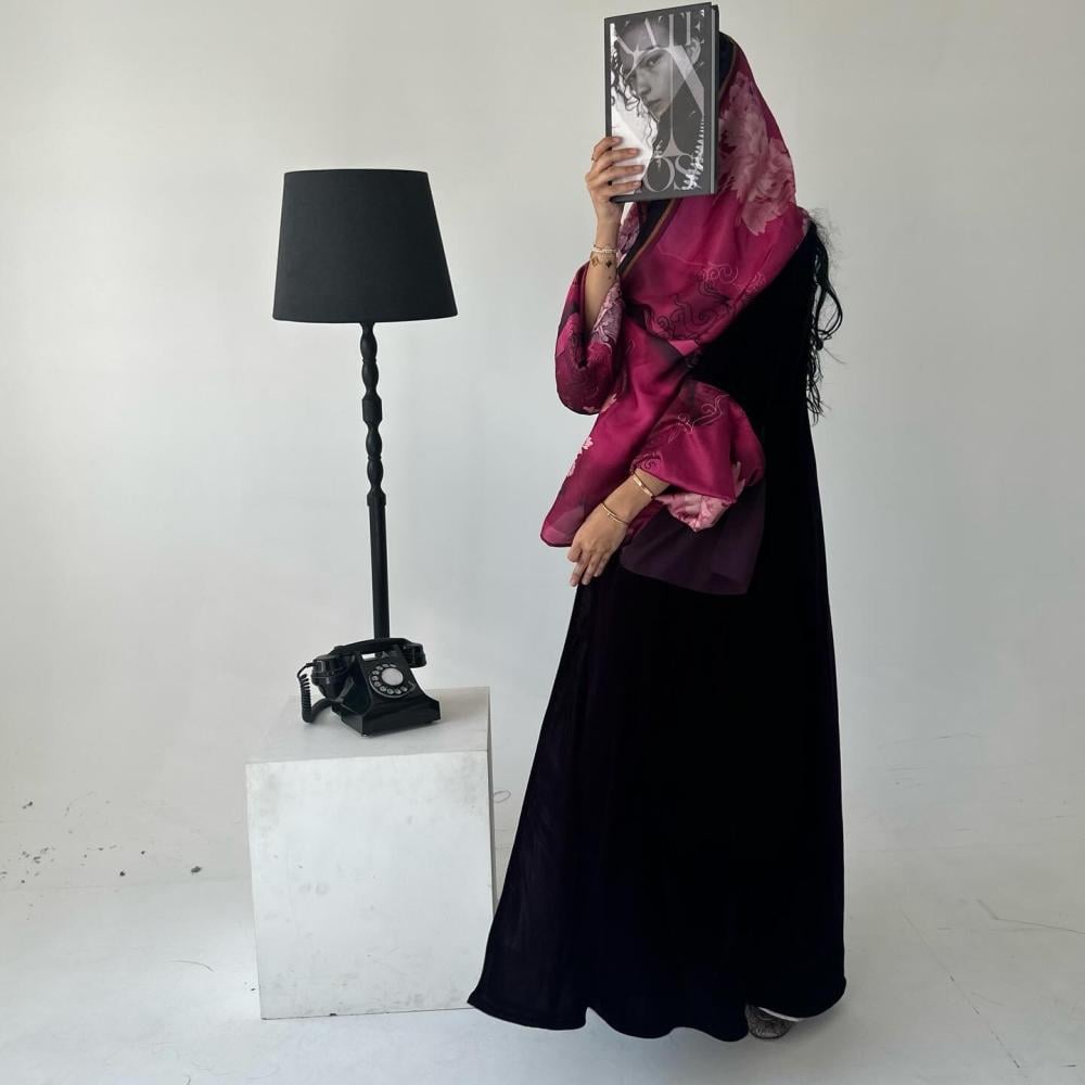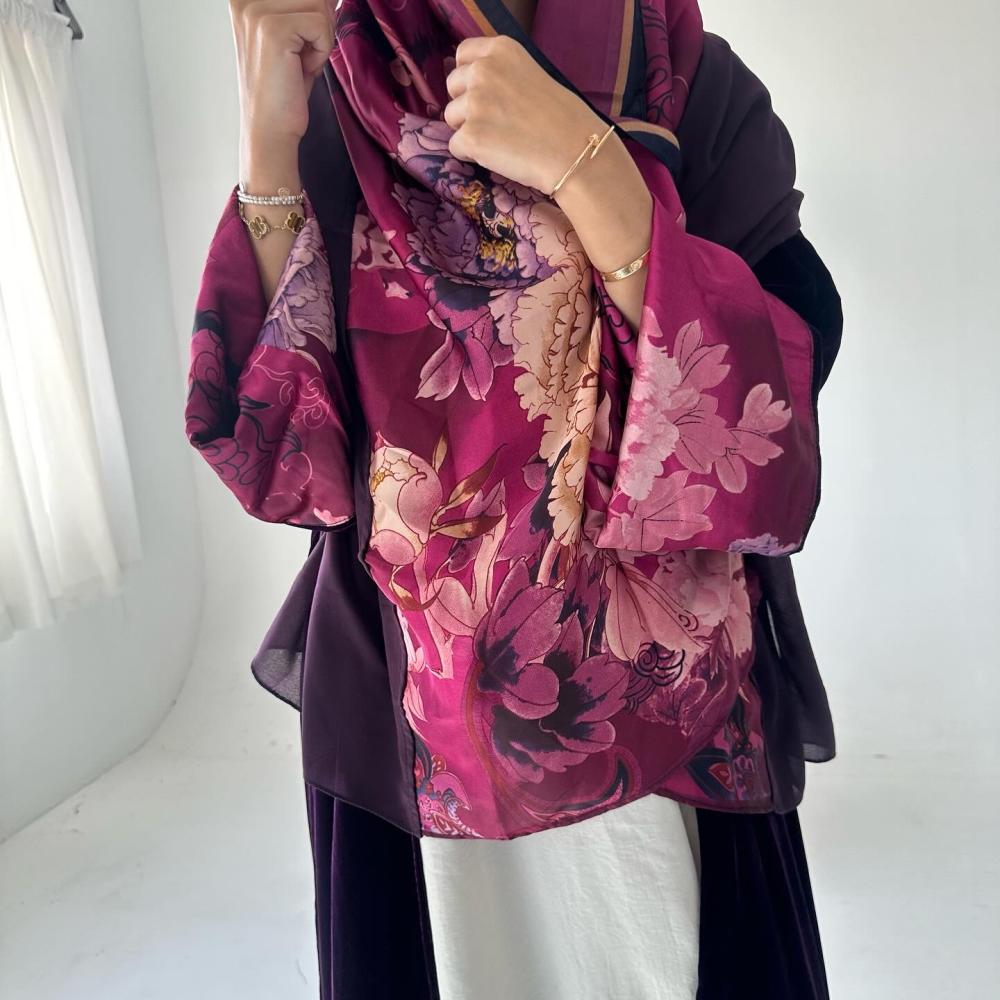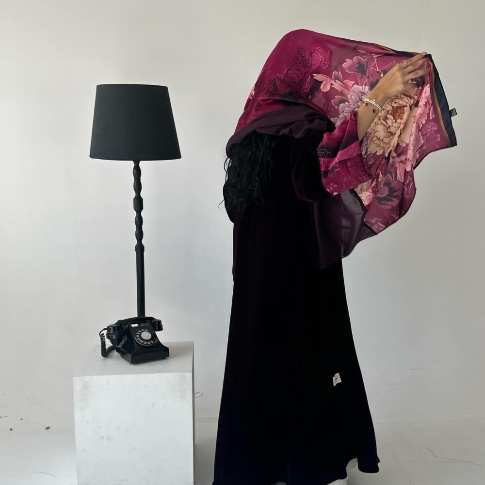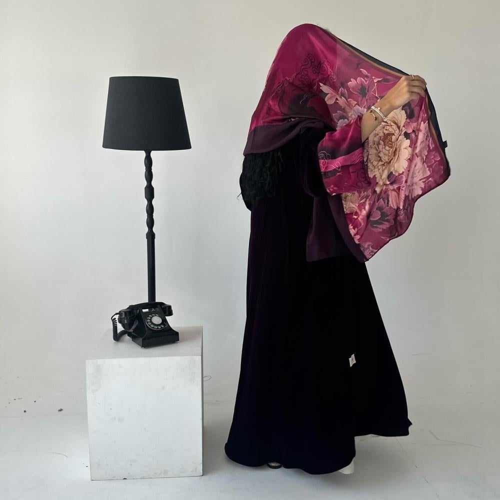 مخمل موف | الكم سفطه غير مثبته حرير مشجر | الطرحه نص حرير مشجر ونص ساده