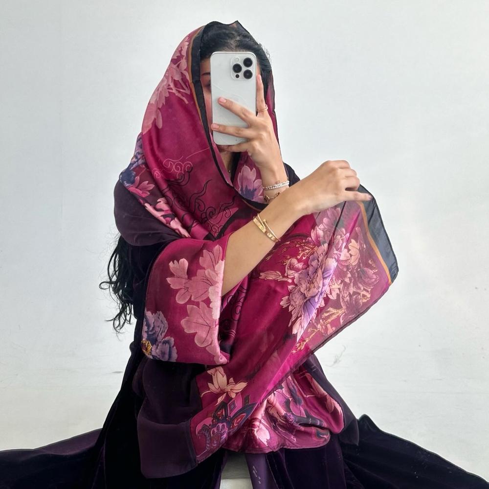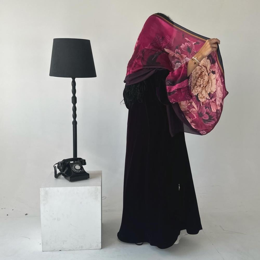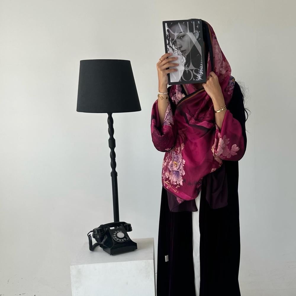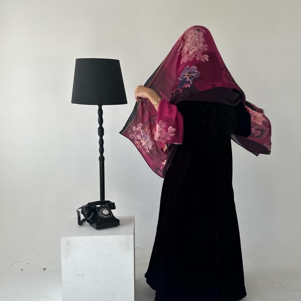 مخمل موف | الكم سفطه غير مثبته حرير مشجر | الطرحه نص حرير مشجر ونص ساده