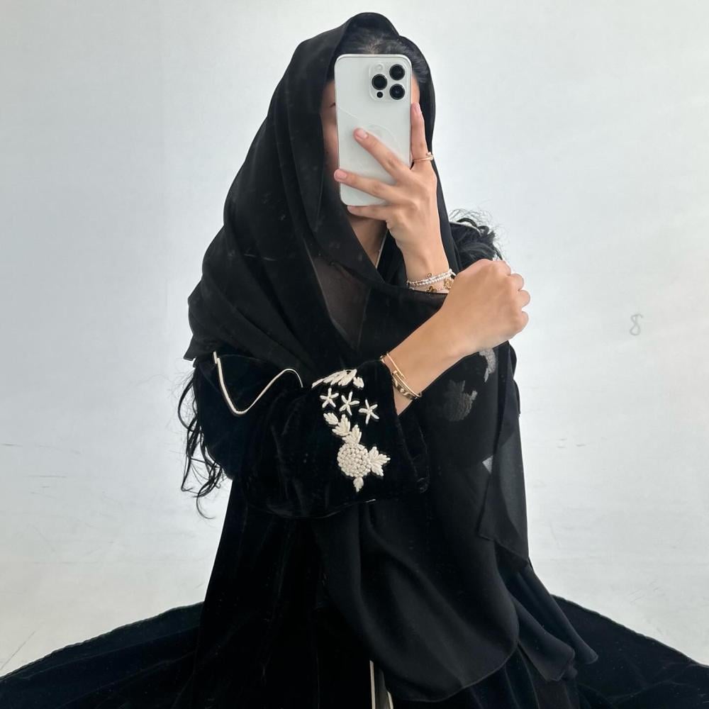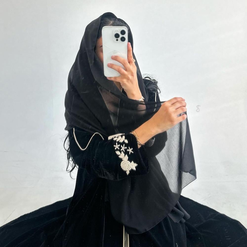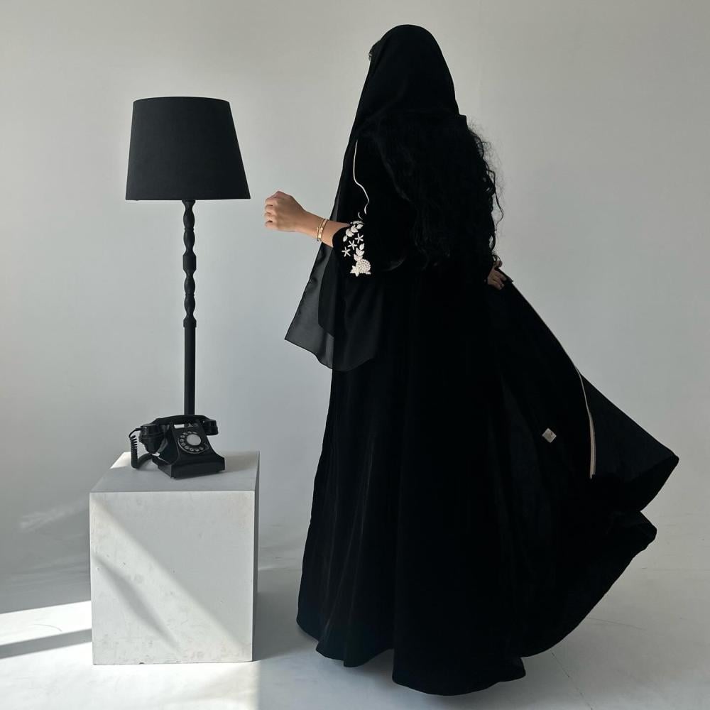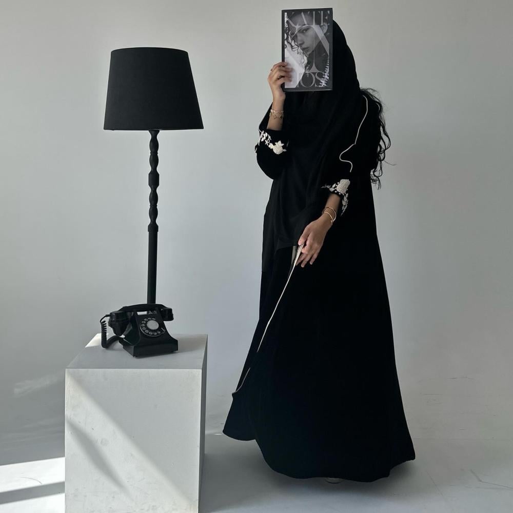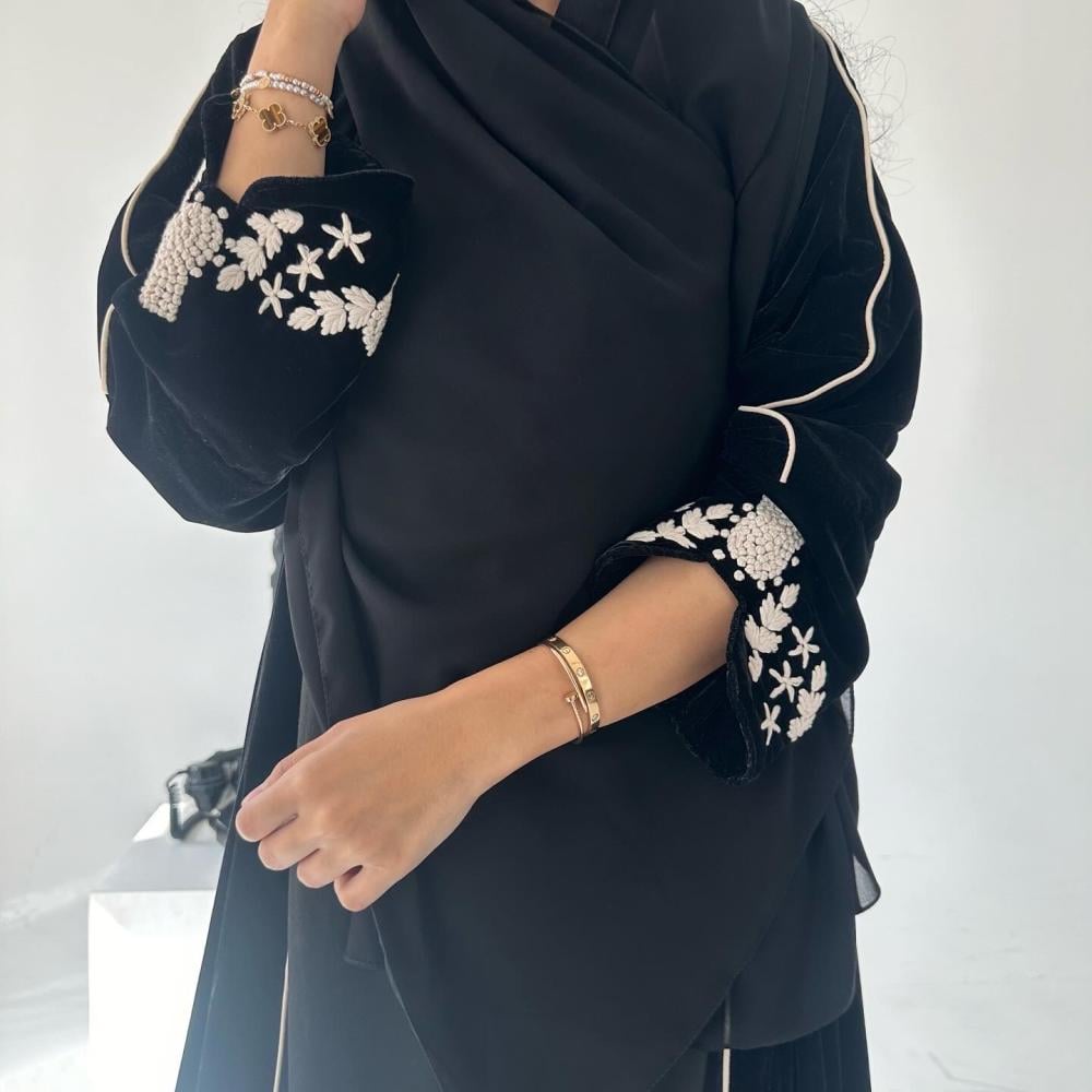 مخمل اسود | شك بيج فالاكمام | قيطان بيج | طرحه شيفون ساده