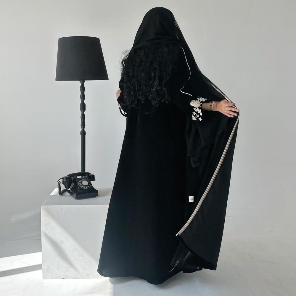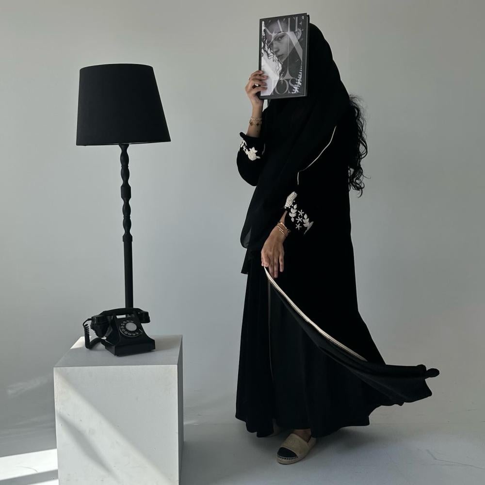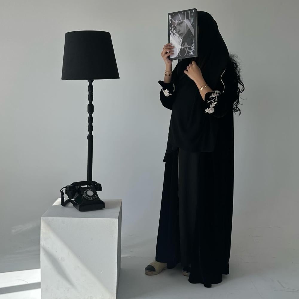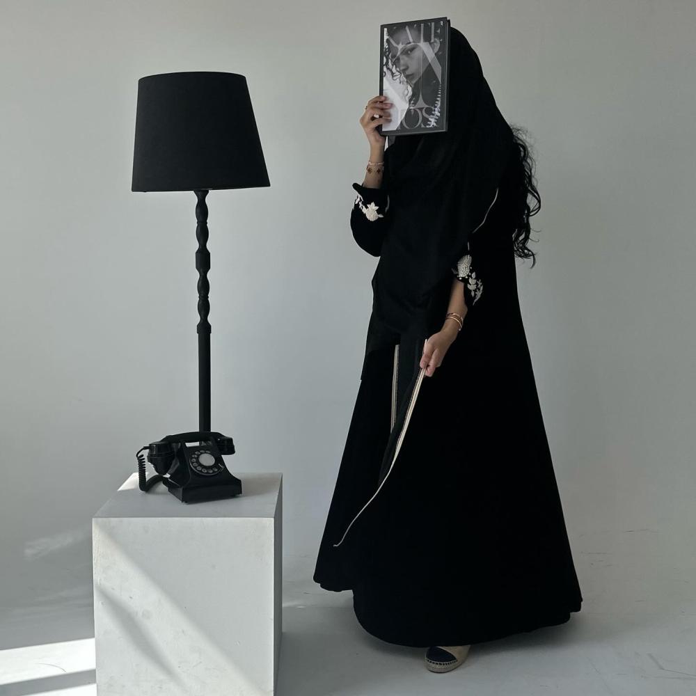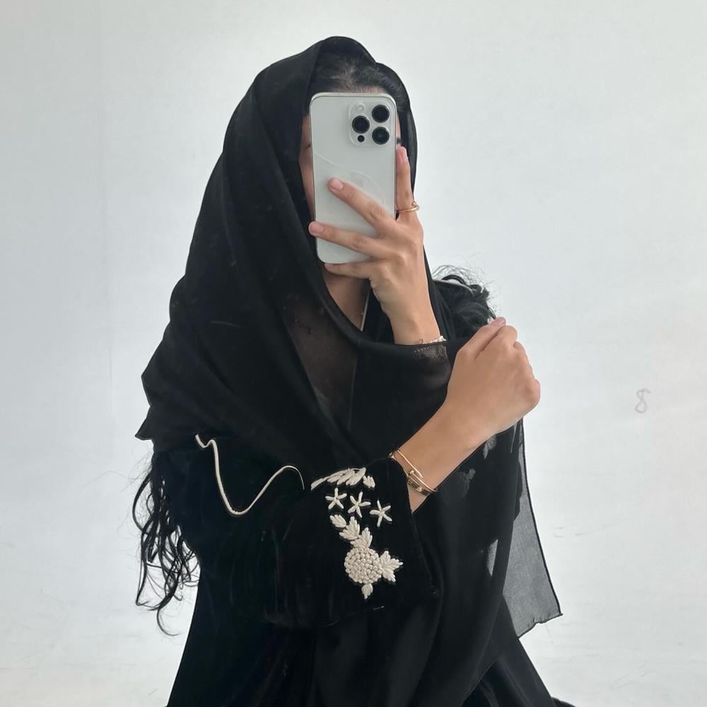 مخمل اسود | شك بيج فالاكمام | قيطان بيج | طرحه شيفون ساده