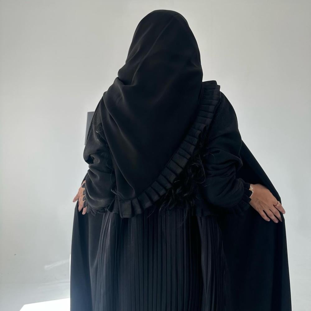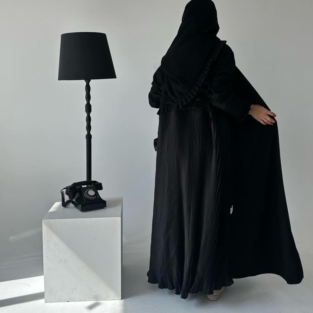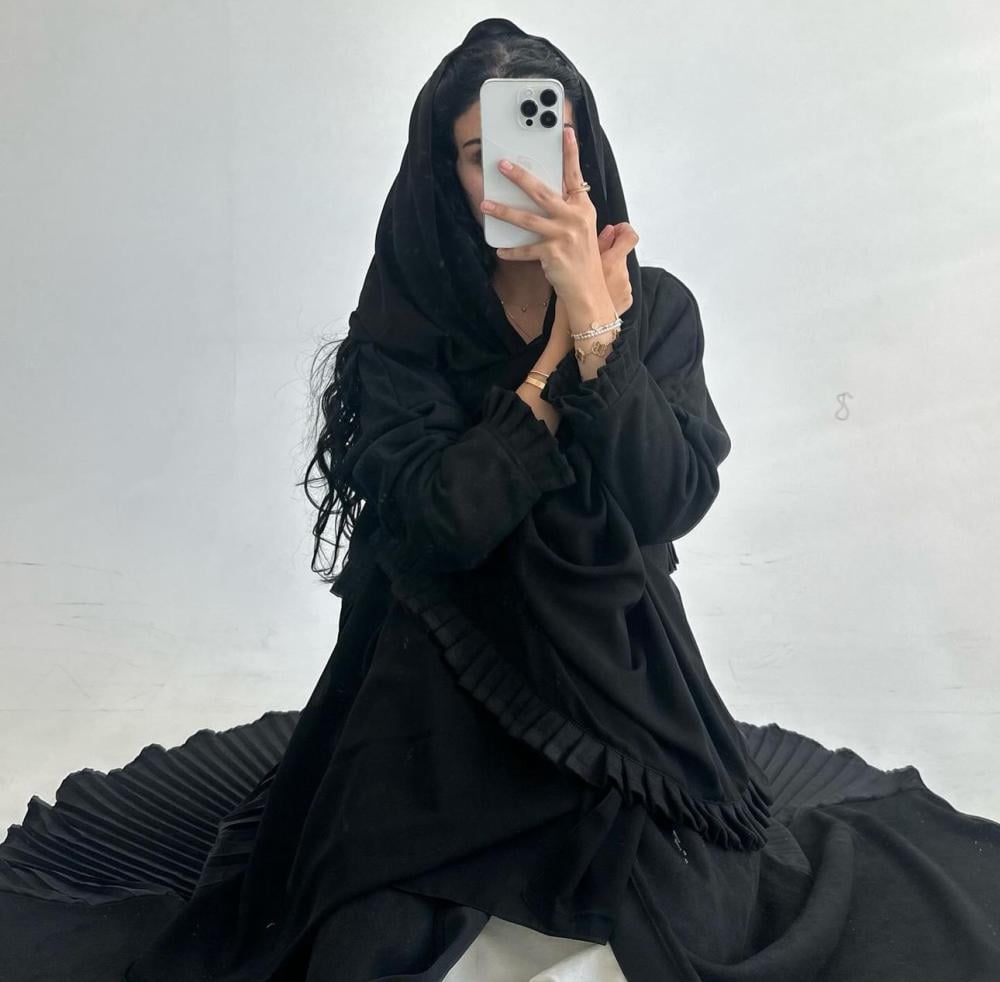 شامواه اسود | كسرات من الخلف كريب | الكم ماسك ب تكسير | الطرحه شيفون اسود بطرف مكسر
