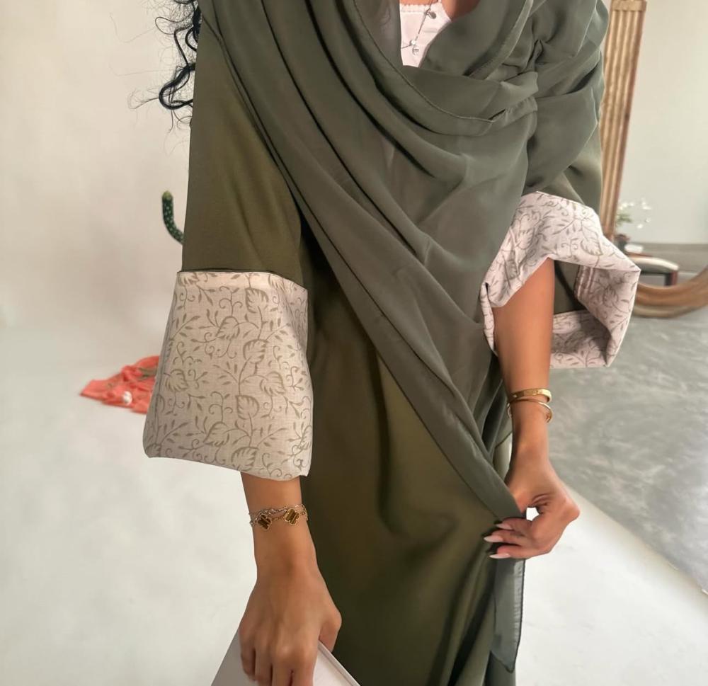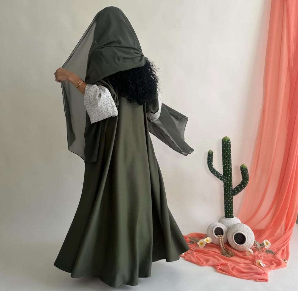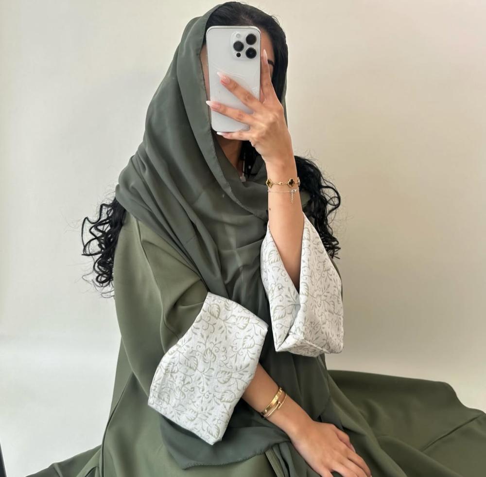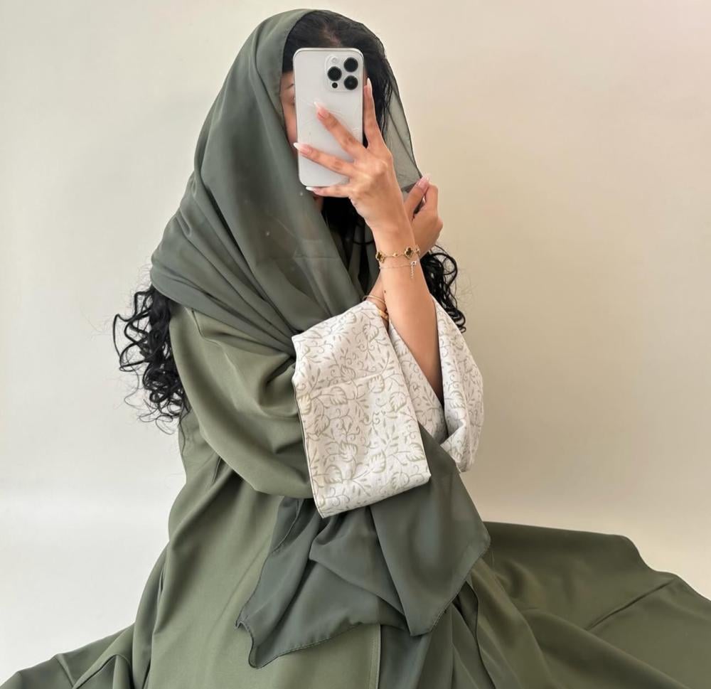 كريب باربي زيتي فاتح | الكم قطن مشجر سفطه مبطنه | الطرحه شيفون ساده