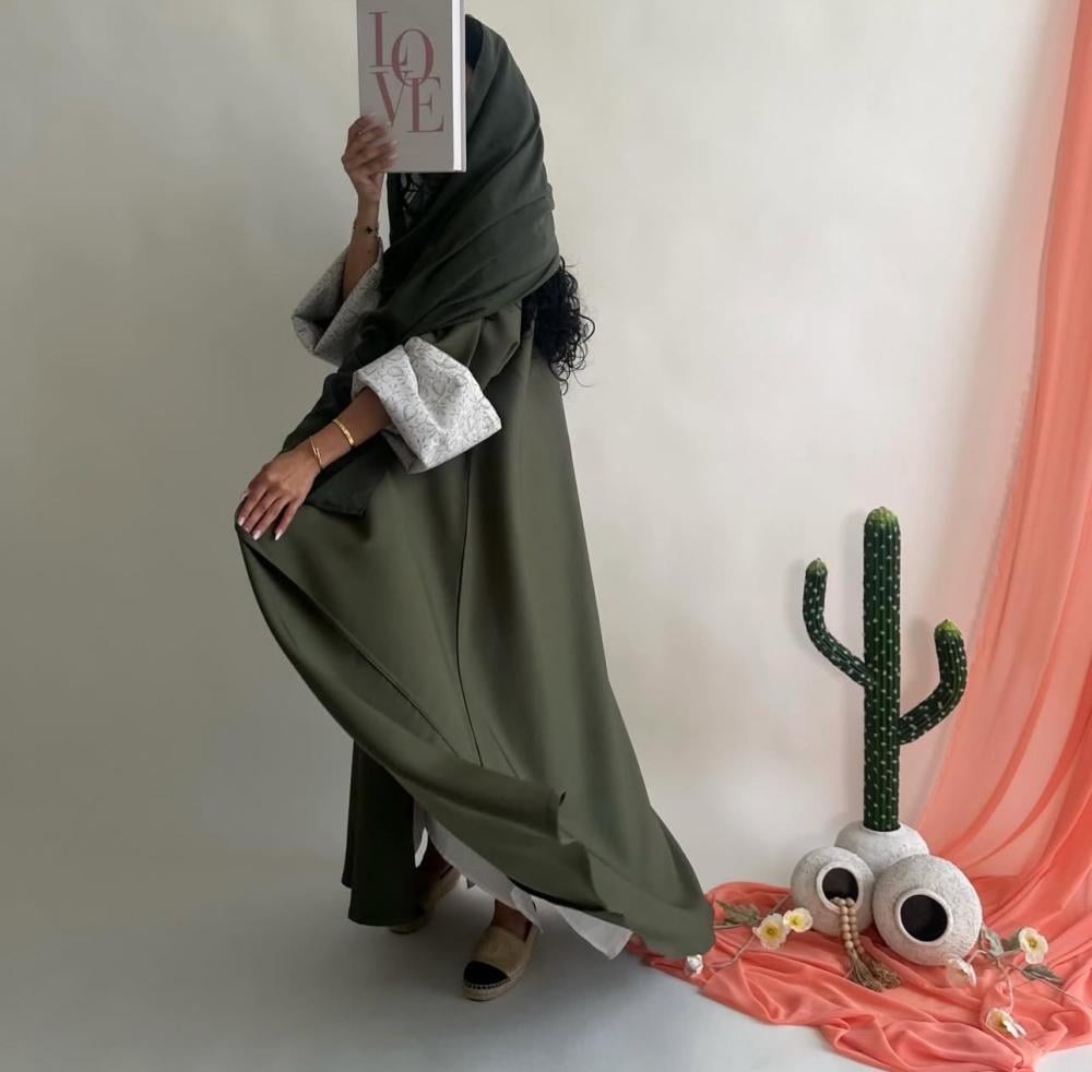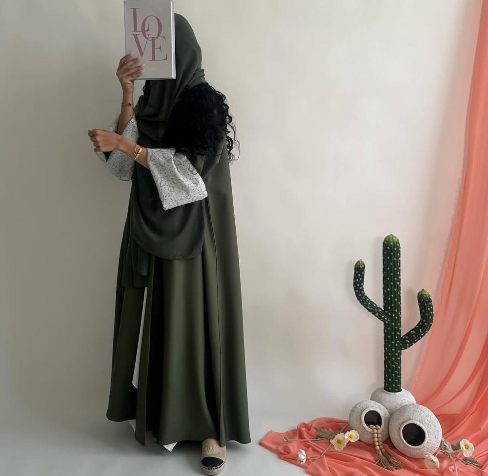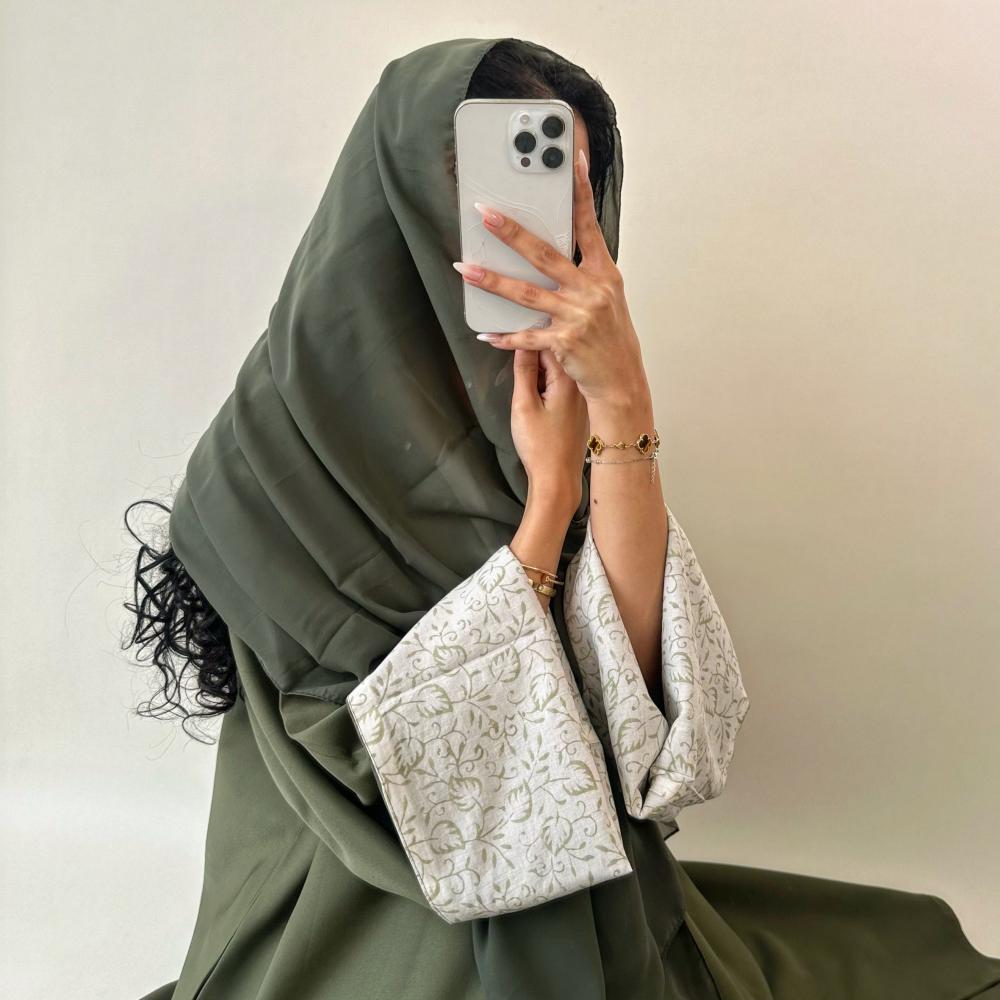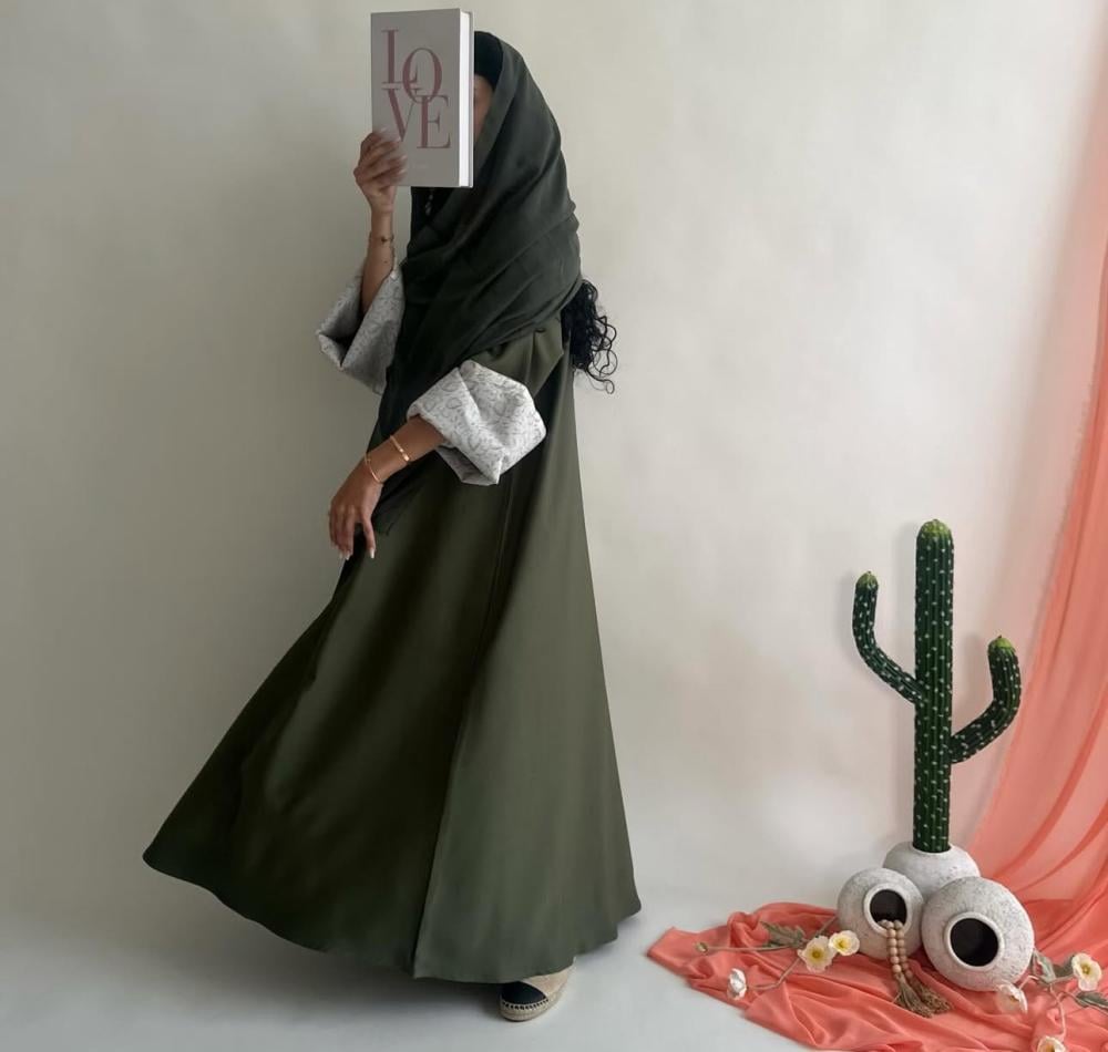 كريب باربي زيتي فاتح | الكم قطن مشجر سفطه مبطنه | الطرحه شيفون ساده