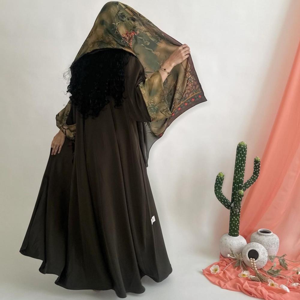 كريب زيتي | الكم سفطه حرير مشجر | الطرحه نص حرير مشجر ونص ساده