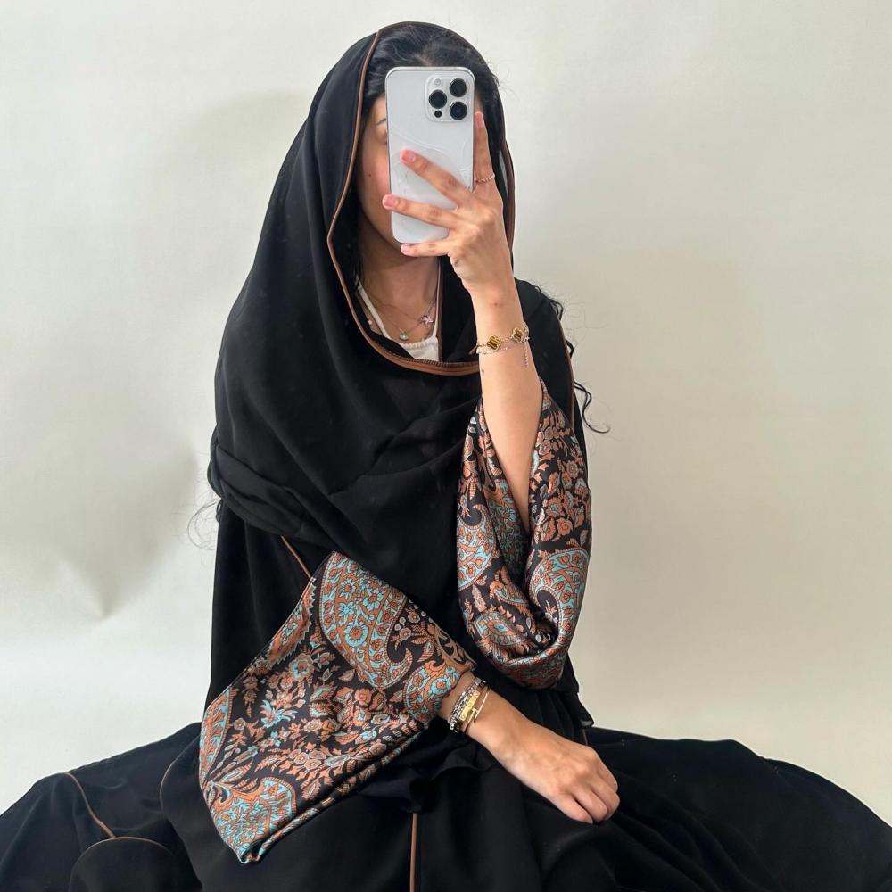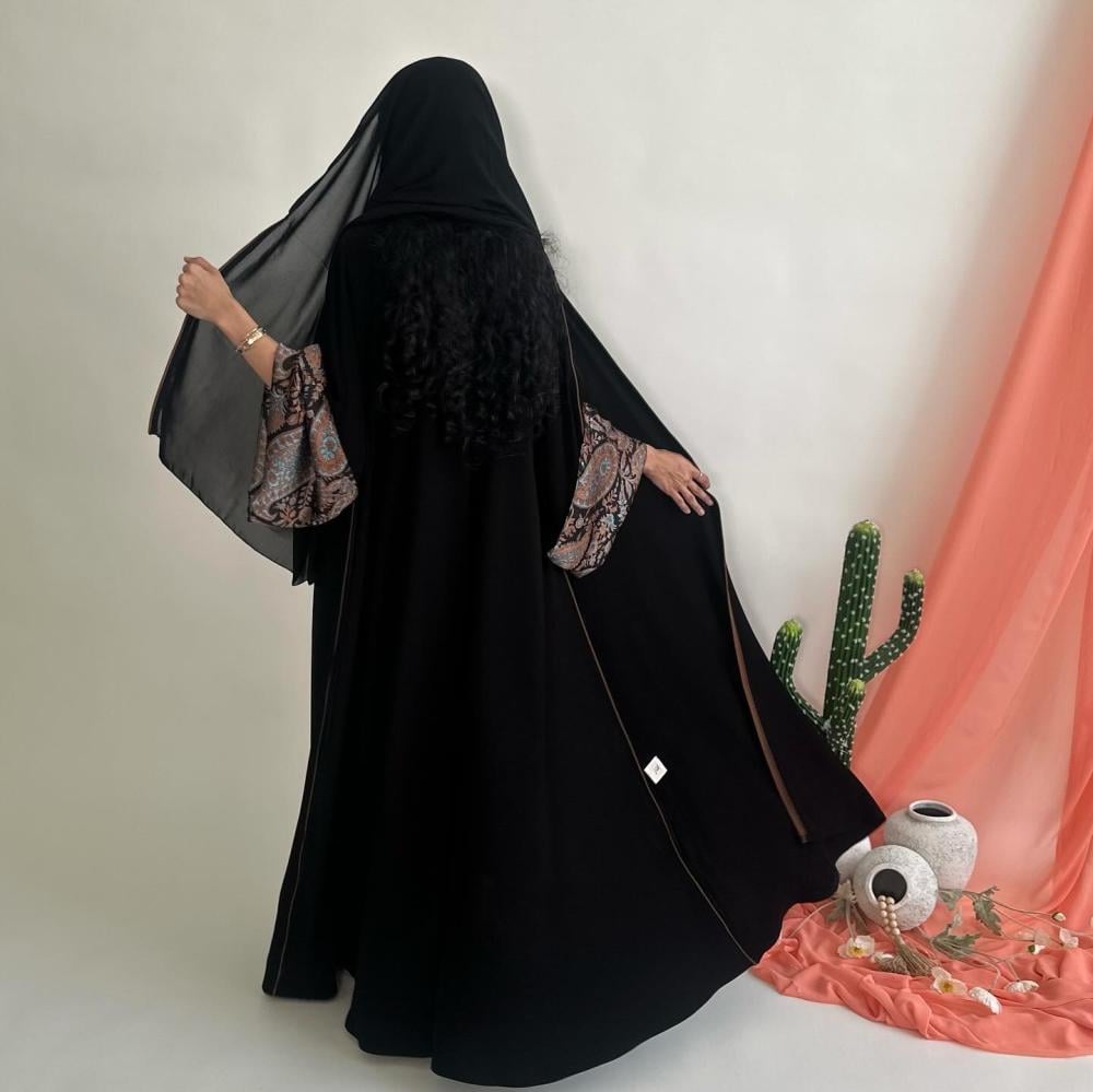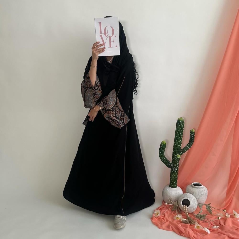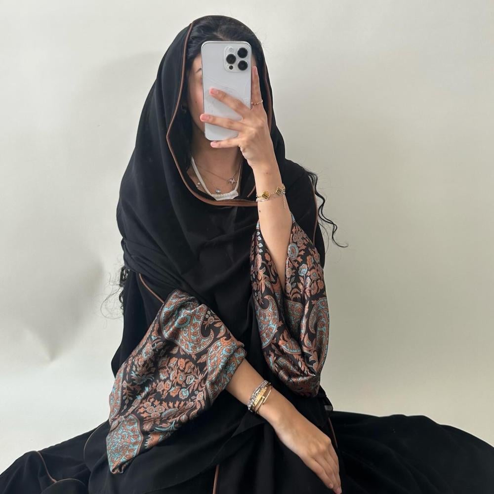 كريب ملكي كوري | الكم سفطه حرير مموج | قيطان كموني كامل العبايه | الطرحه شيفون اسود بقيطان