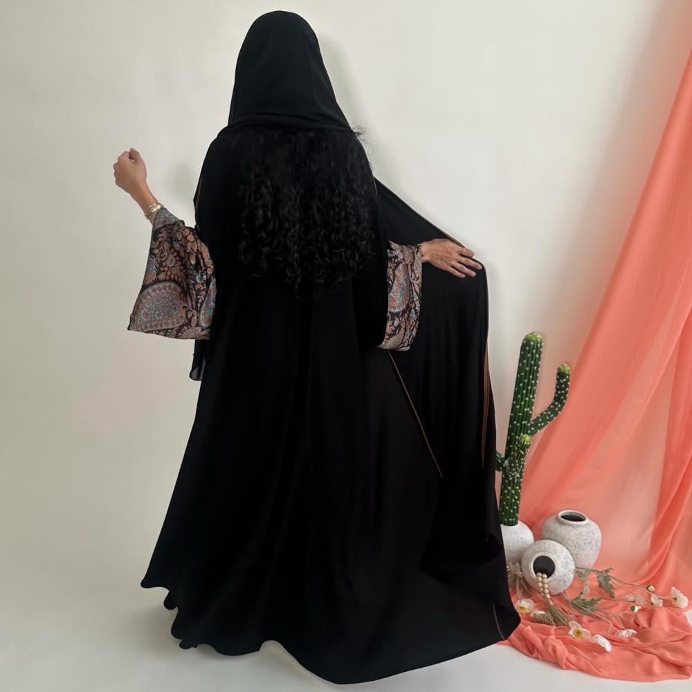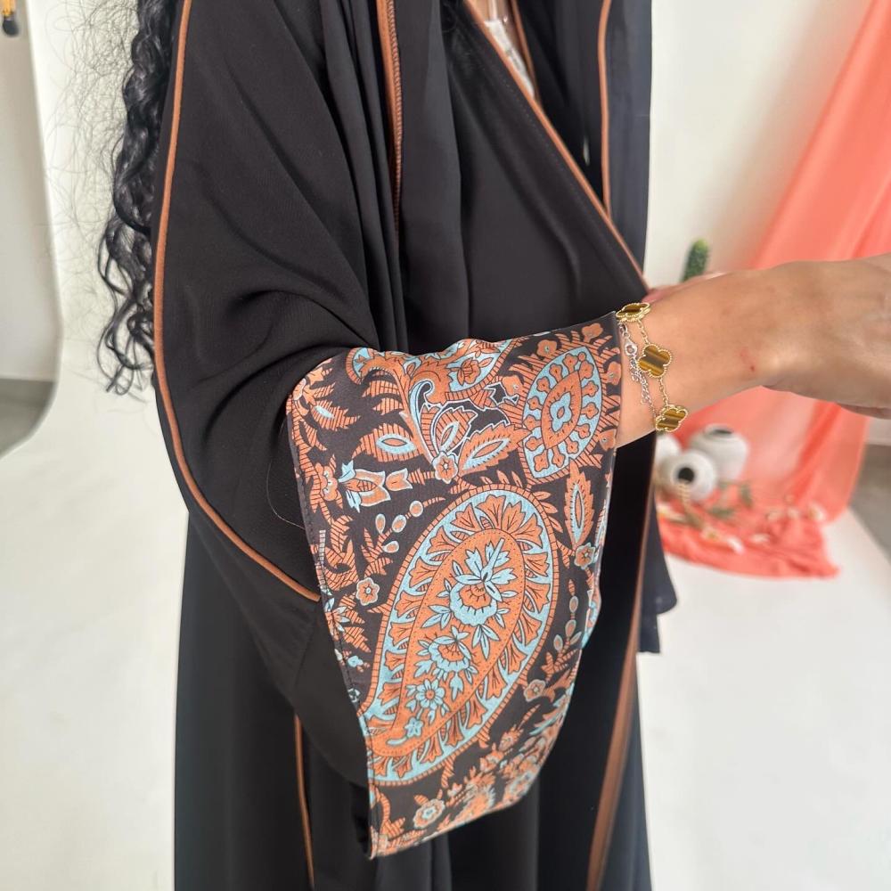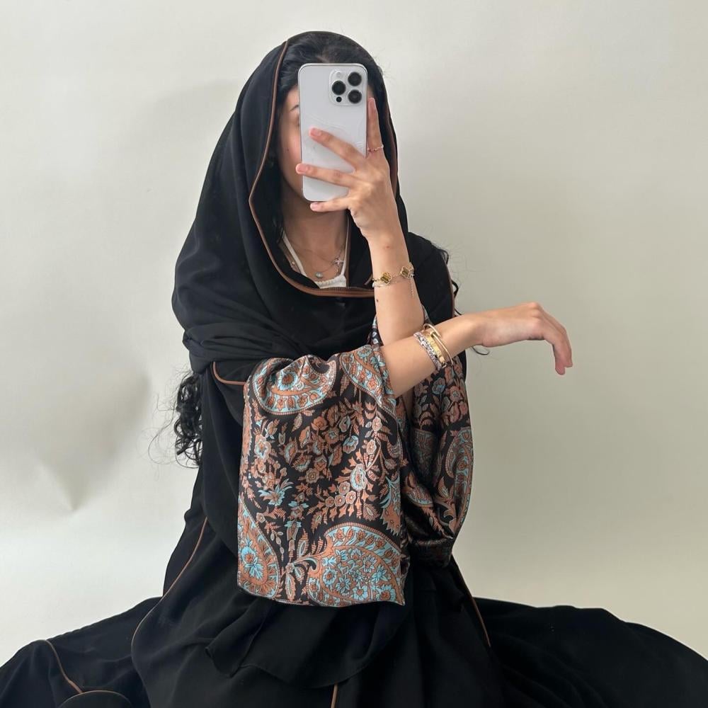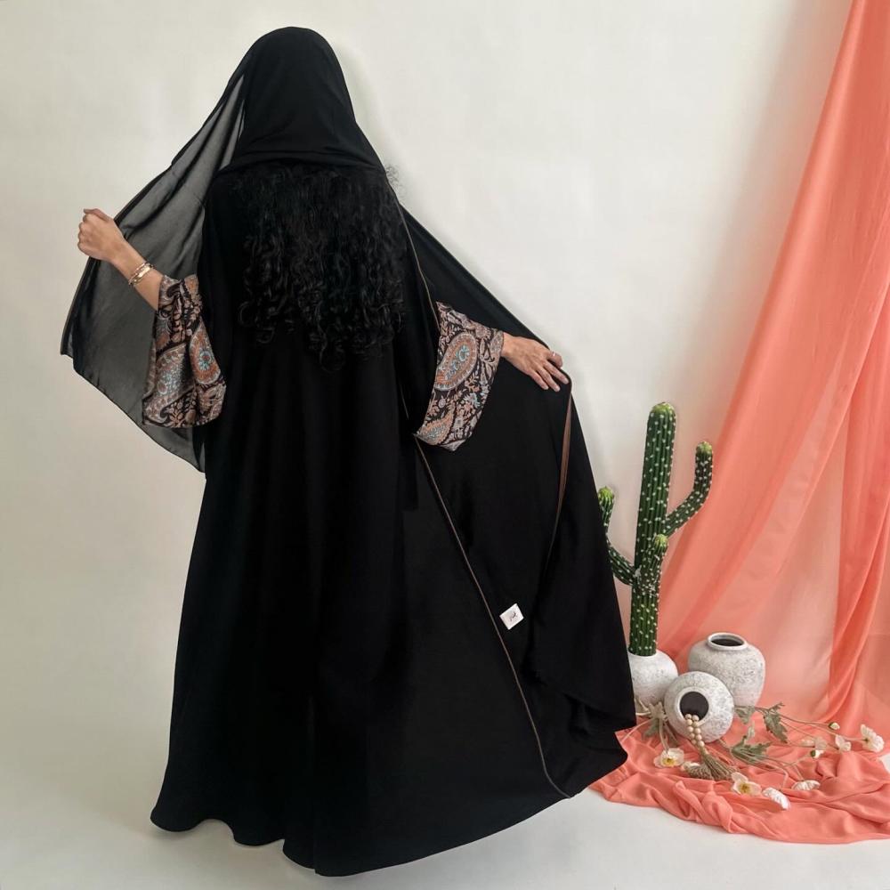 كريب ملكي كوري | الكم سفطه حرير مموج | قيطان كموني كامل العبايه | الطرحه شيفون اسود بقيطان