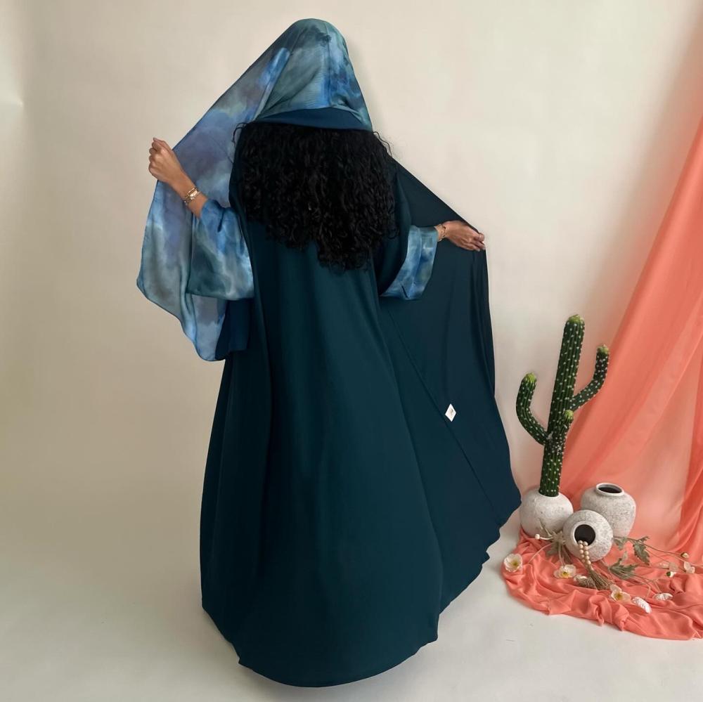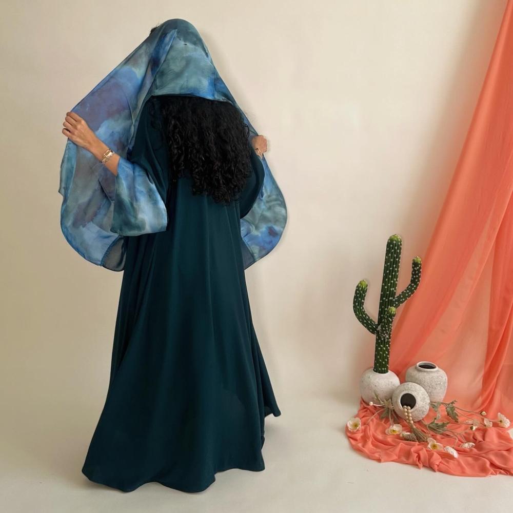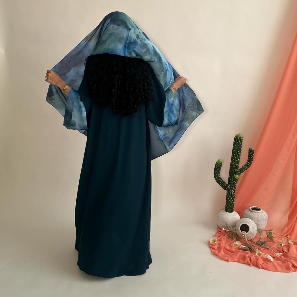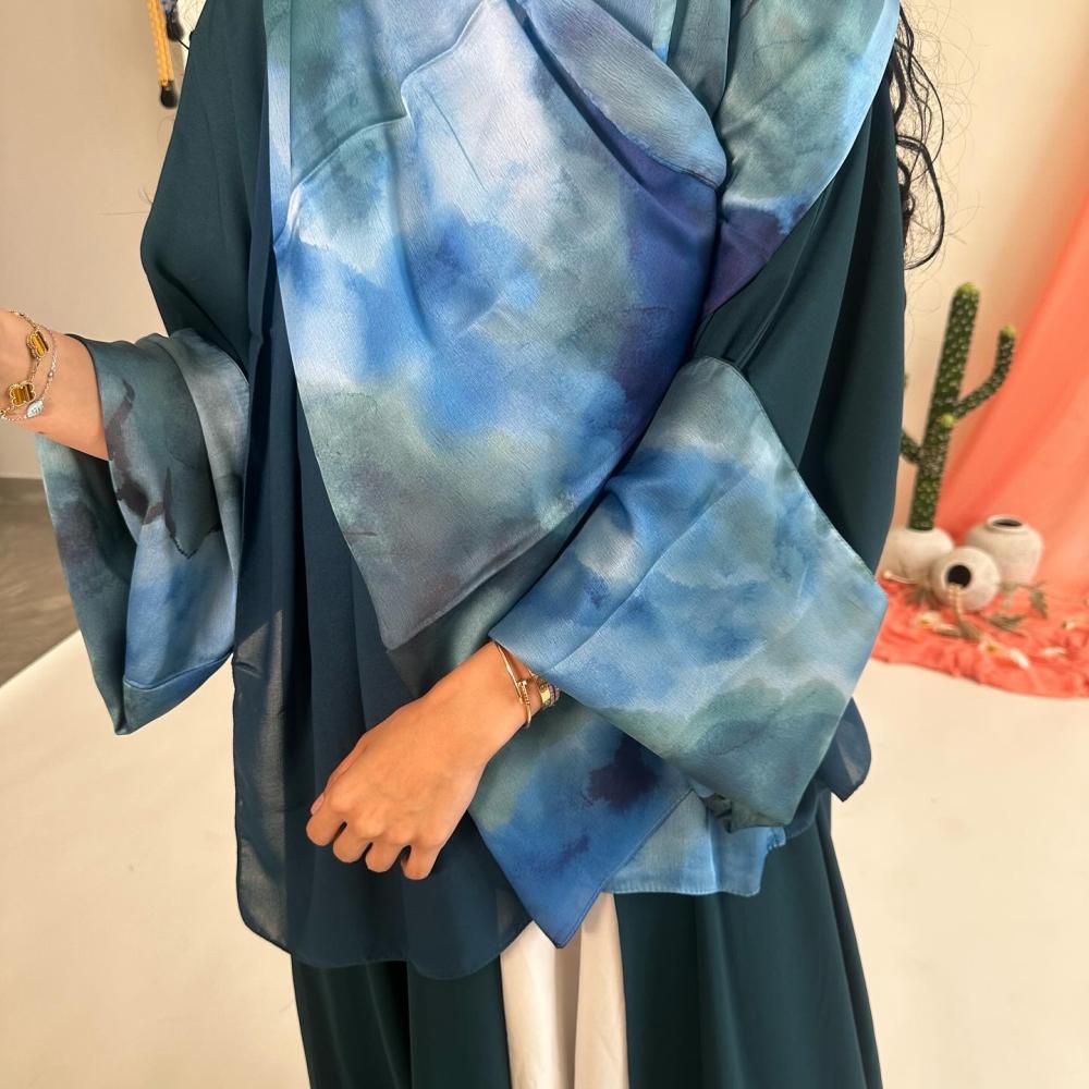 كريب اندويسي تركواز | الكم سفطه حرير مموج | الطرحه نص شيفون ونص حرير مموج