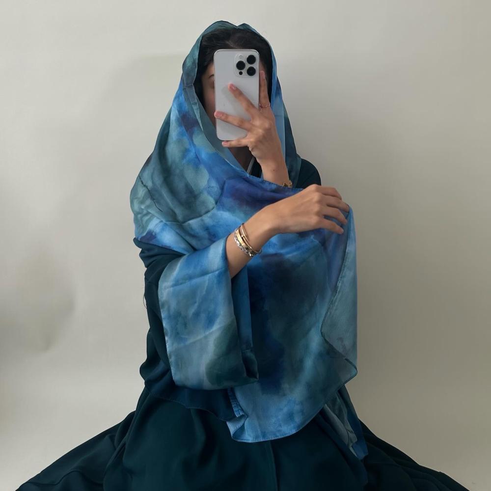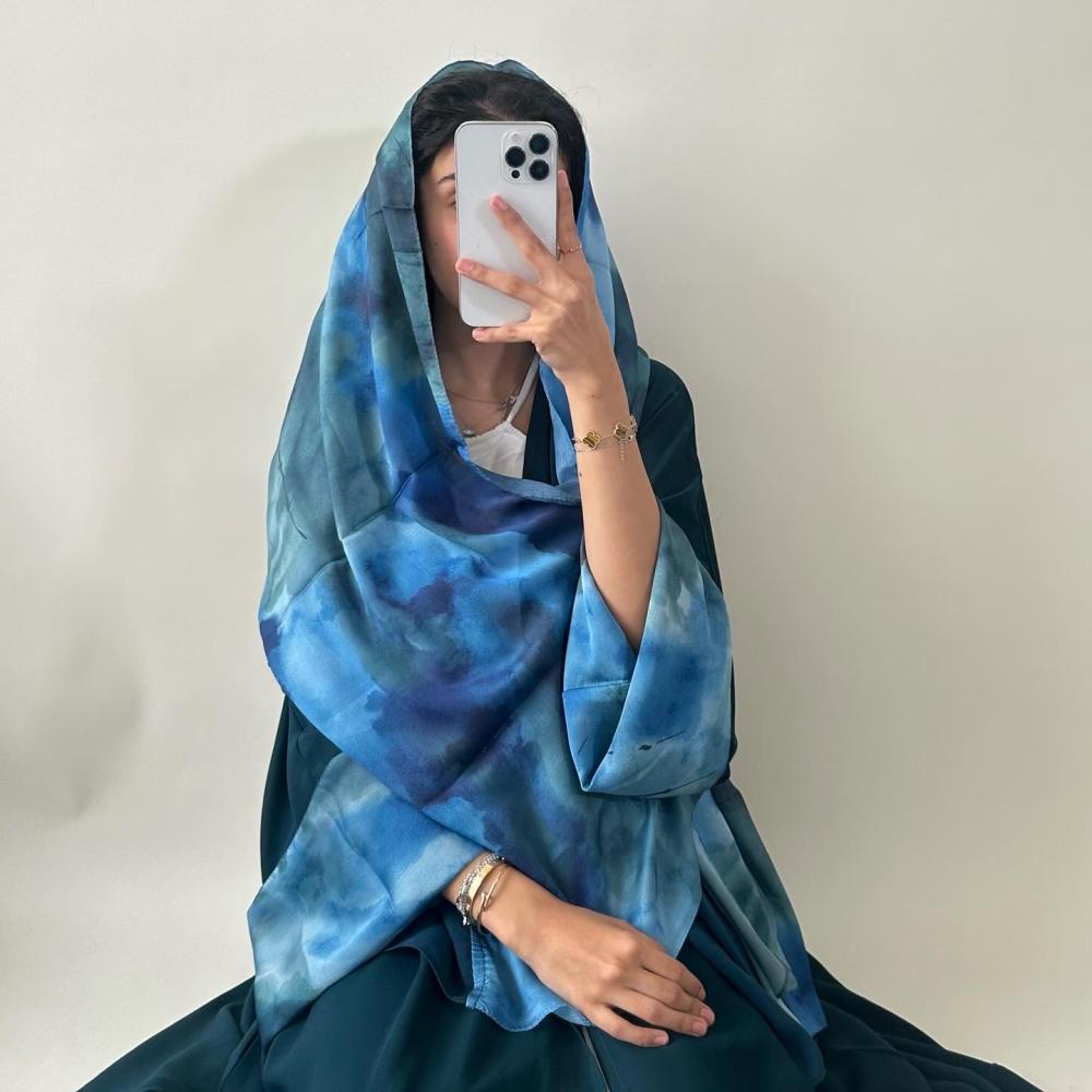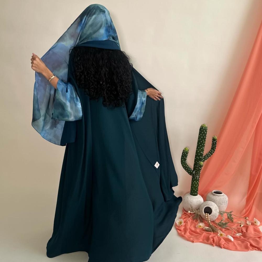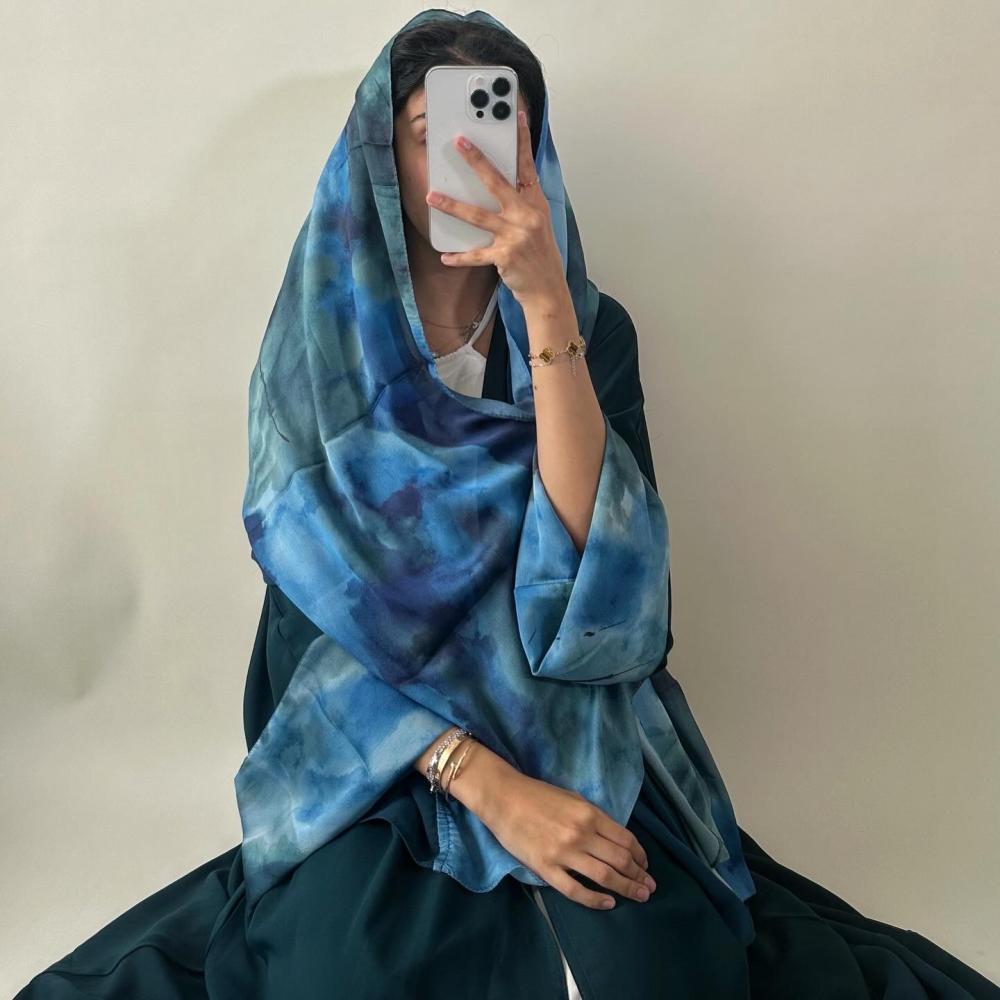 كريب اندويسي تركواز | الكم سفطه حرير مموج | الطرحه نص شيفون ونص حرير مموج