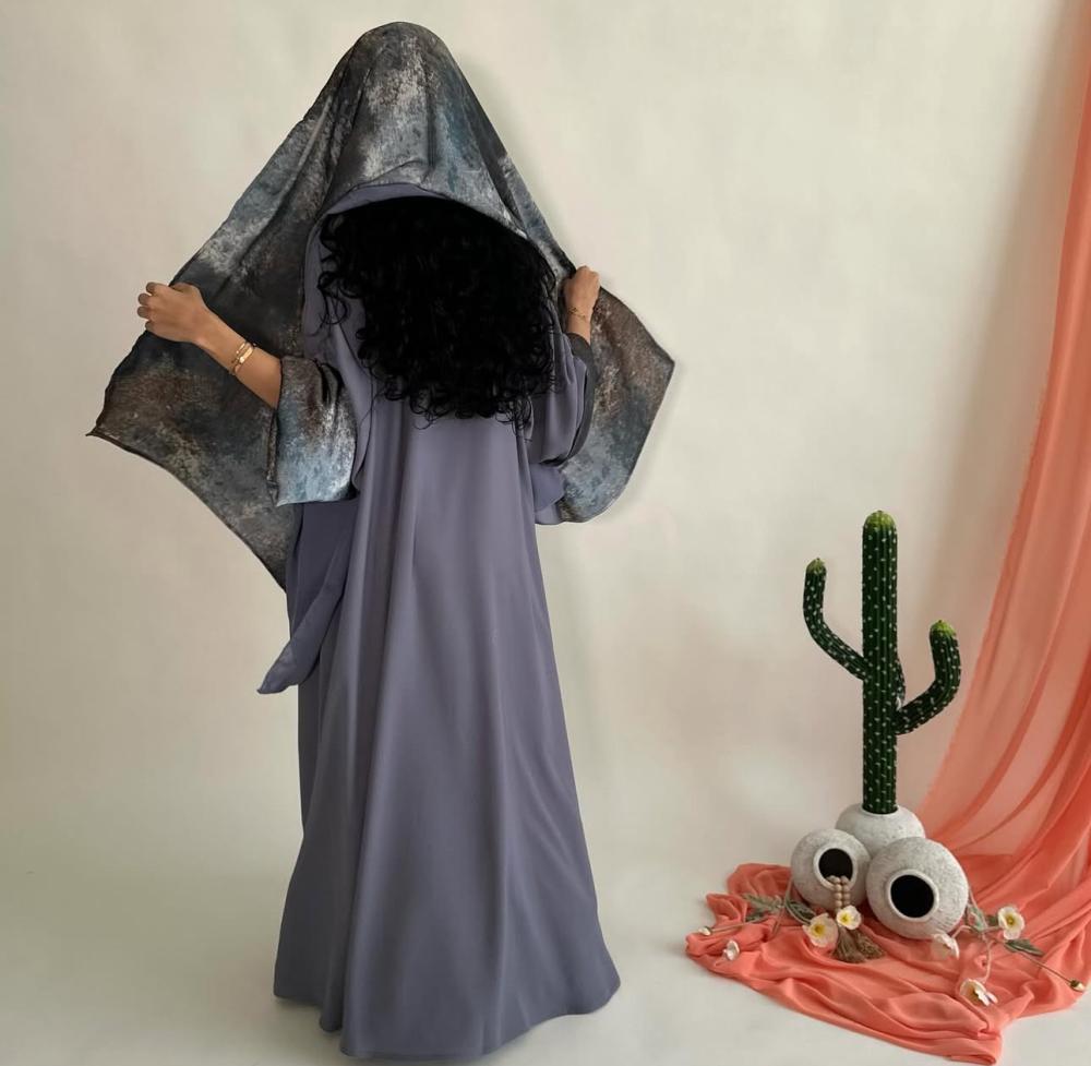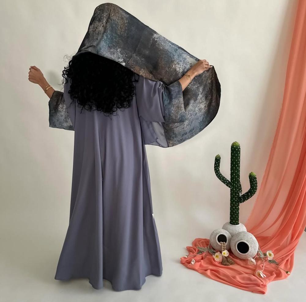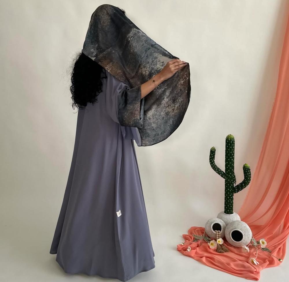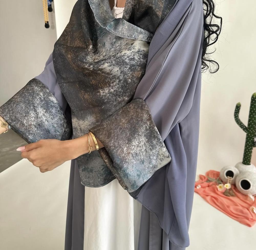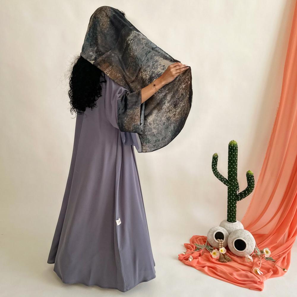 كريب اندويسي رمادي | الكم سفطه مبطنه بحرير مموج | الطرحه نص حرير مموج ونص شيفون ساده