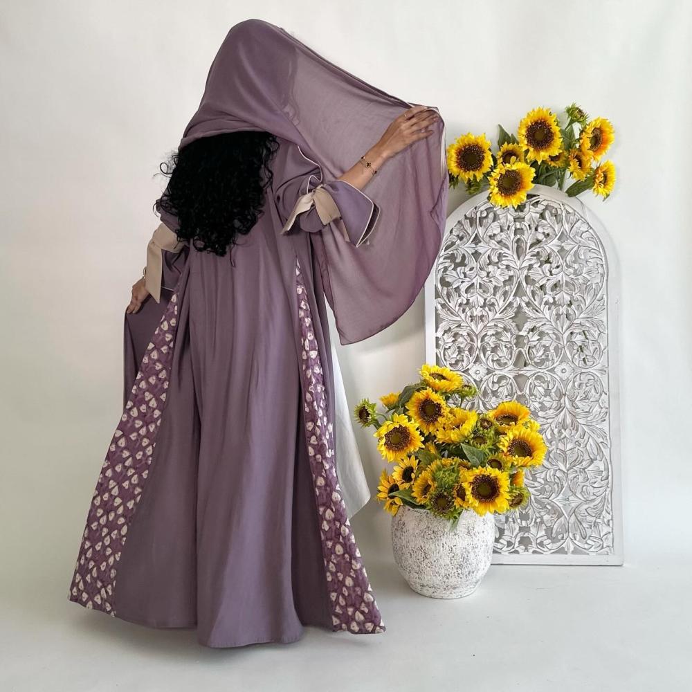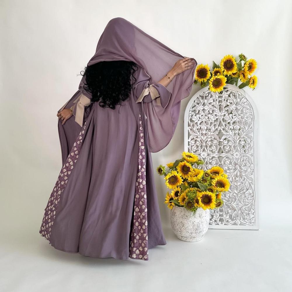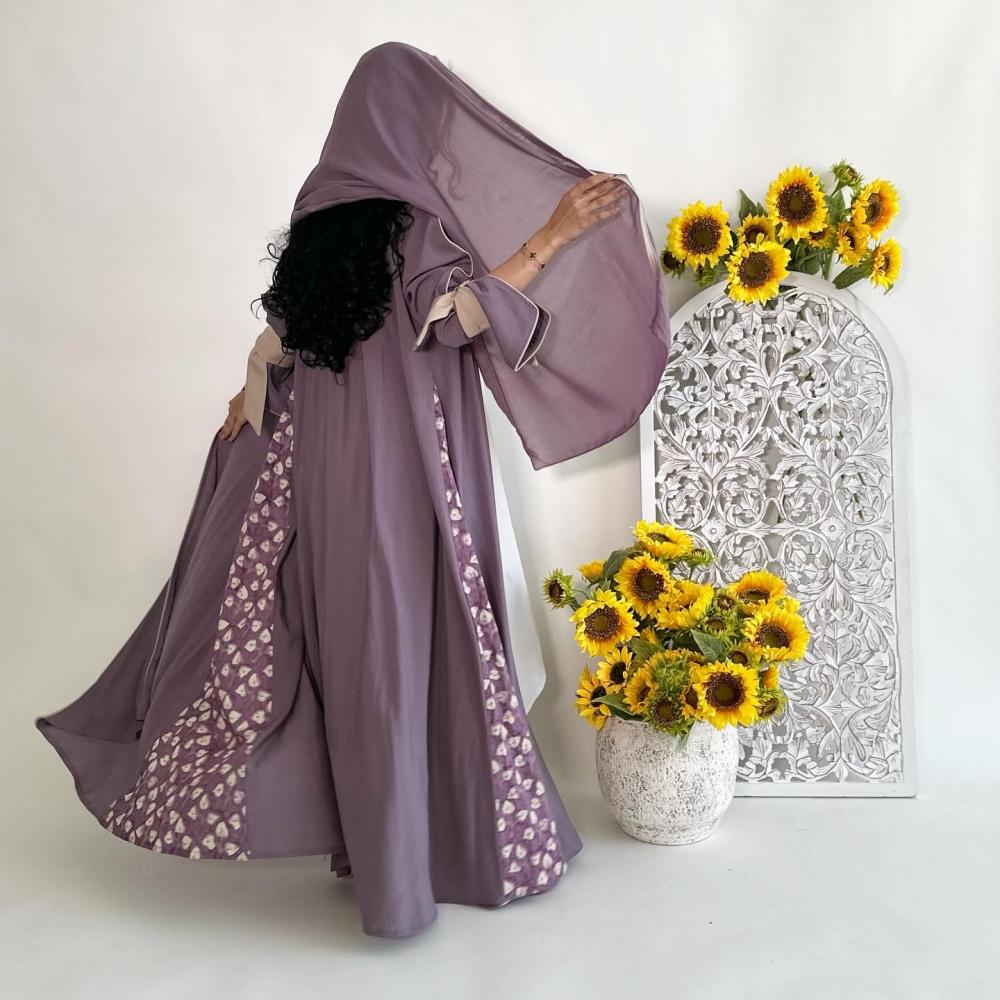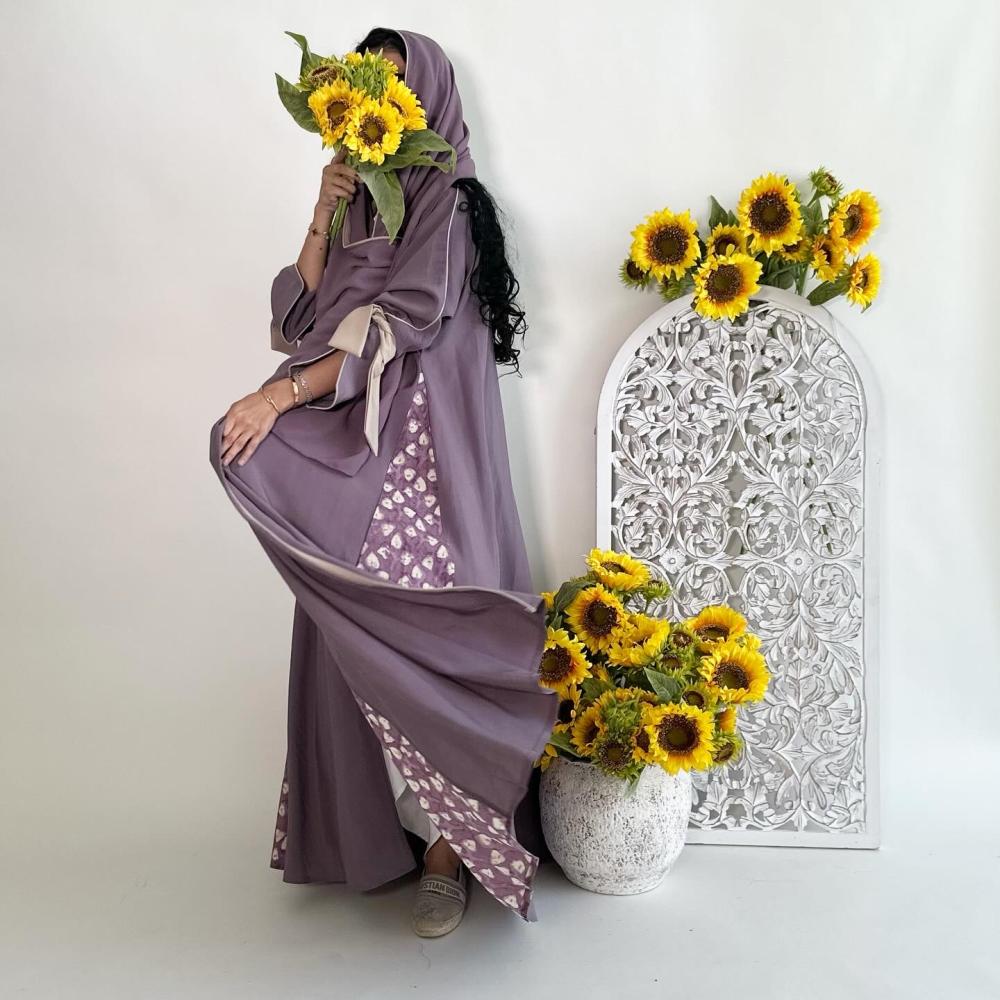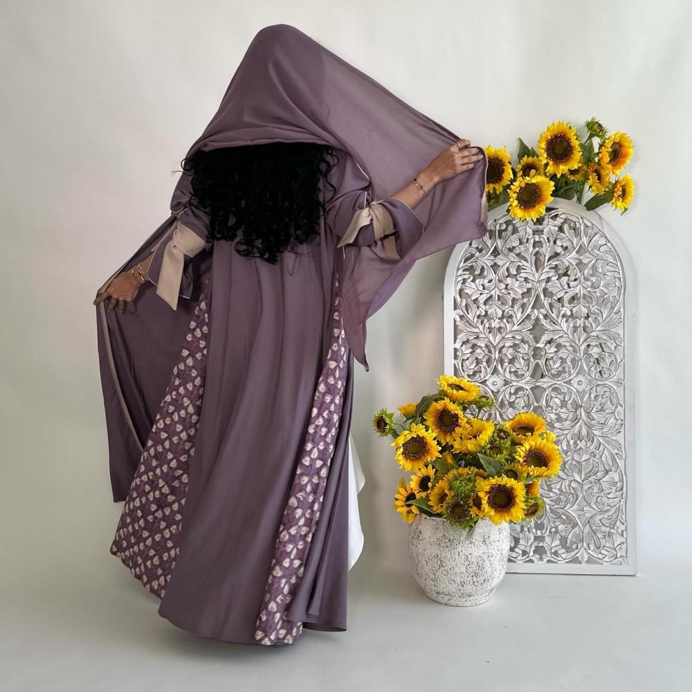 حرير مغسول كوري موف فاتح | الكم ربطات مثبته بيج | قيطان بيج كامل العبايه | كسرات قطن مموج من الجوانب | الطرحه شيفون ساده بقيطان