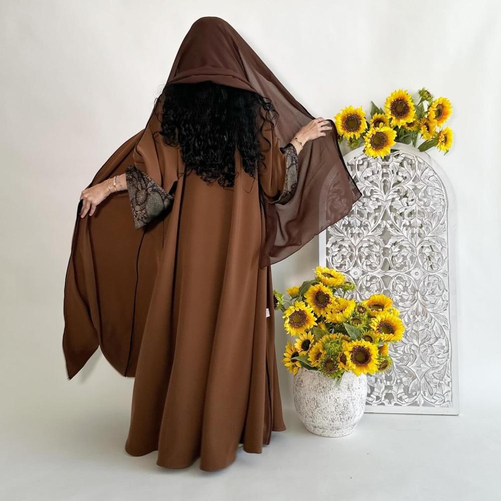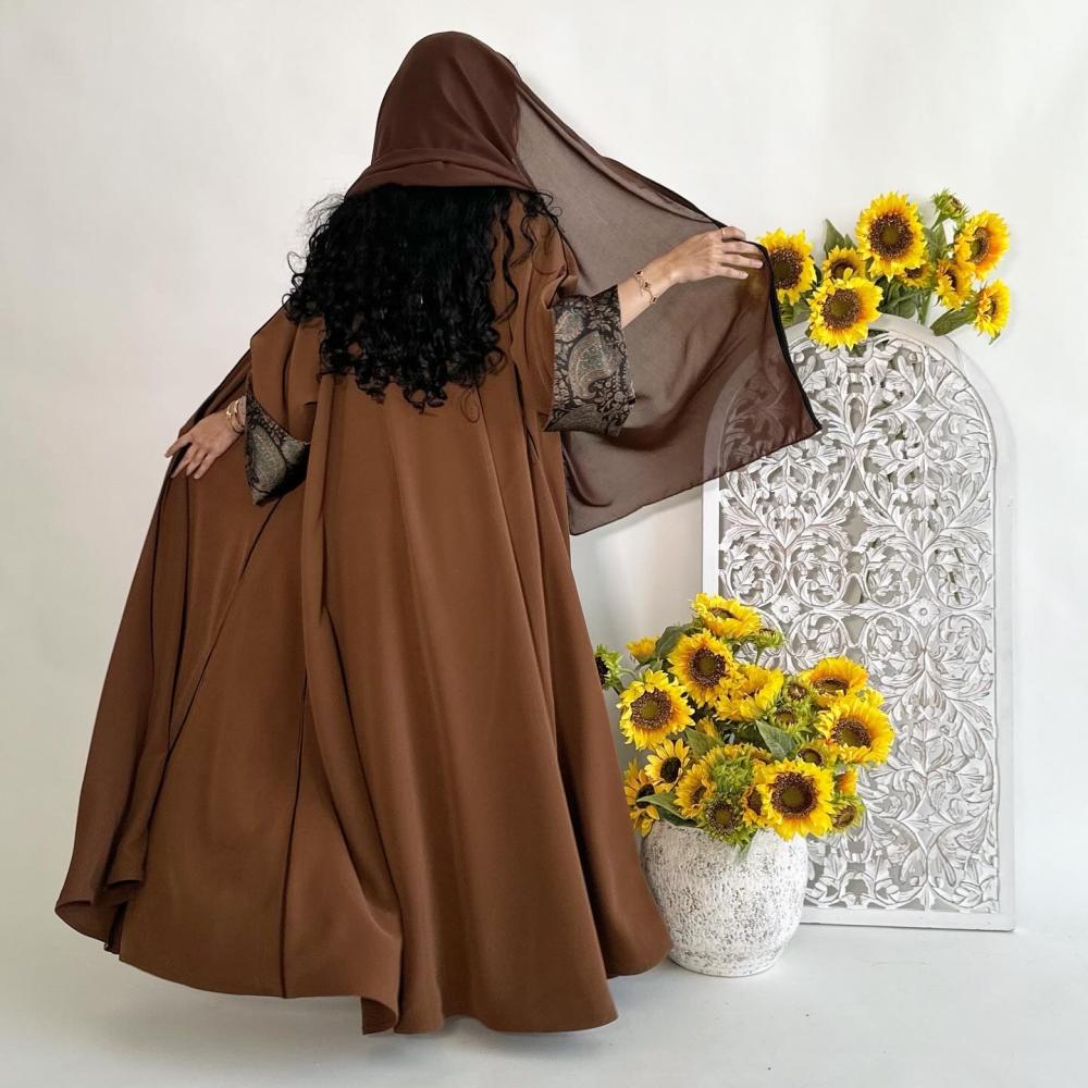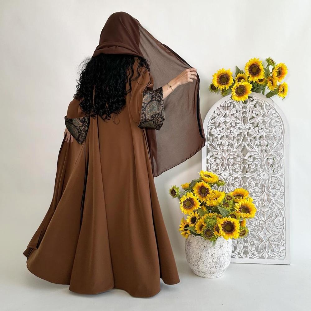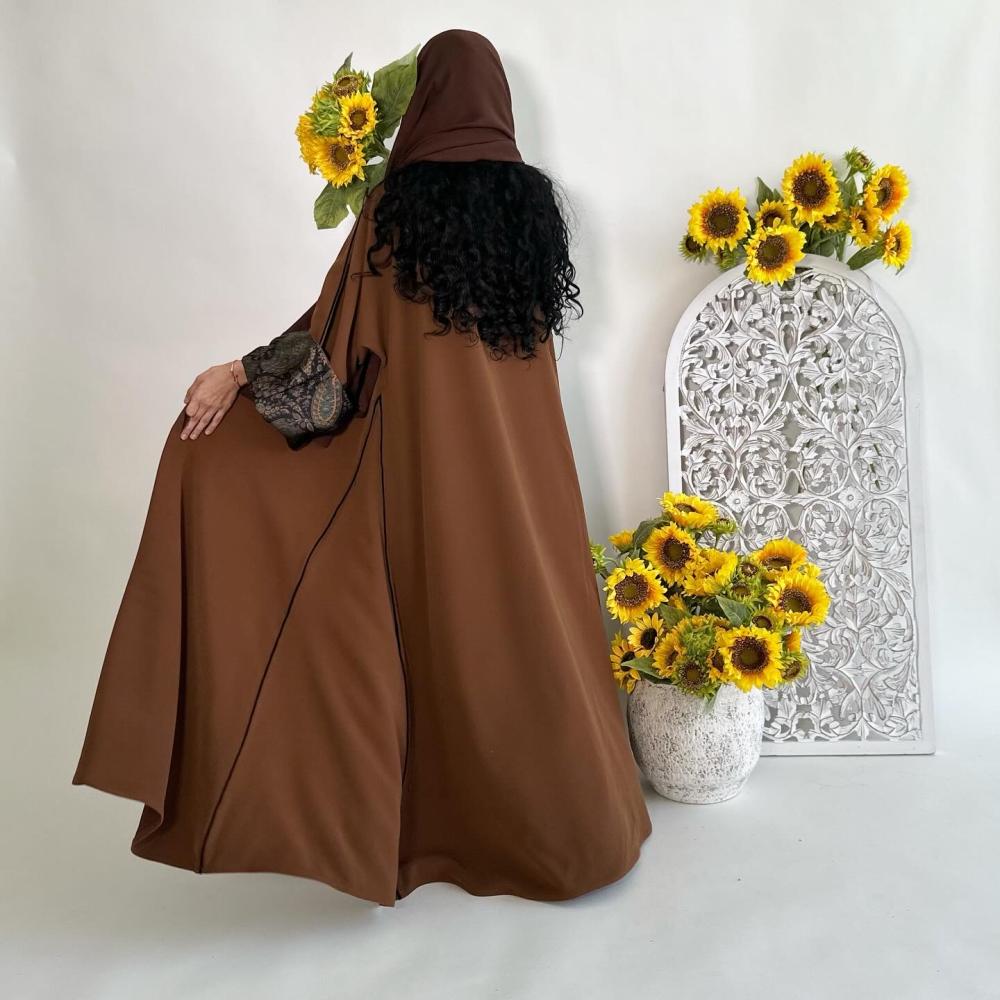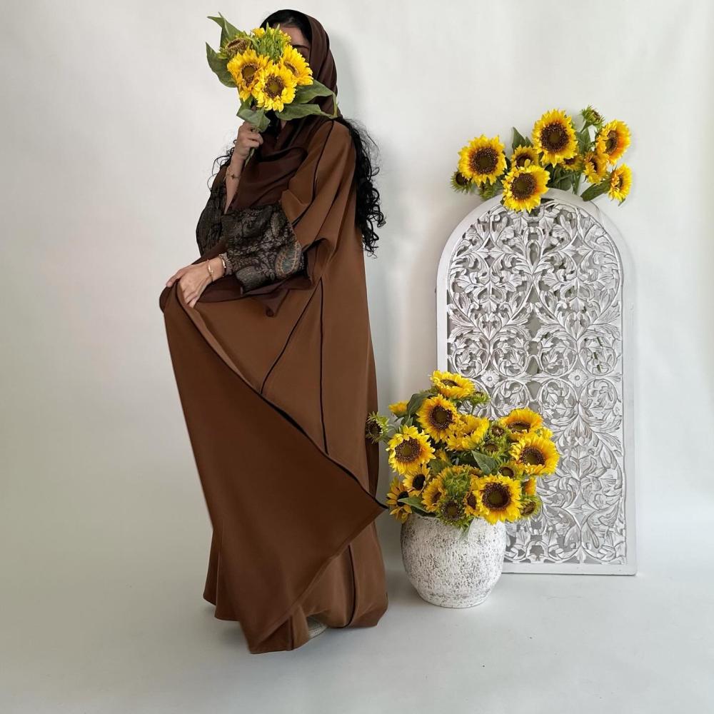 كريب سراميك | الكم سفطه حرير مشجر | كسرات من الجوانب اسود | قيطان كامل العبايه اسود | الطرحه شيفون بقيطان اسود