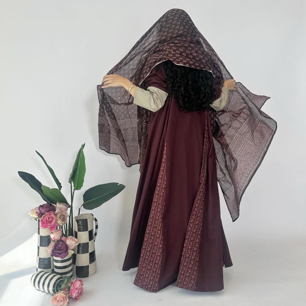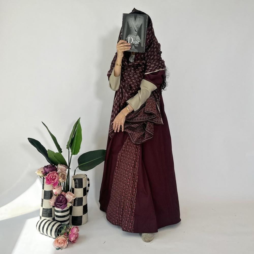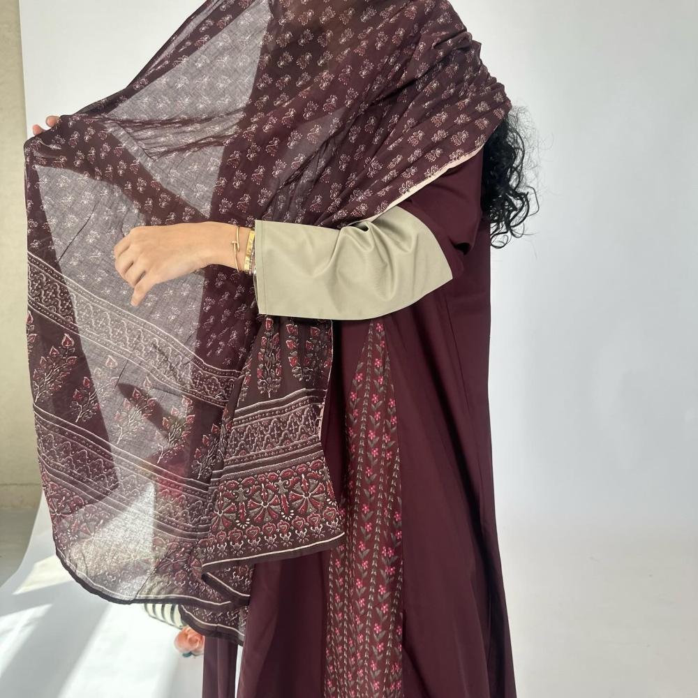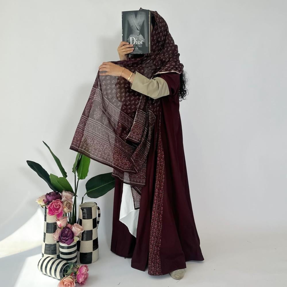 كتان تايلندي عنابي | كسرات قطن مشجر | الكم كتان ماسك بيج غامق | الطرحه قطن مشجر | ملاحظه : طول وعرض الطرحه اكبر من الطرح العاديه
