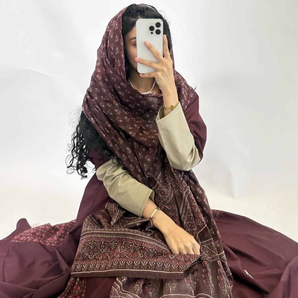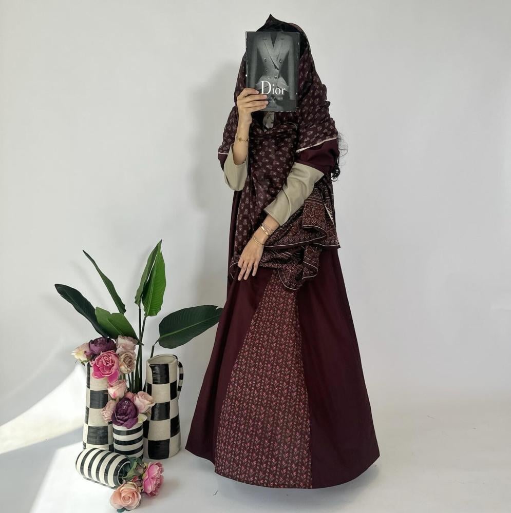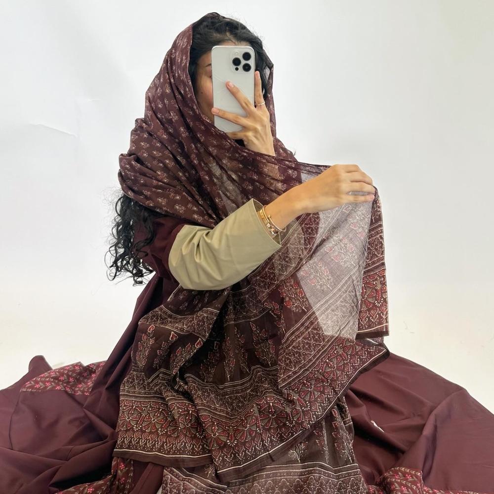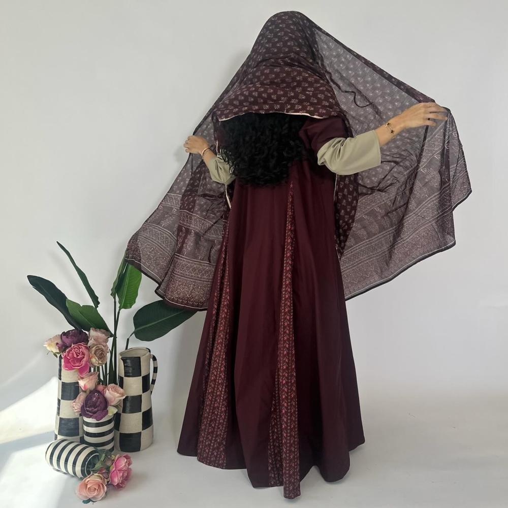 كتان تايلندي عنابي | كسرات قطن مشجر | الكم كتان ماسك بيج غامق | الطرحه قطن مشجر | ملاحظه : طول وعرض الطرحه اكبر من الطرح العاديه