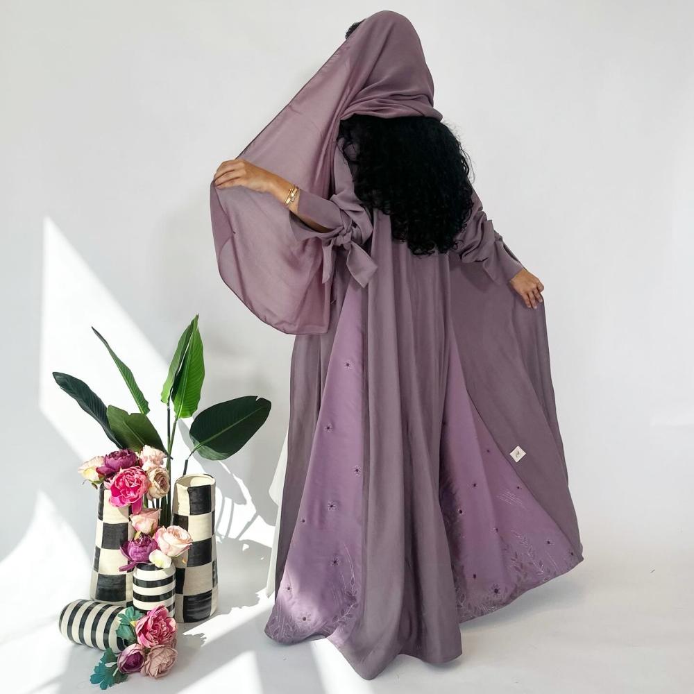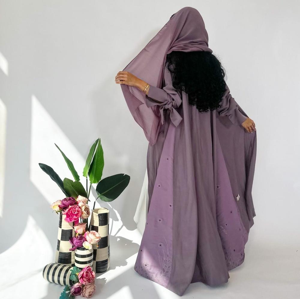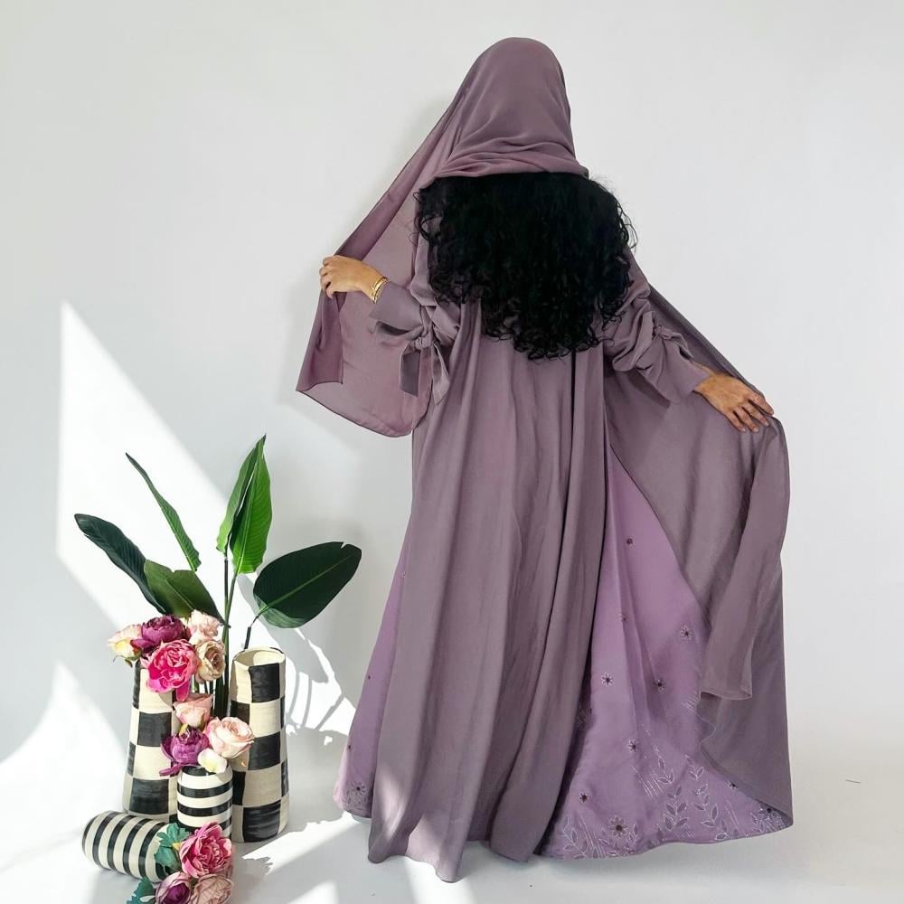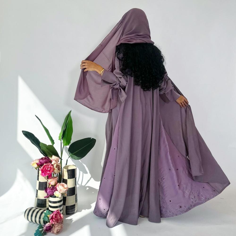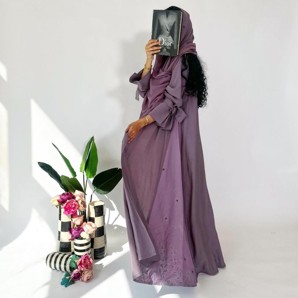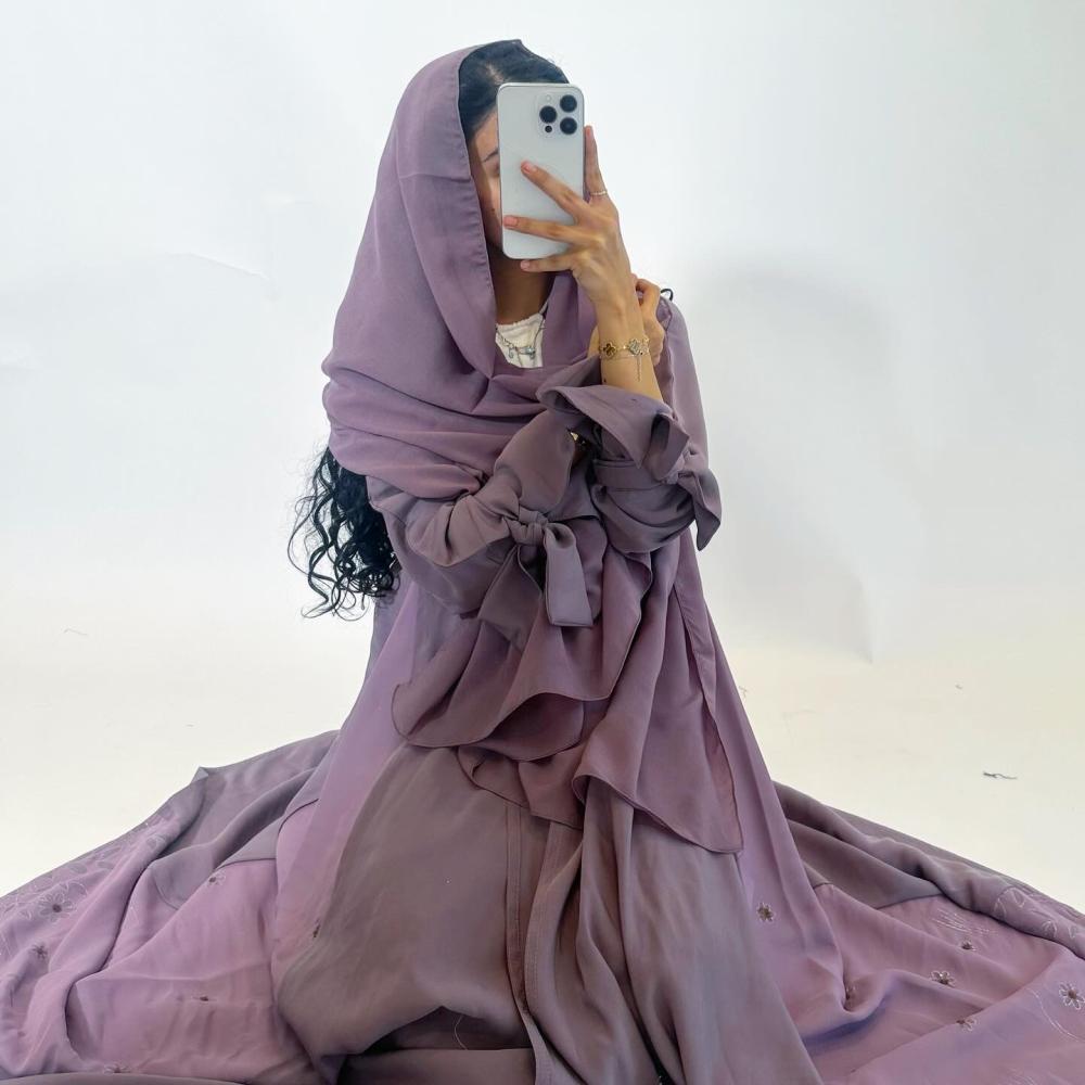 حرير مغسول كوري | الكم ربطه مثبته | كسرات من الجوانب مشجره شيفون مبطنه | الطرحه شيفون ساده