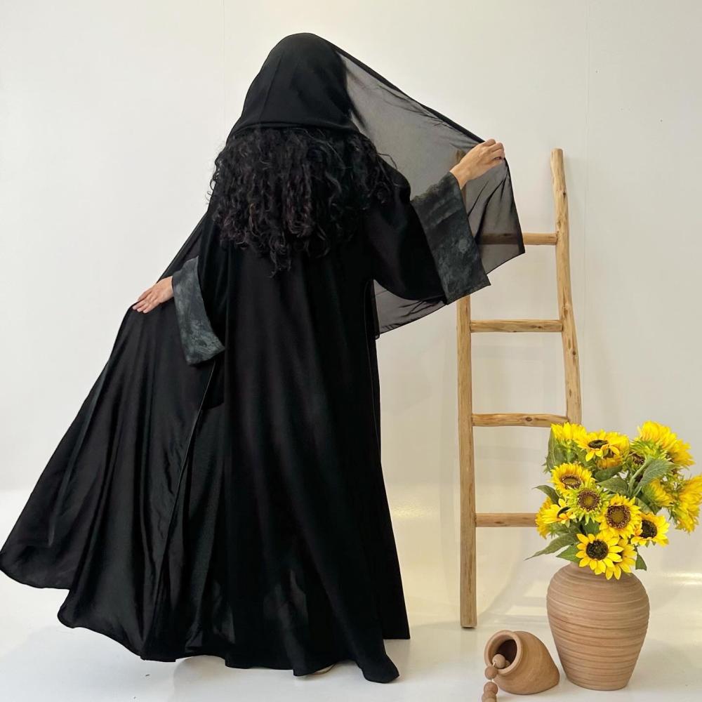 كريب ملكي كوري | الكم سفطه شيفون مموج | قيطان كامل العبايه | الطرحه شيفون بقيطان