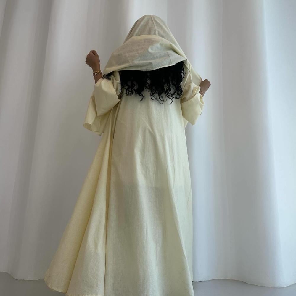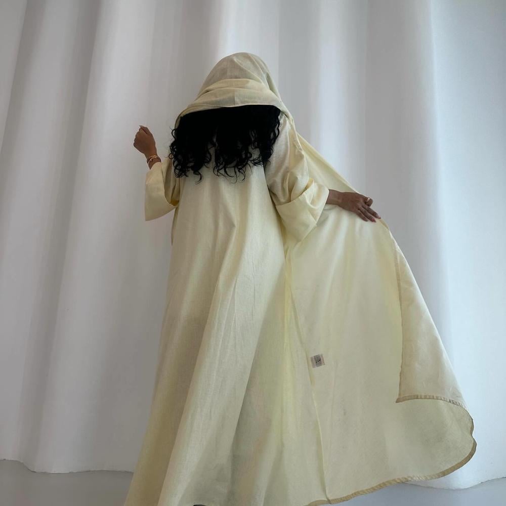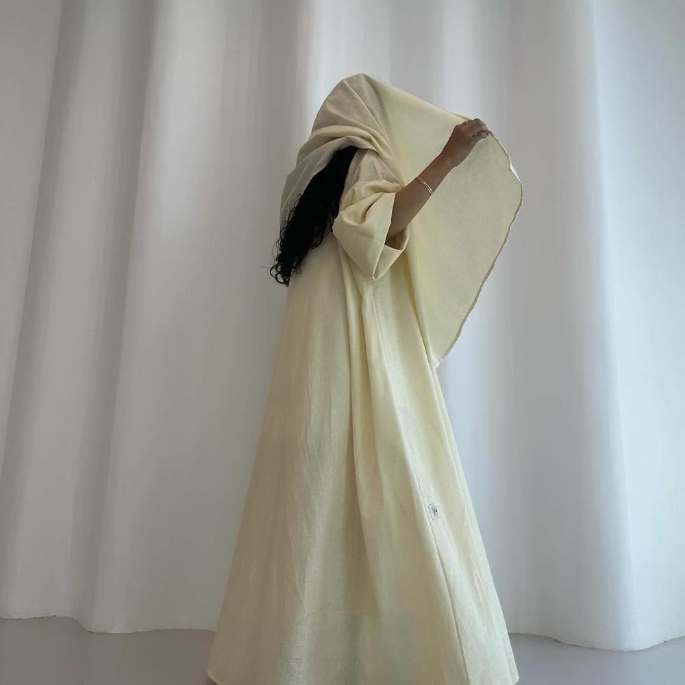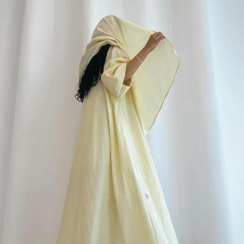 قماش لينن هندي اصفر | الكم سفطه " غير مثبتة| الطرحه بنفس نوعية القماش