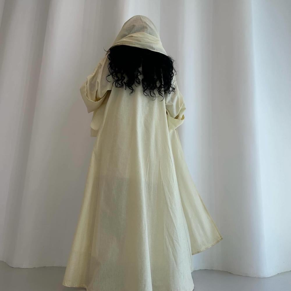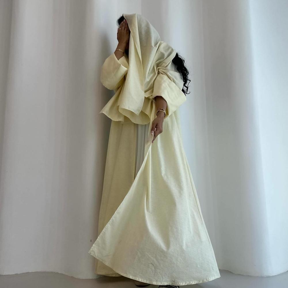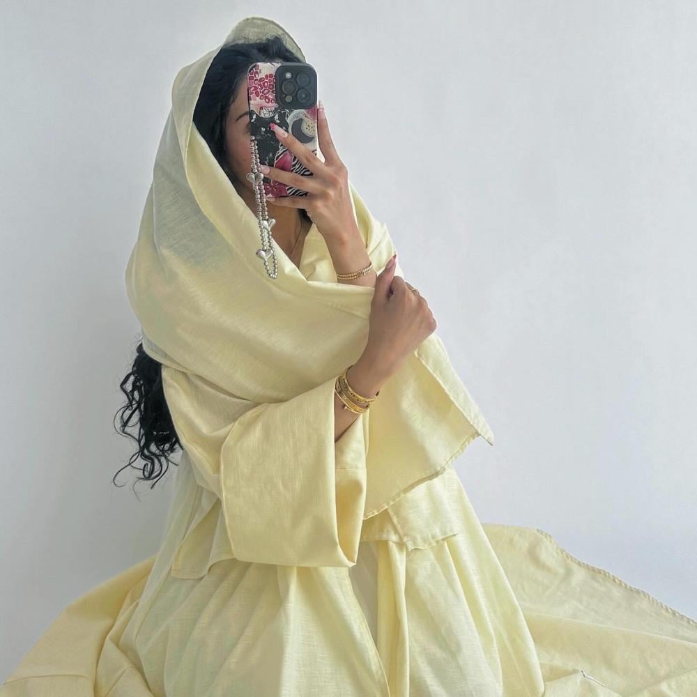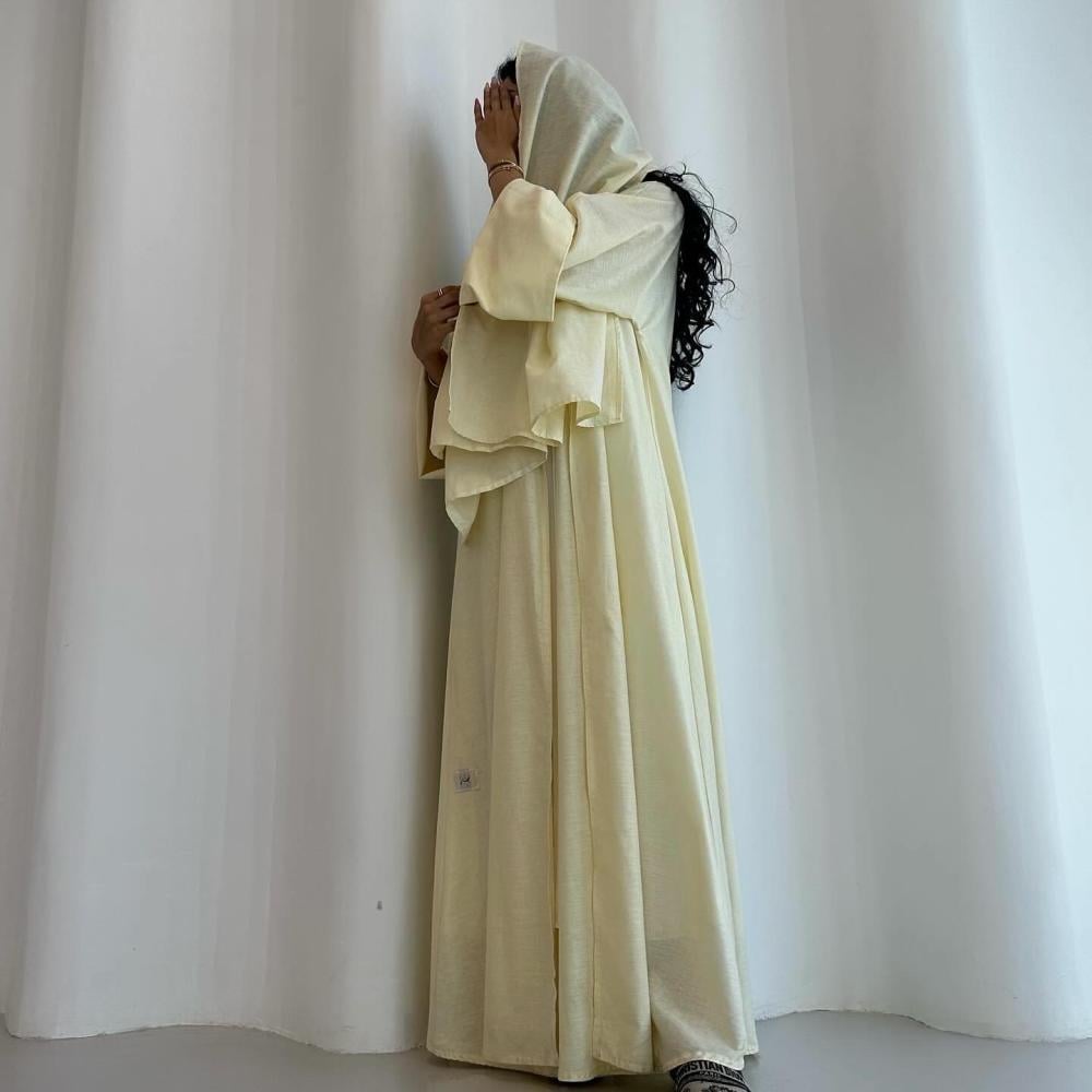 قماش لينن هندي اصفر | الكم سفطه " غير مثبتة| الطرحه بنفس نوعية القماش