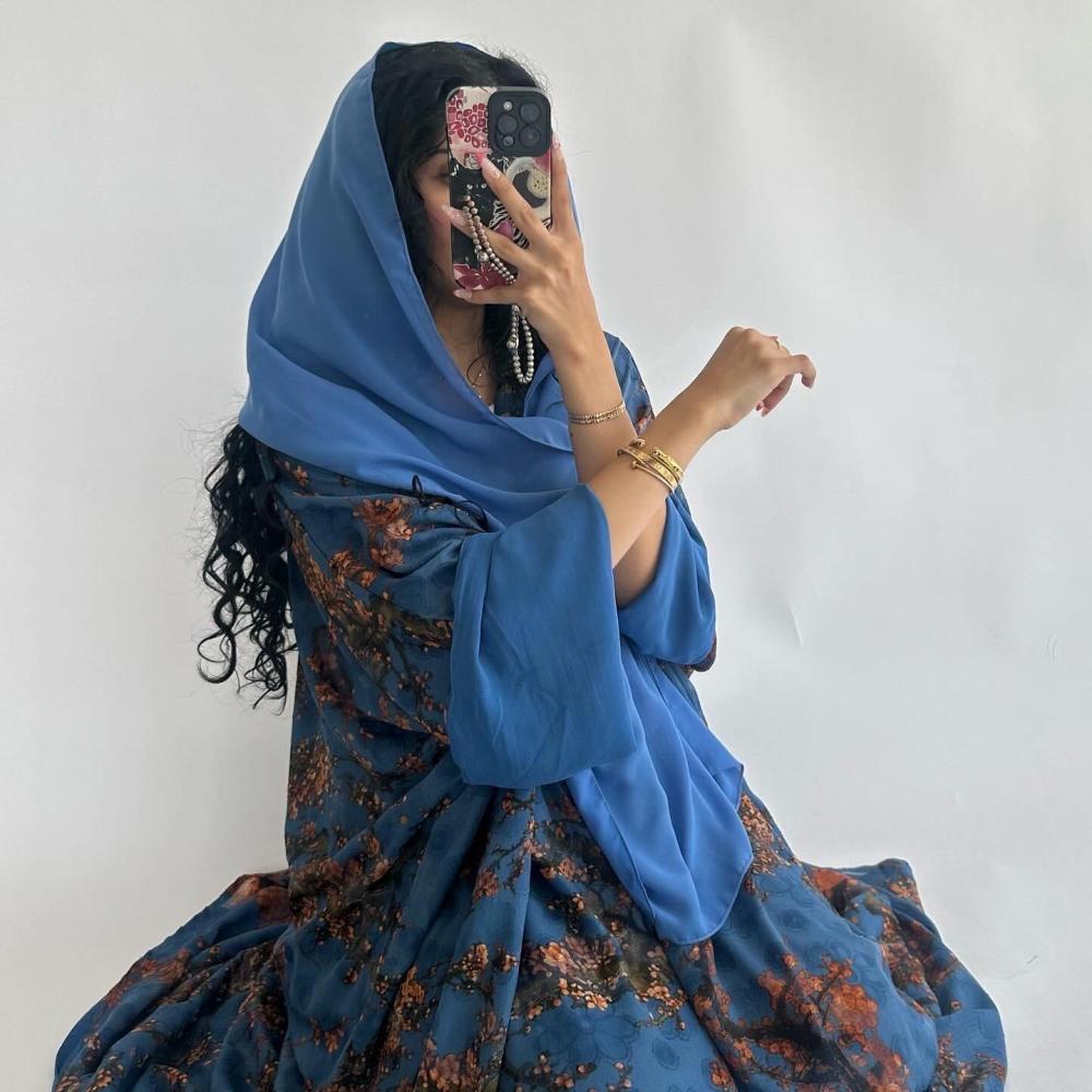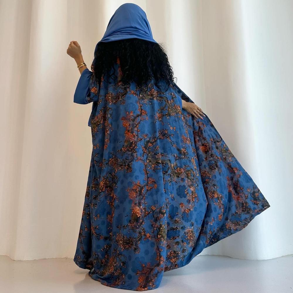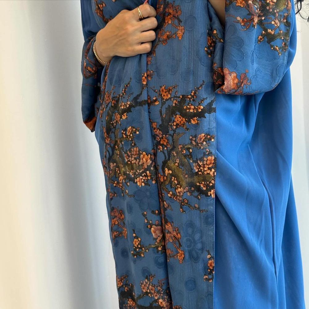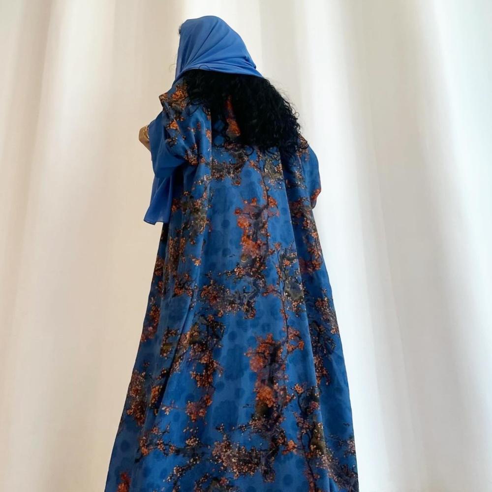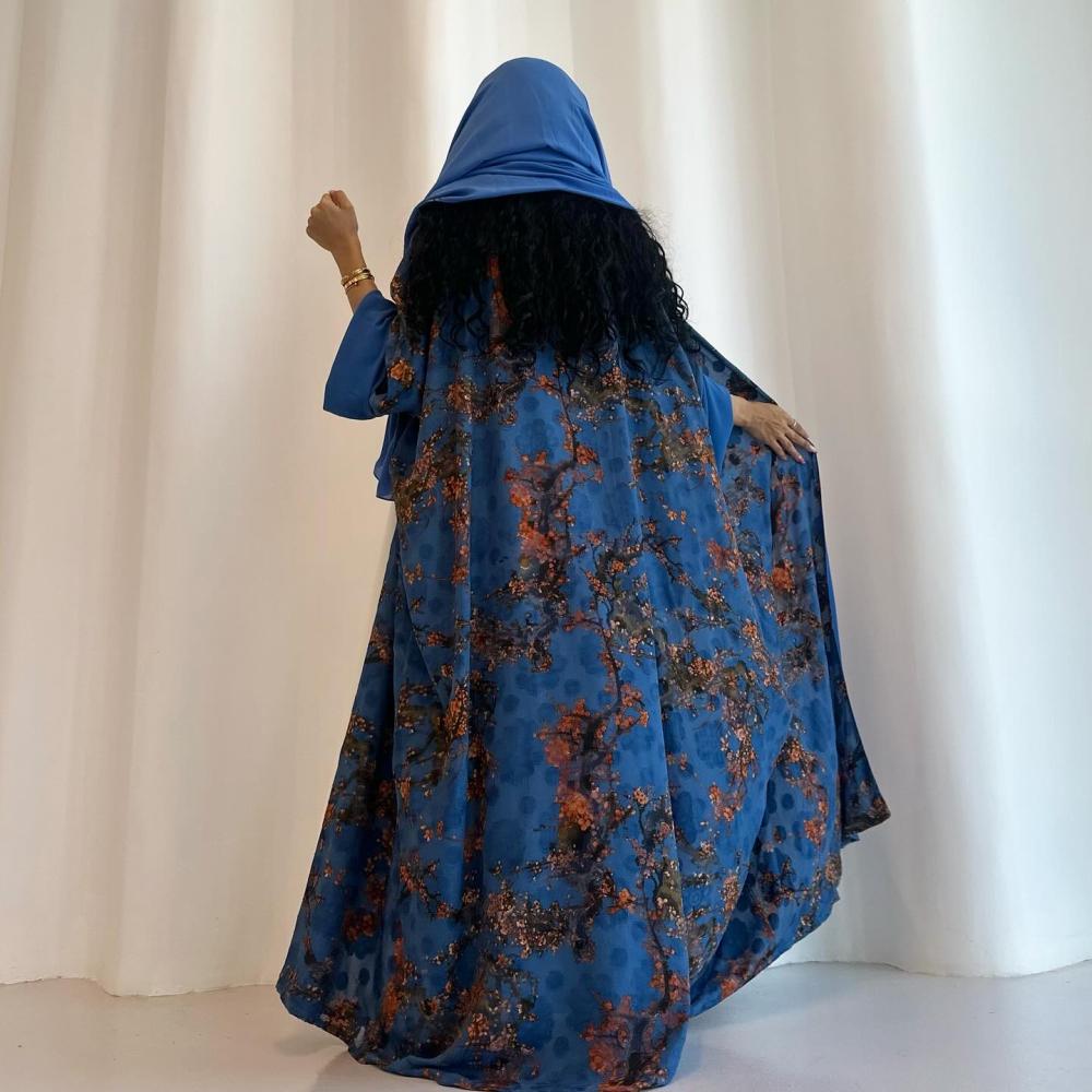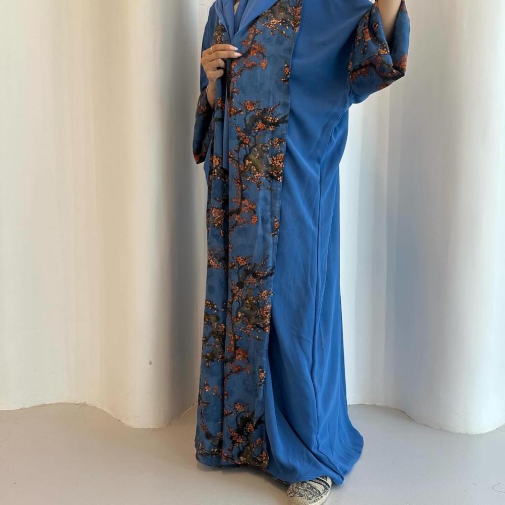عبايه دبل فيس " وجهين " شيفون مشجر مبطن بشيفون ساده | الكم واسع سفطه معكوسه من الجهتين " غير مثبته" | طرحه ساده