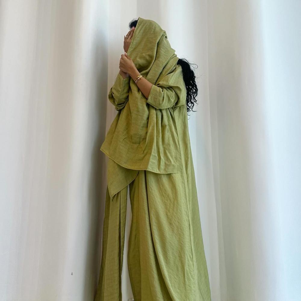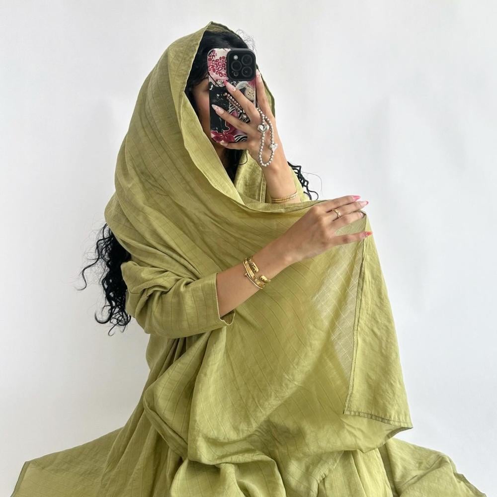 قماش كريب مغسول بنقشه مخططه خفيفه | الطرحه بنفس نوعيه قماش العبايه