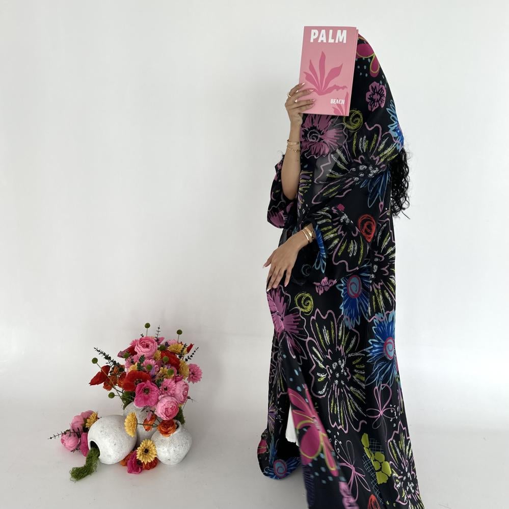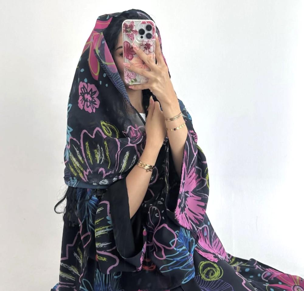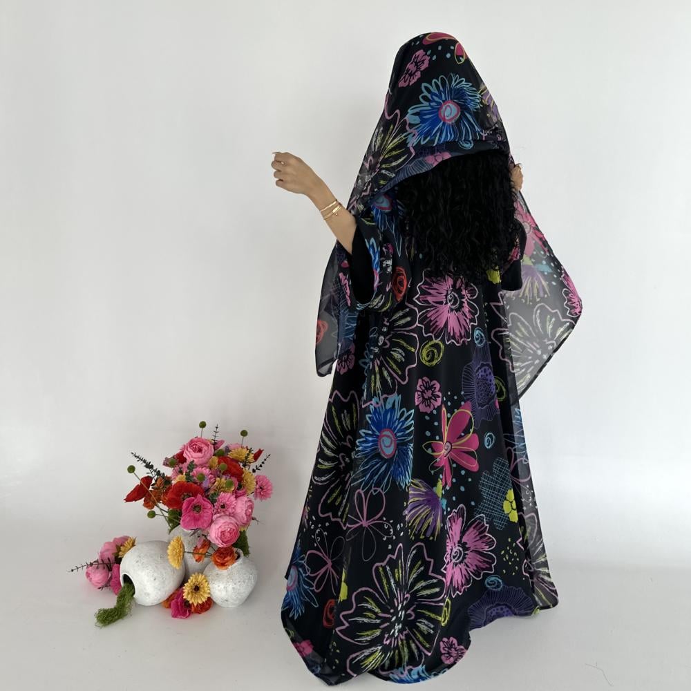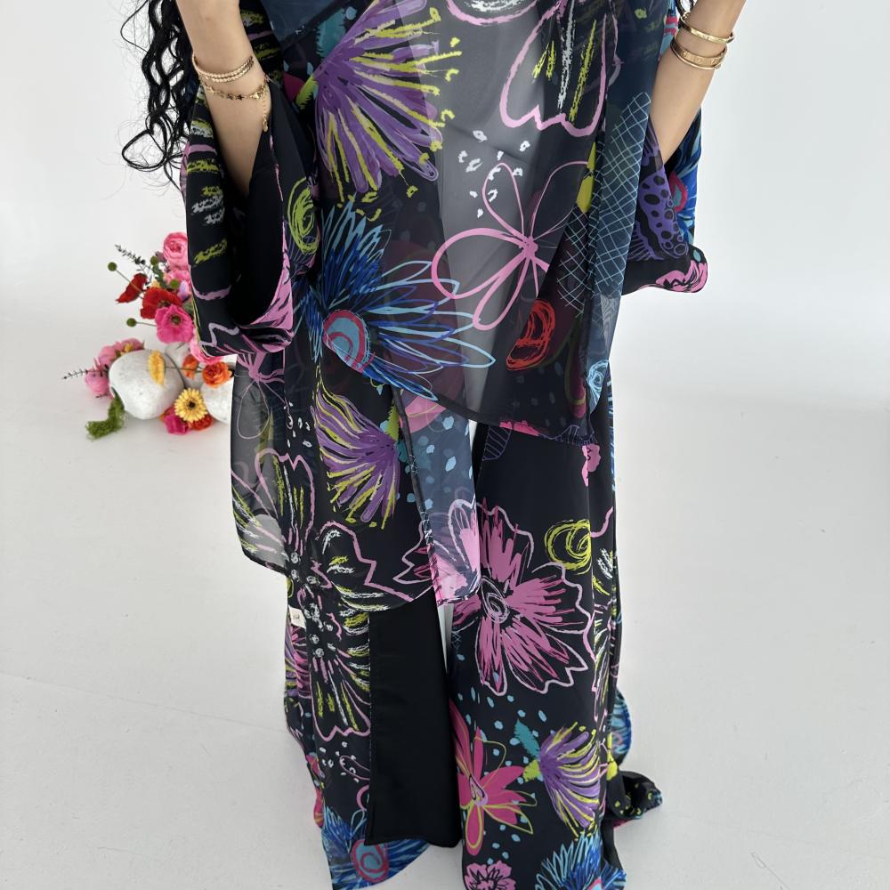 • شيفون اسود طباعه | الكم واسع  | مبطنه بقماش جورجيت اسود خفيف " يوجد بطانه اثقل في حال الرغبه " بلاك بيري ناعم " | الطرحه شيفون جورجيت طباعه