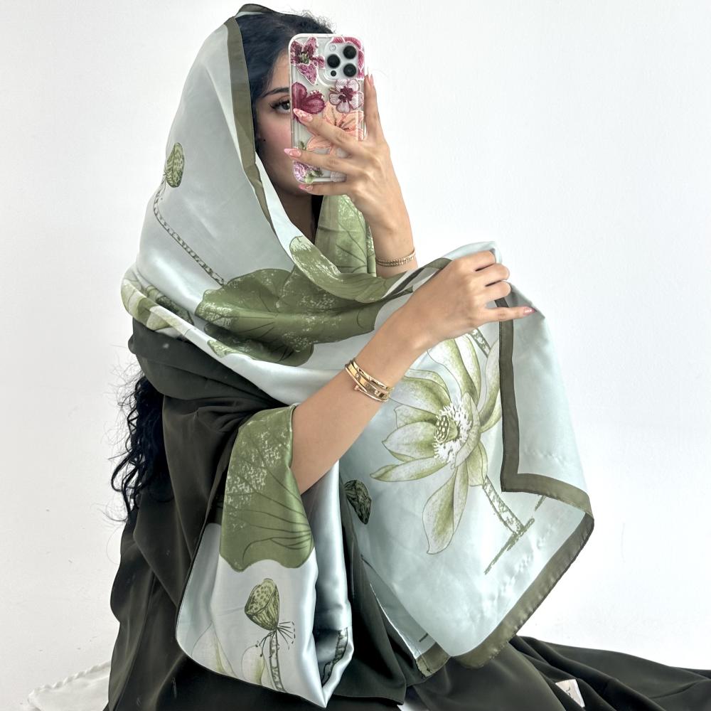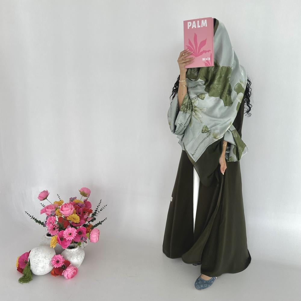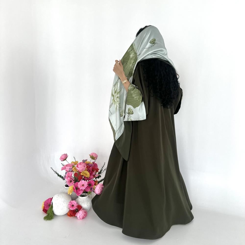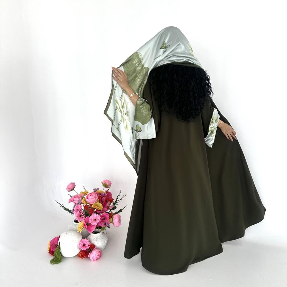 كريب اندويسي زيتي | الكم سفطه حرير مشجر | الطرحه شيفون نص طرحه ساده ونص حرير مشجر