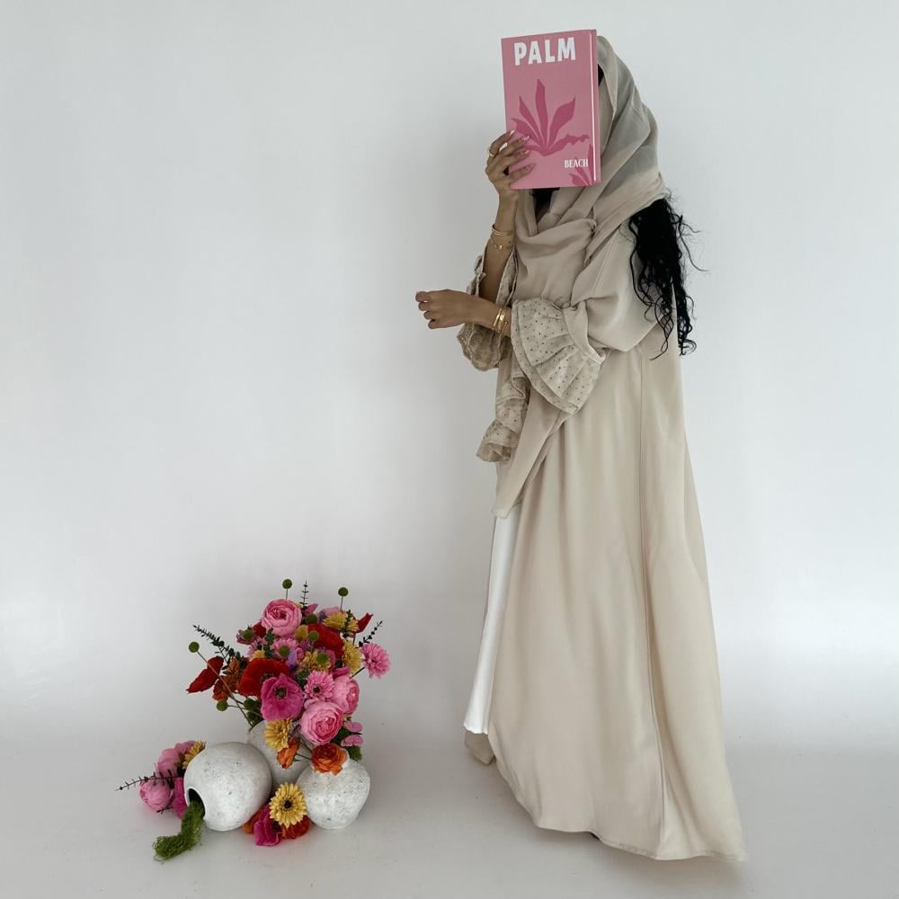 بلاك بيري بيج | الكم مكسر طبقتين قماش ركاما | الطرحه شيفون بطرف مكسر قماش ركاما