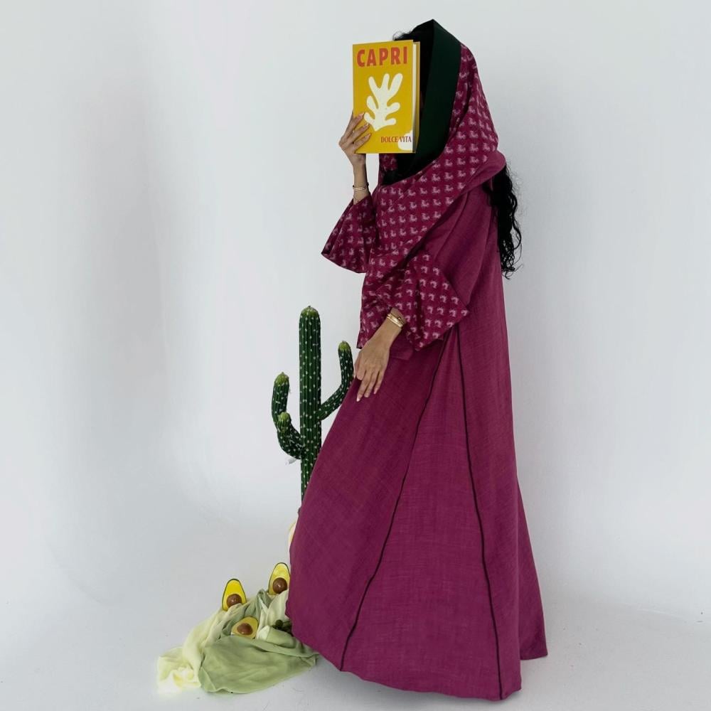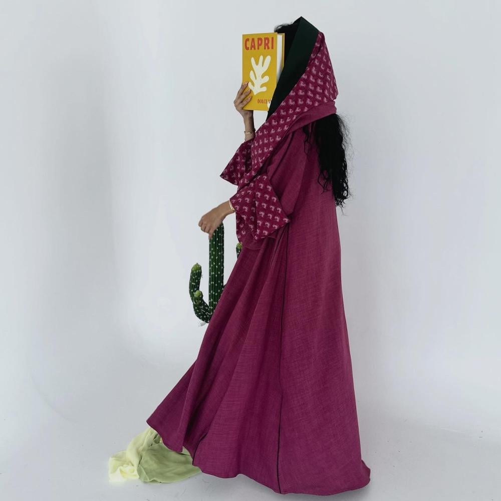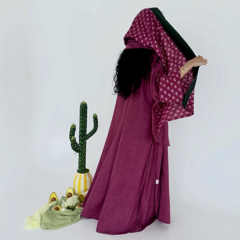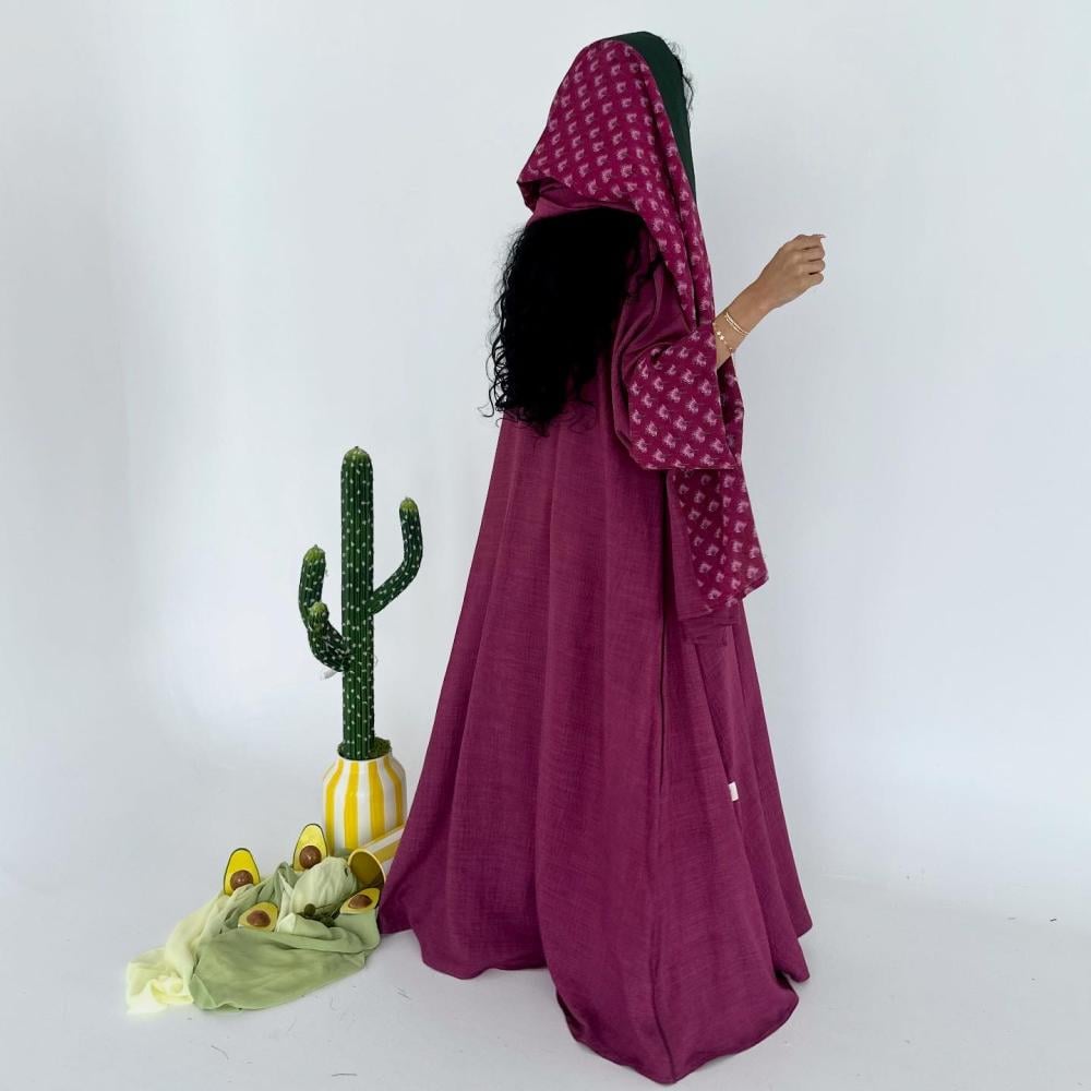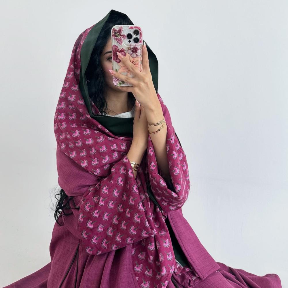 لينن طايح مغسول | الكم سفطه " غير مثبته " مشجره قطن | قيطان كامل العبايه و كسرات قيطان | الطرحه ٣ انواع اقمشه ( قطن مشجر ، شيفون ساده ، قماش كتان اخضر غامق )