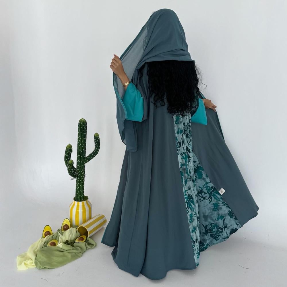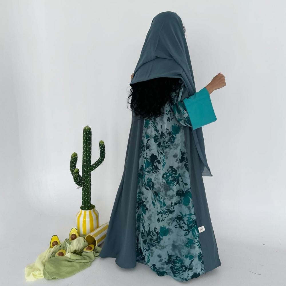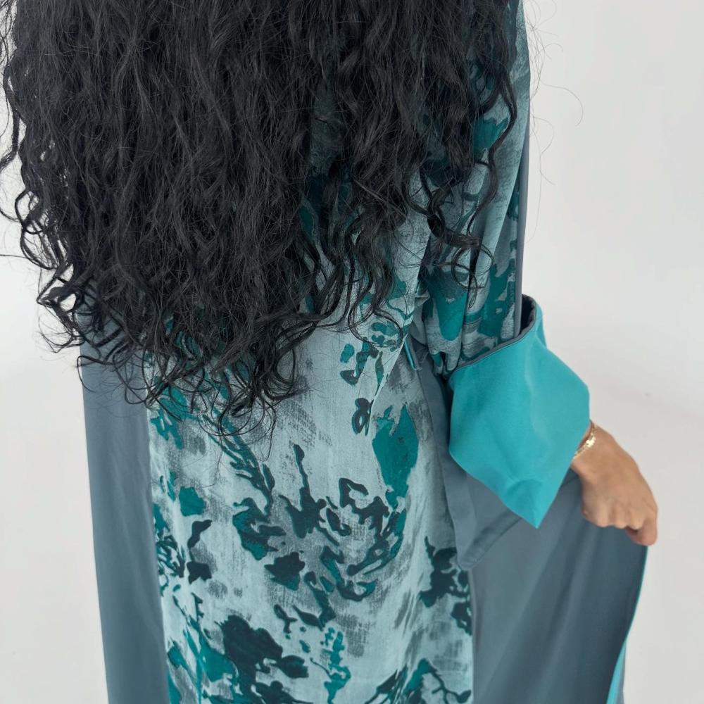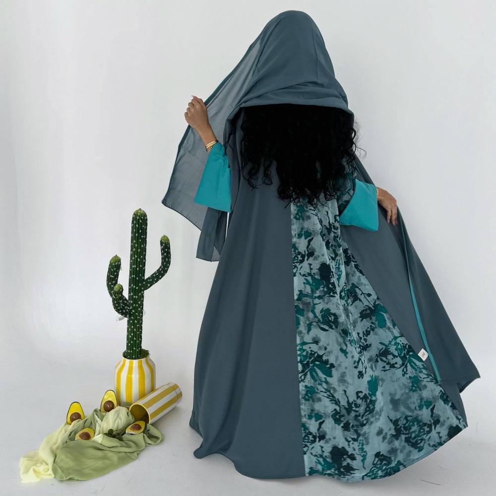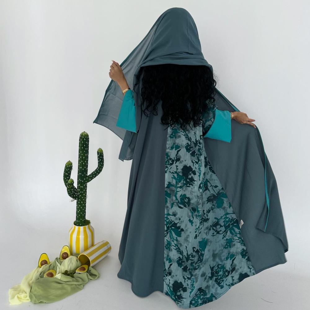 كريب سراميك | الكم سفطه " غير مثبته" كتان تايلندي | من الخلف قماش شيفون مموج | قيطان من الامام | الطرحه شيفون ساده بقيطان