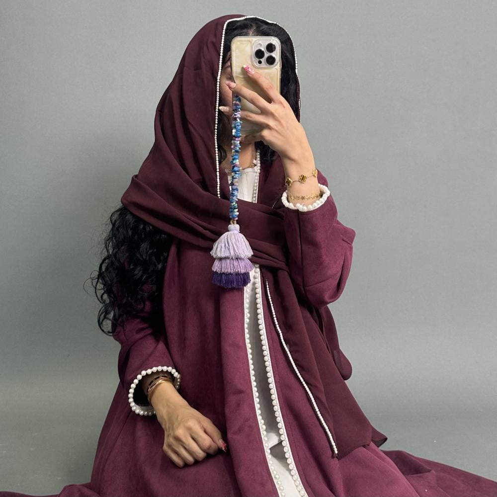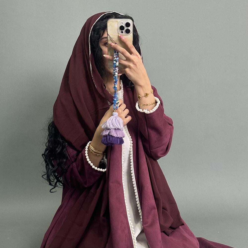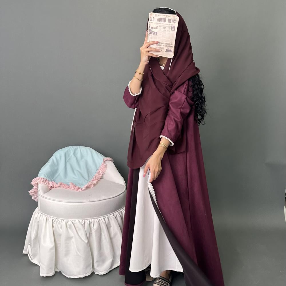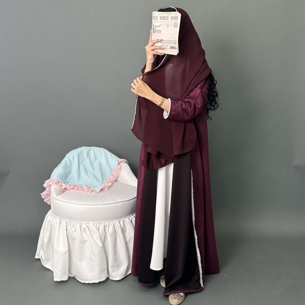 شامواه عنابي | الكم ومن الامام لولو شك | الطرحه شيفون بطرف لولو شك