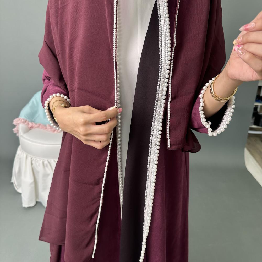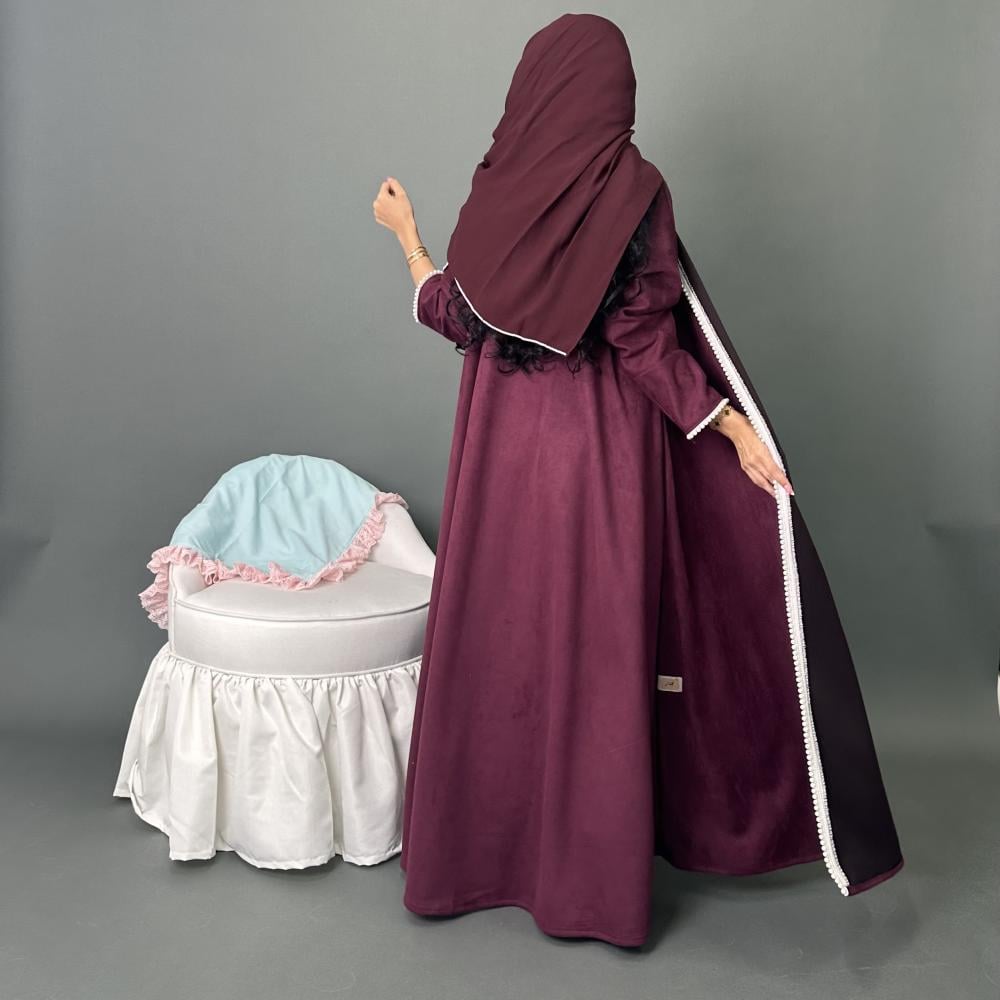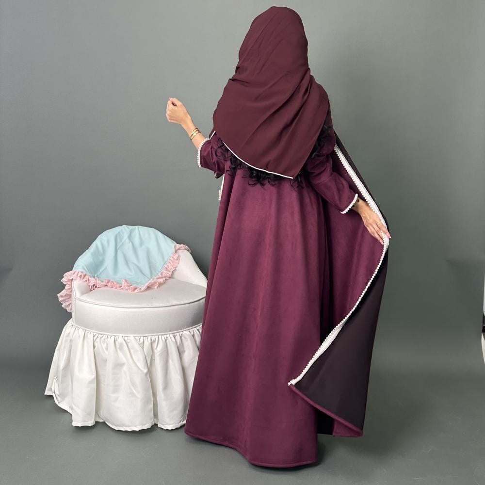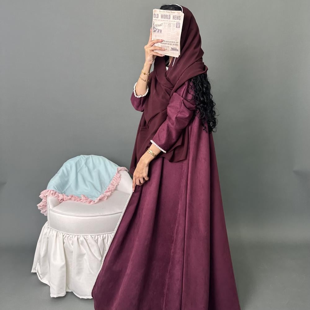 شامواه عنابي | الكم ومن الامام لولو شك | الطرحه شيفون بطرف لولو شك