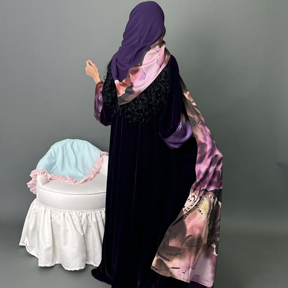مخمل كوري موف ، حرير مموج " دبل فيس " يمكن لبسها على الوجهين | الطرحه شيفون بطرف حرير مموج